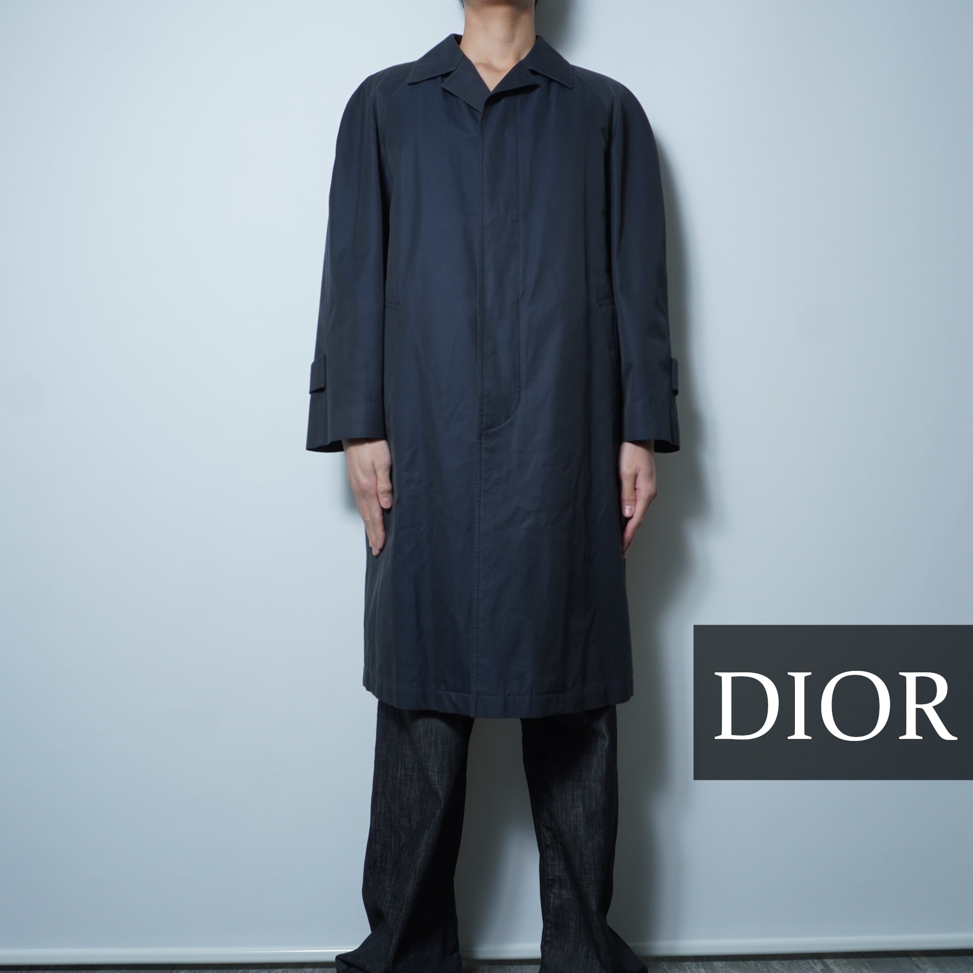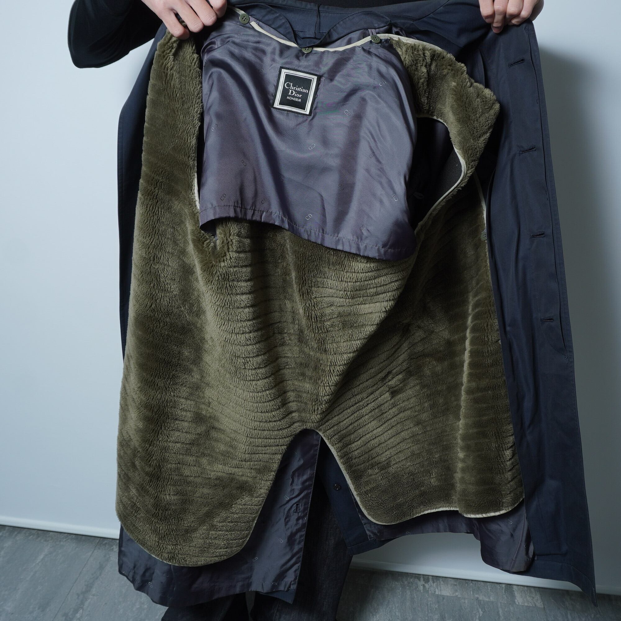 【Christian Dior】クリスチャンディオール ボアライナー付比翼仕立てステンカラーコート dark navy