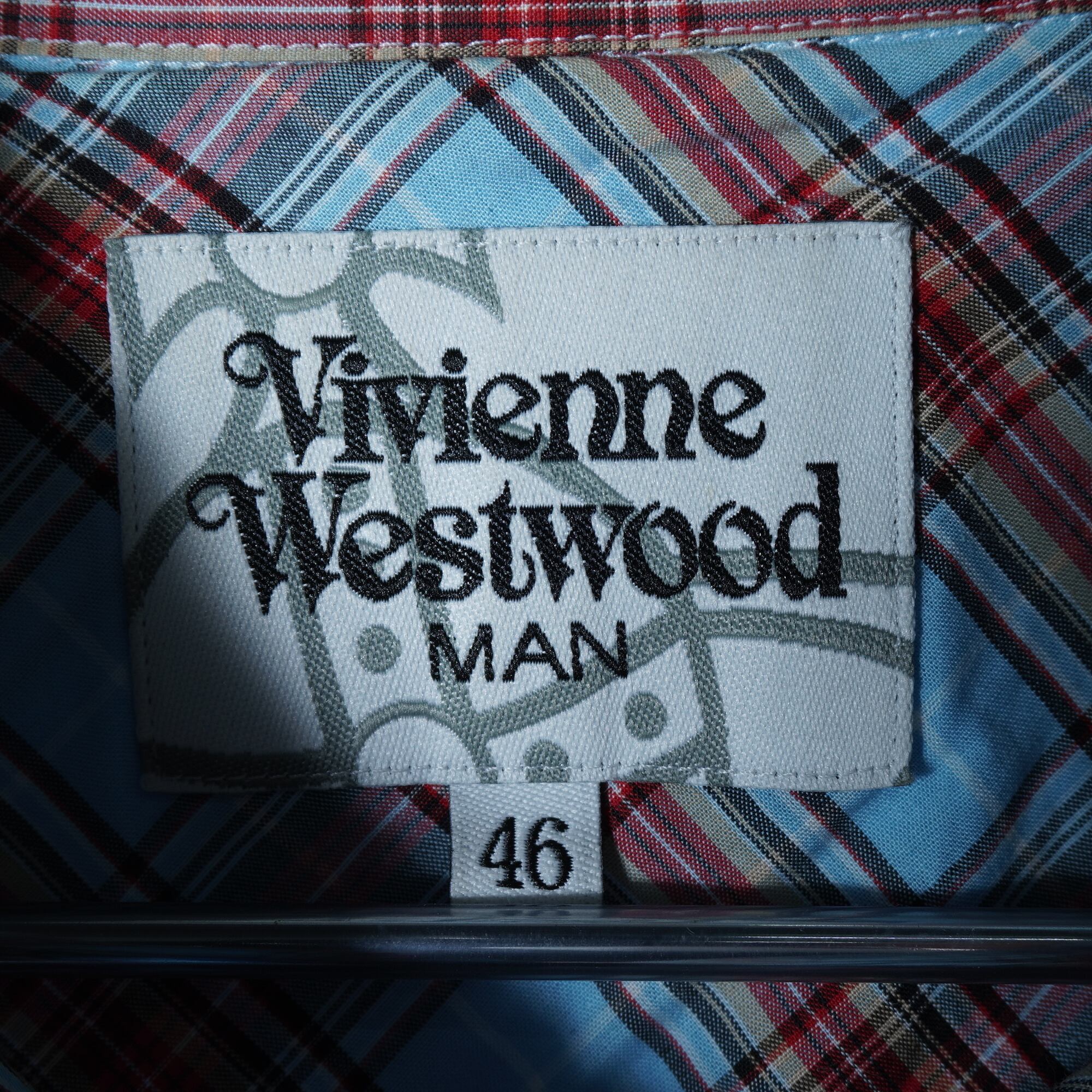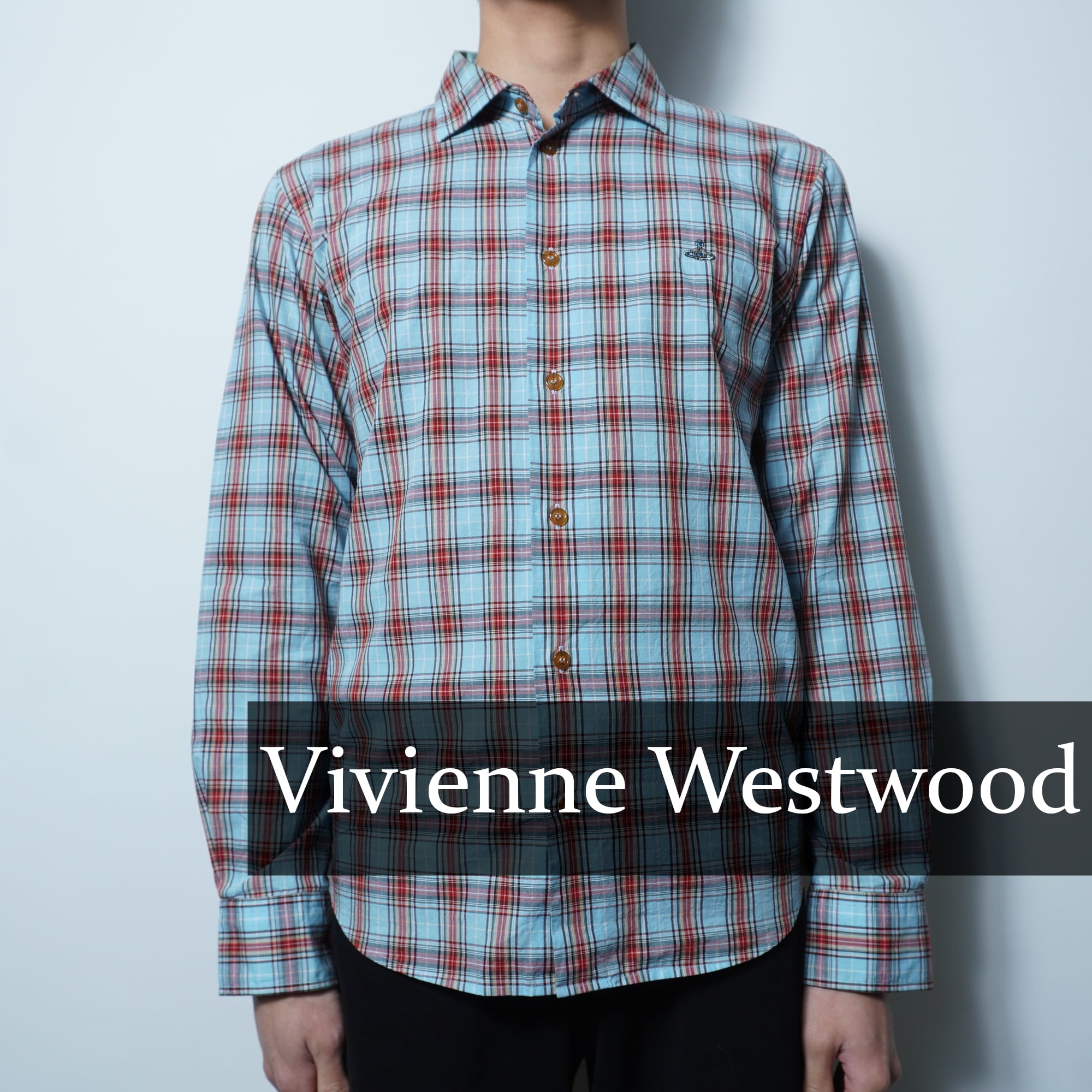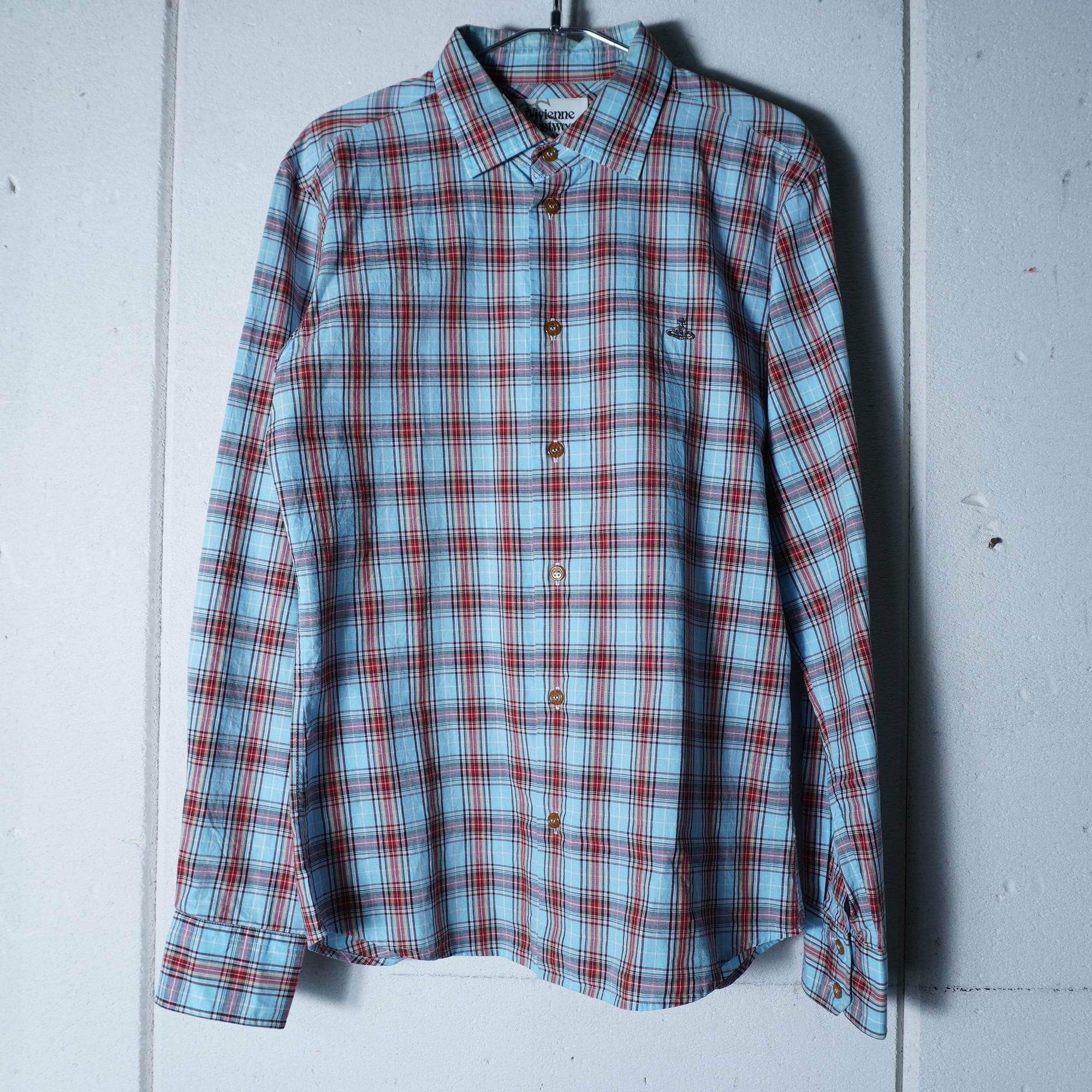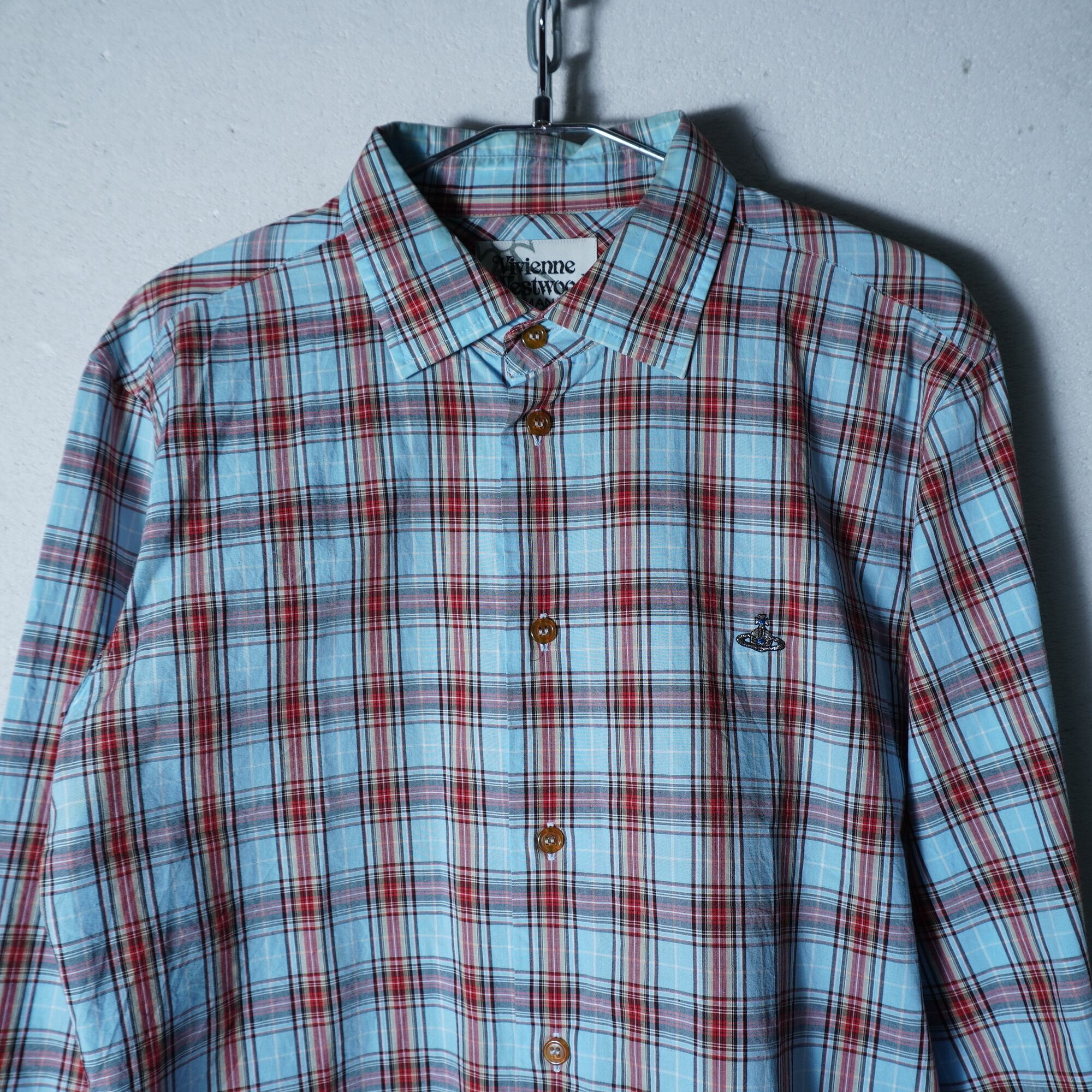 【Vivienne Westwood】ヴィヴィアンウエストウッド オーブロゴ刺繍 チェック柄長袖シャツ blue&red