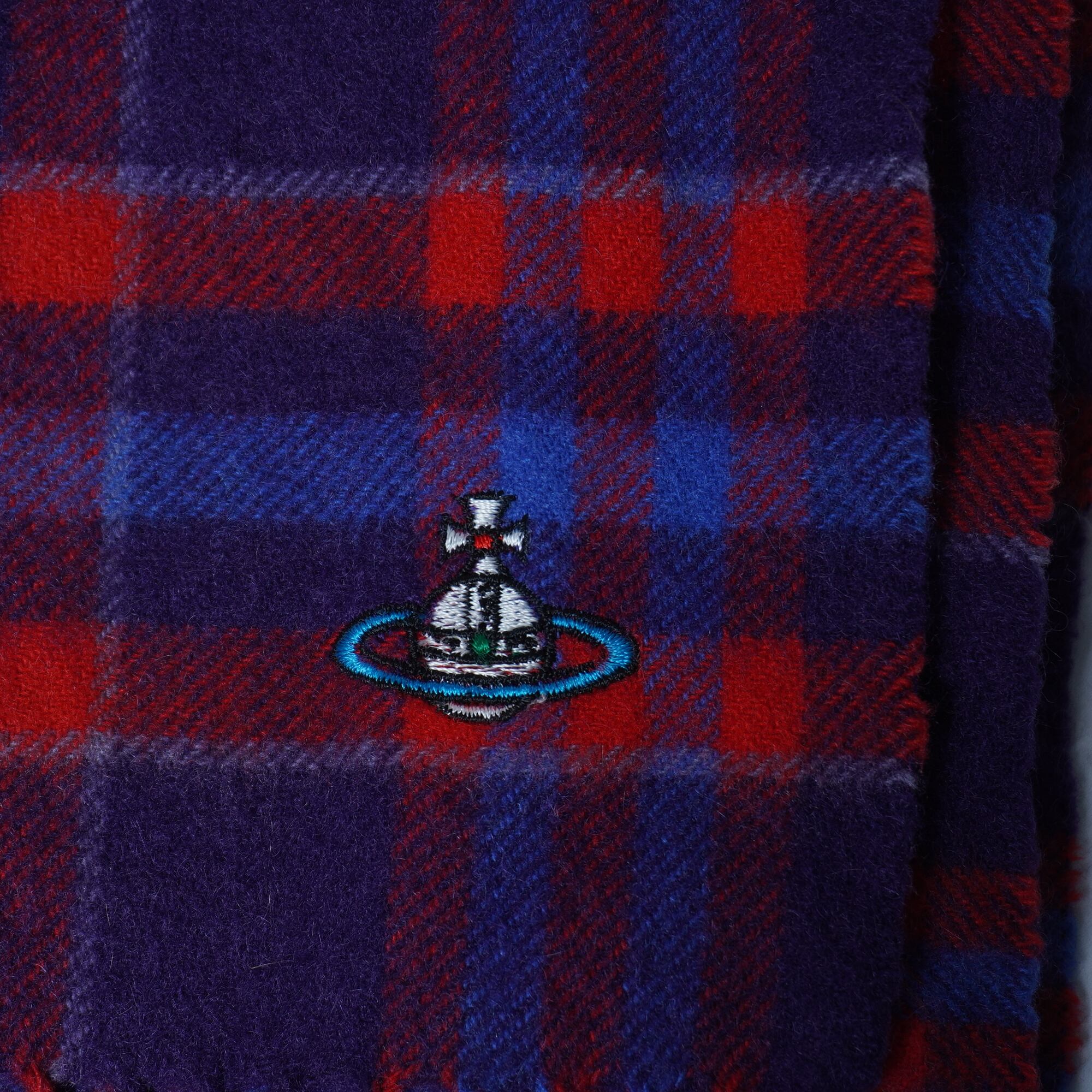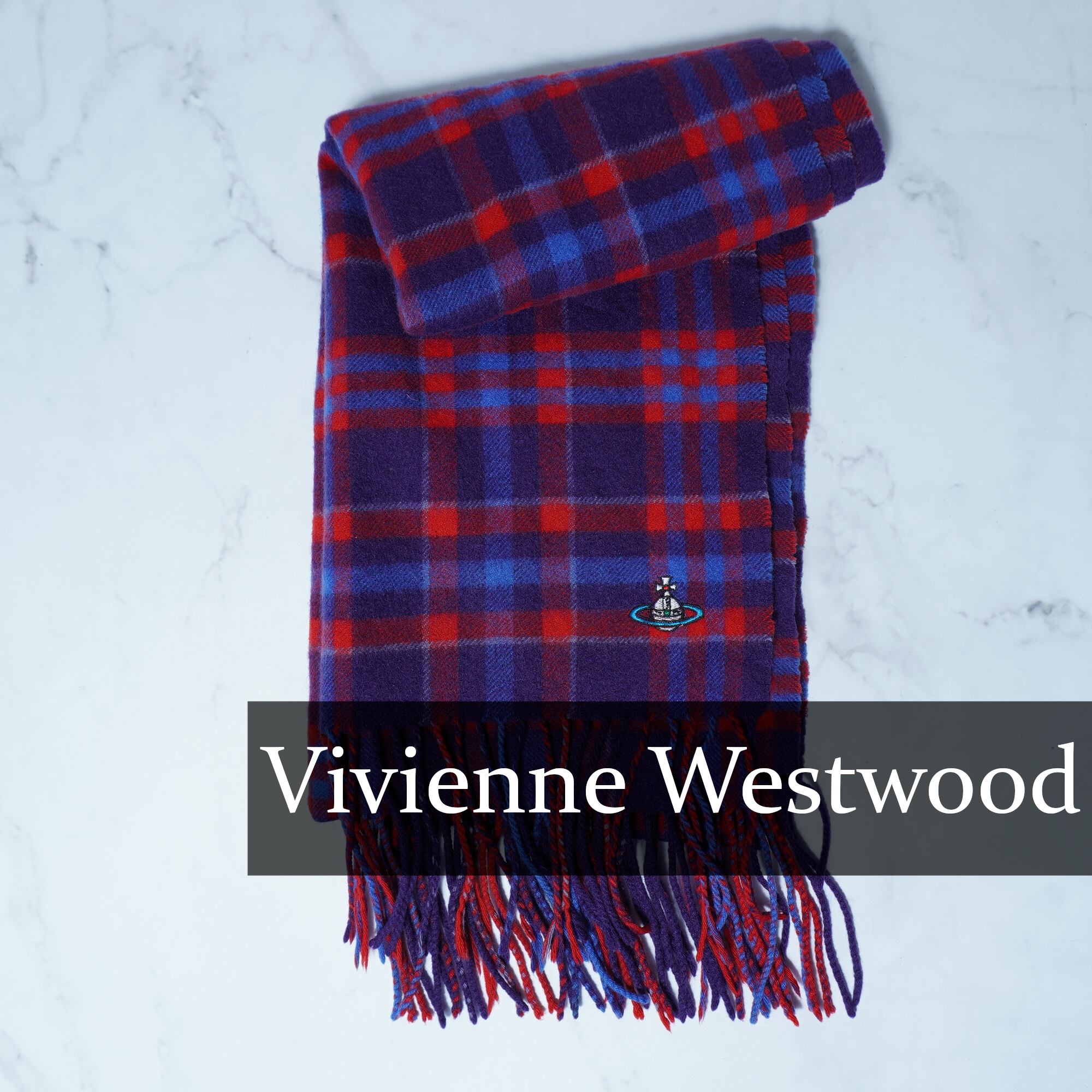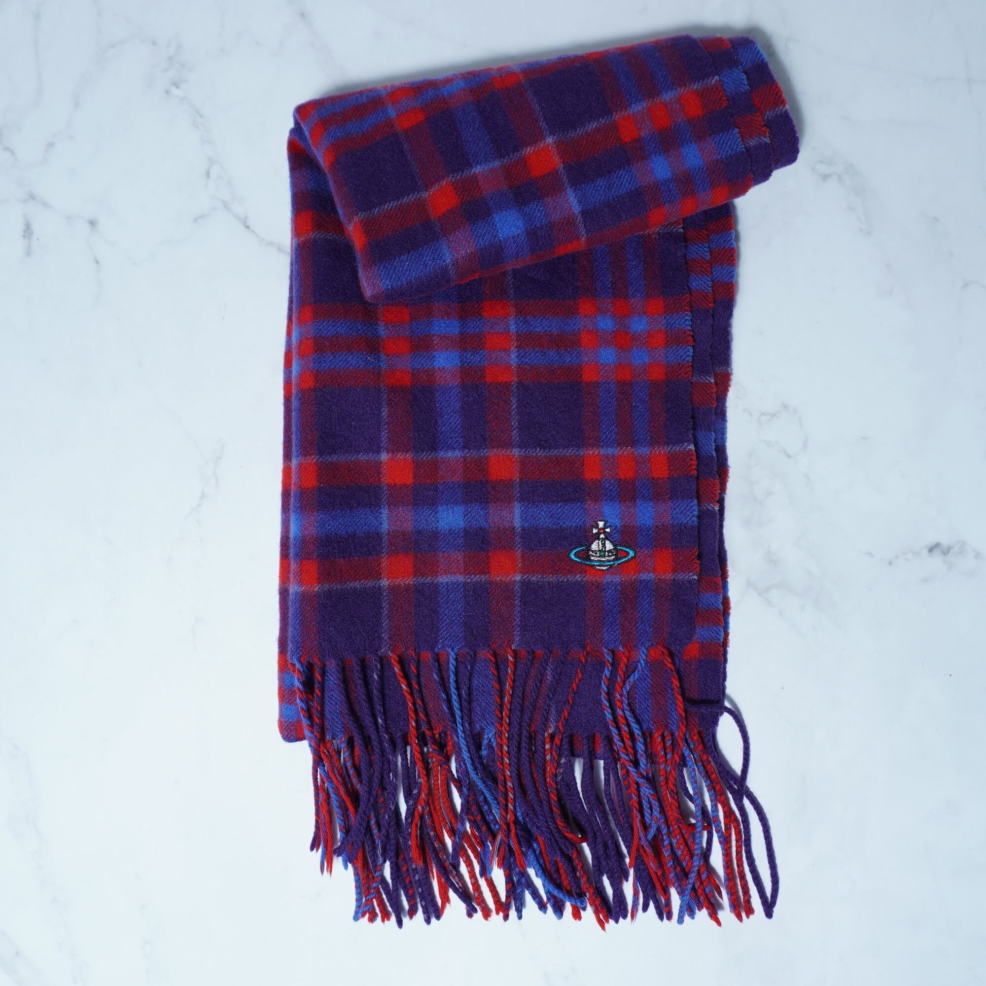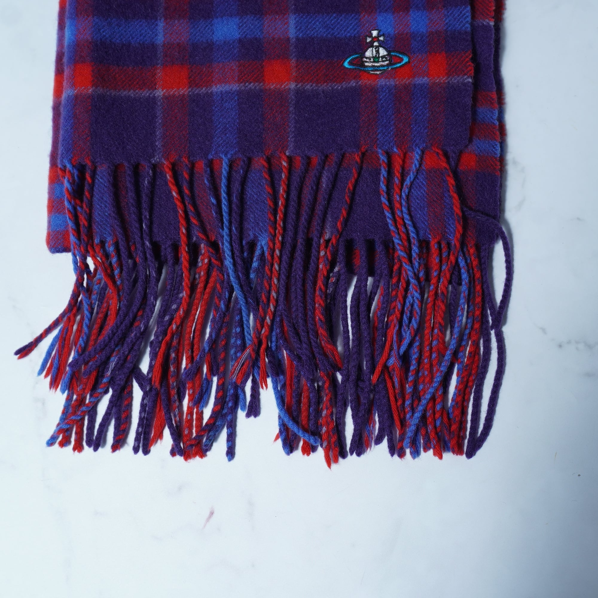 【Vivienne Westwood】ヴィヴィアンウエストウッド "オーブロゴ刺繍” カシミアフリンジマフラー red&purple&blue