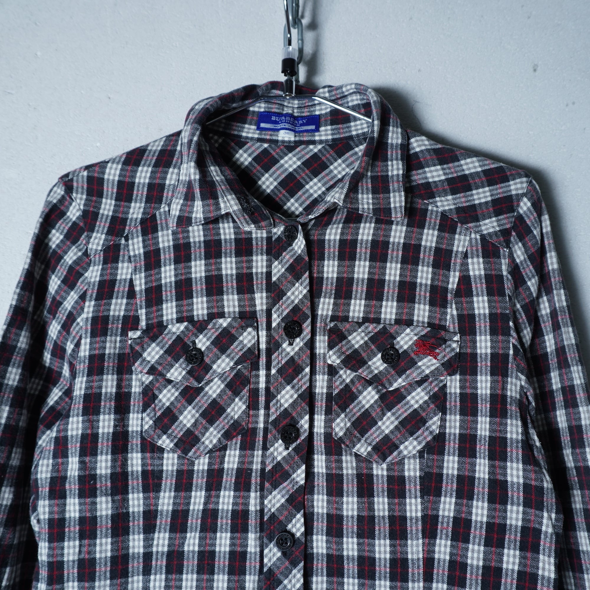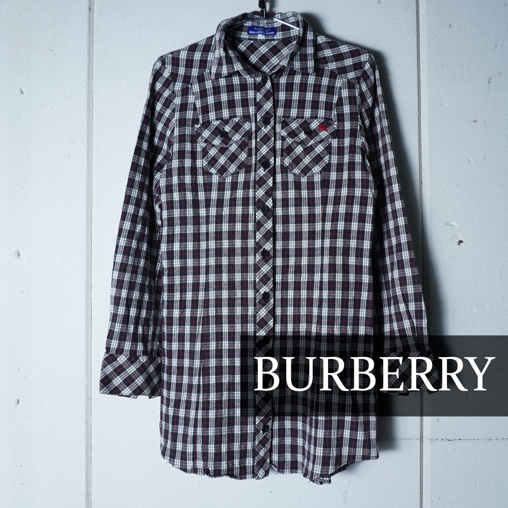 【BURBERRY】バーバリー ”ホースロゴ刺繍”チェック柄ワンピース black & red & white