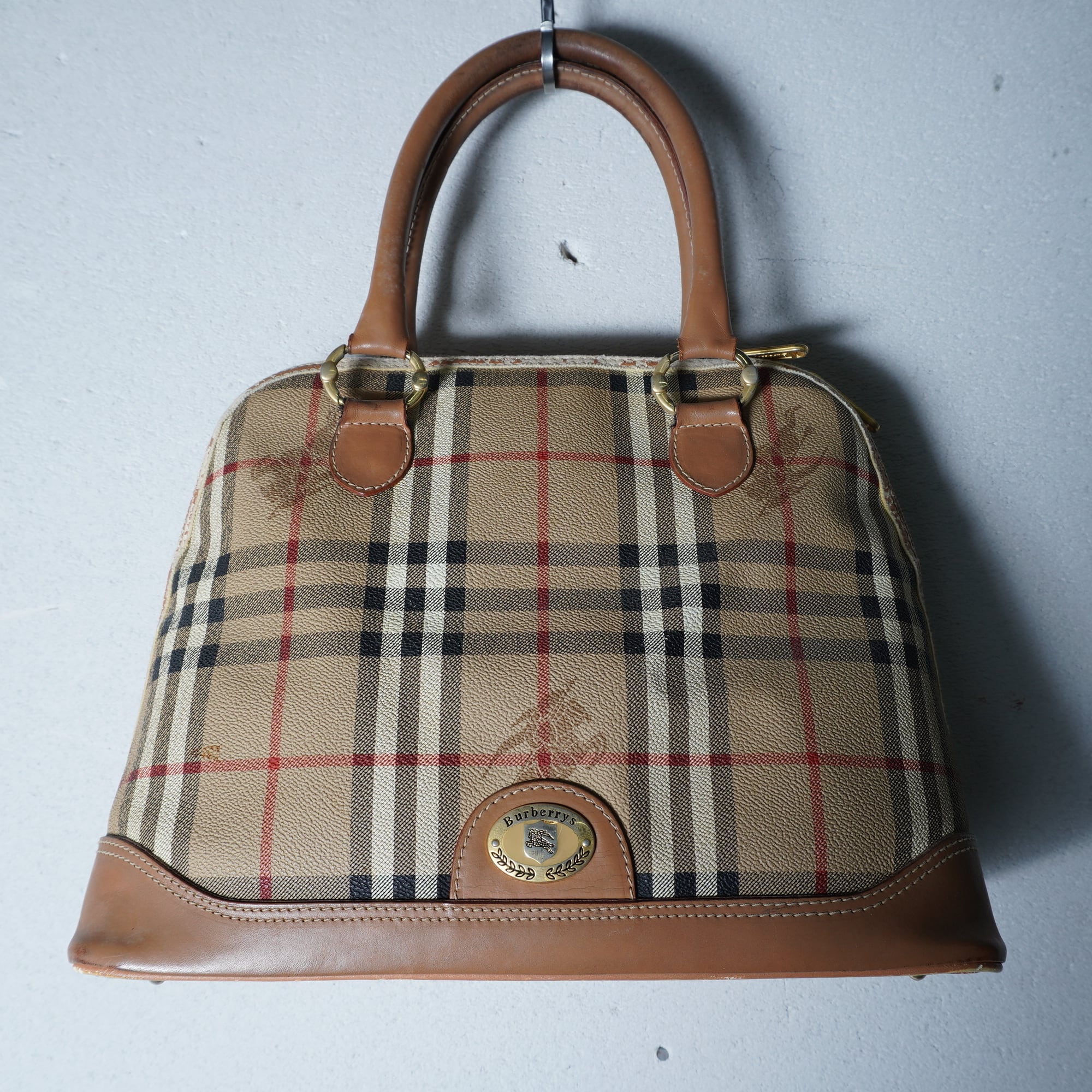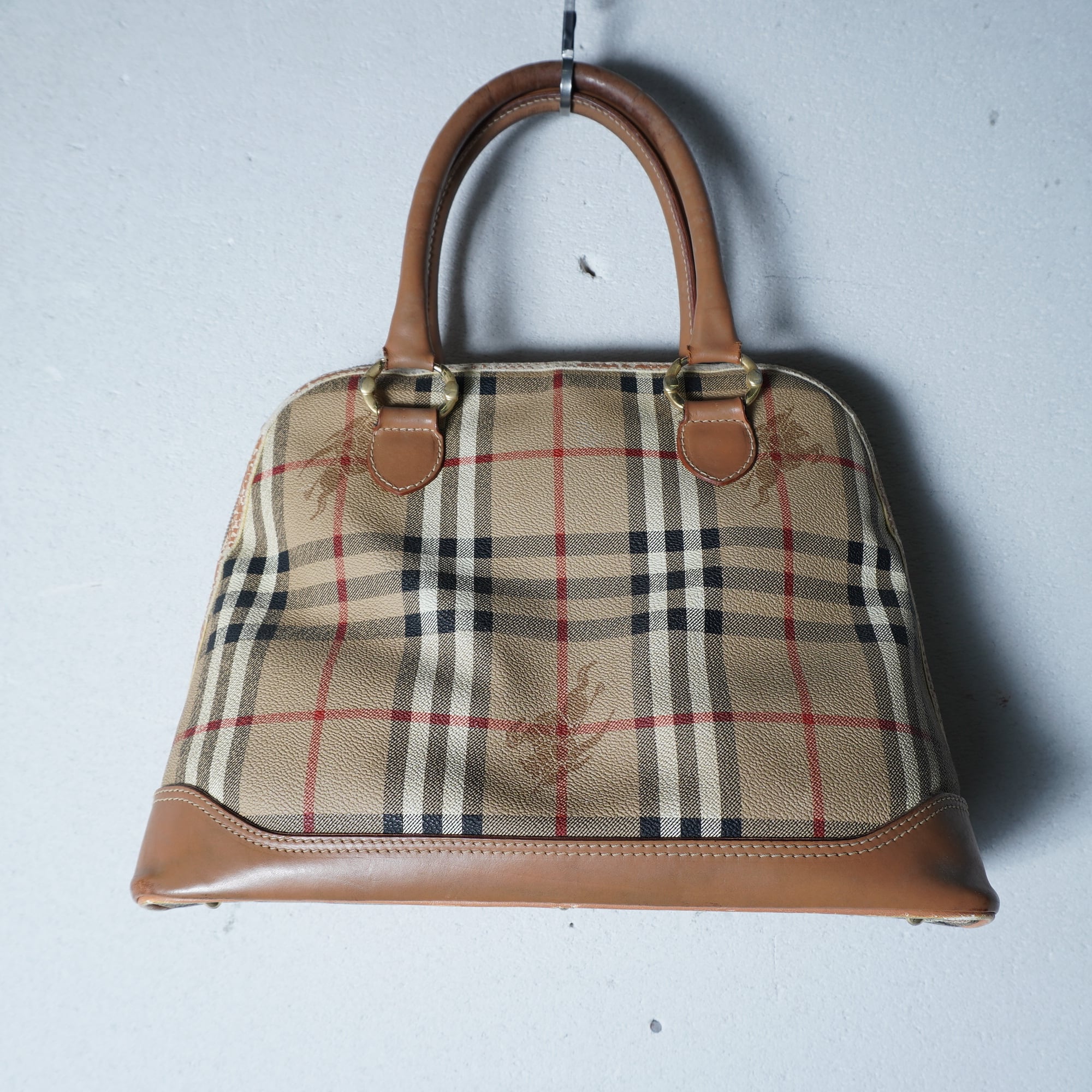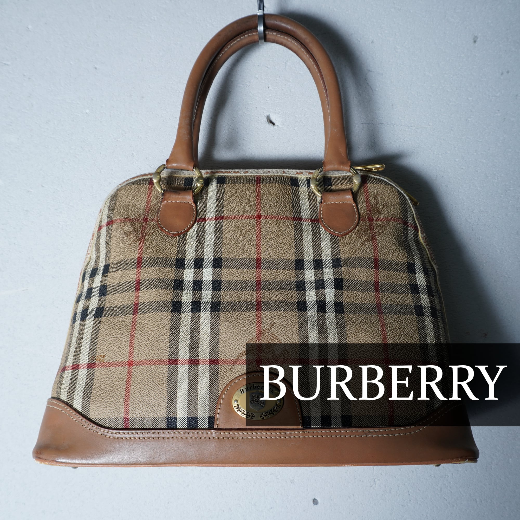 【BURBERRY】バーバリー ”ホースロゴ・ノバチェック” レザーハンドバッグ beige