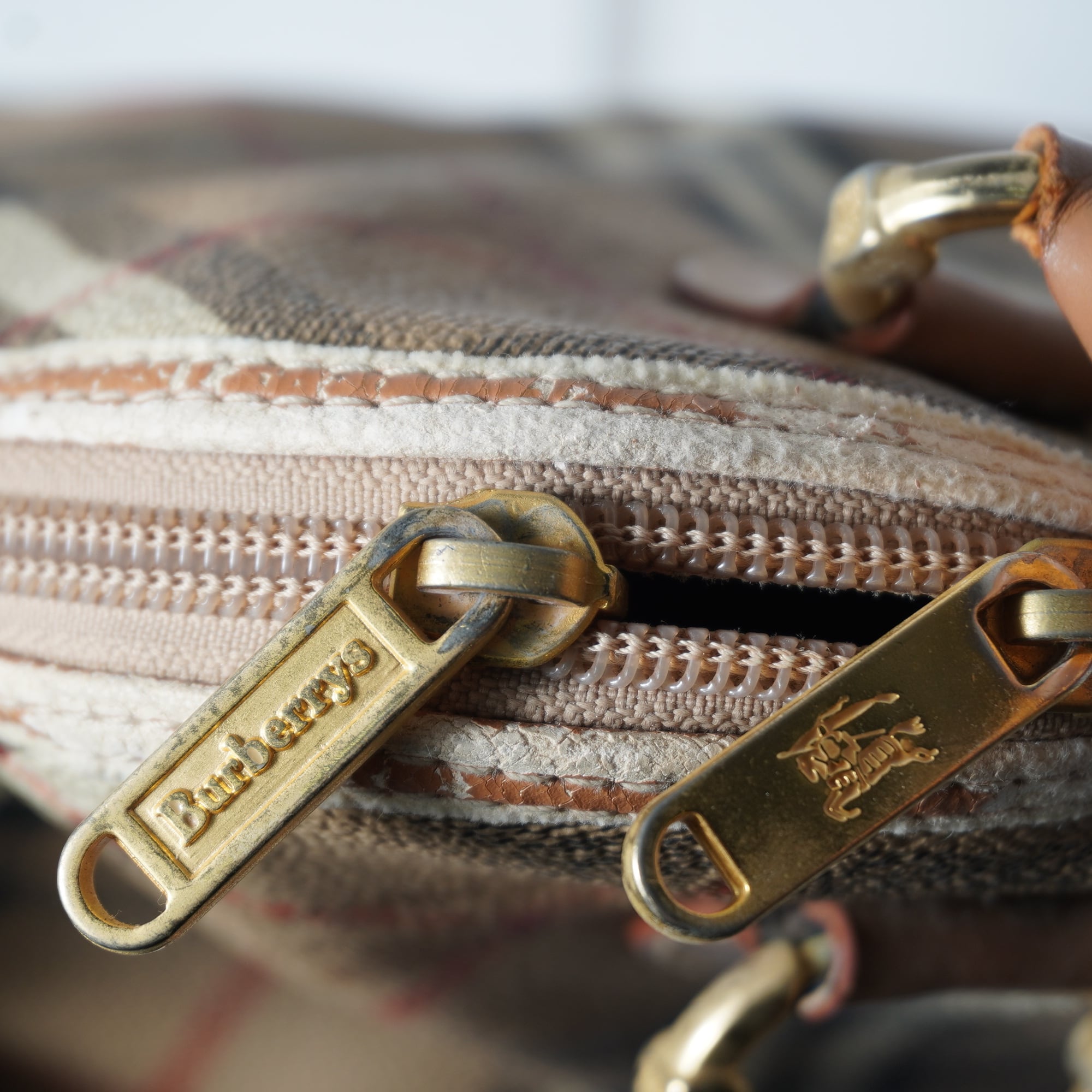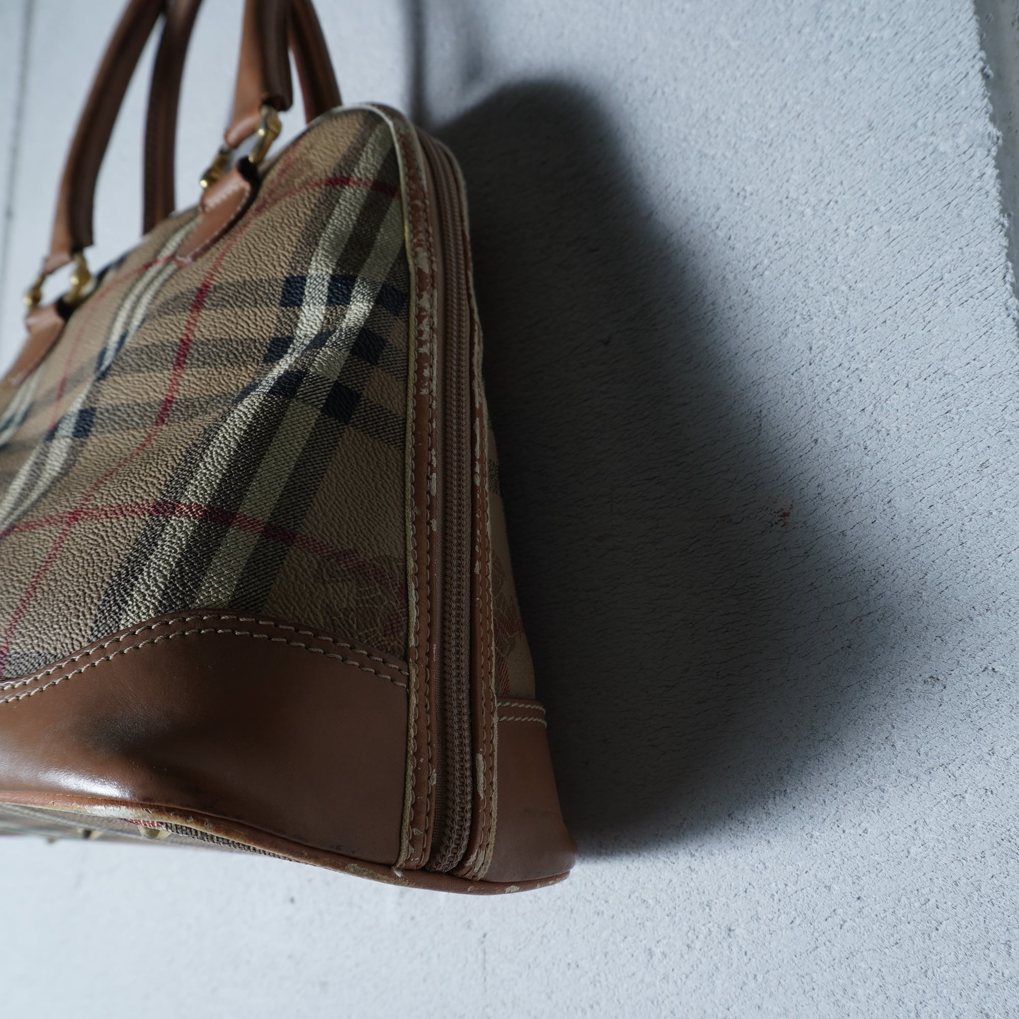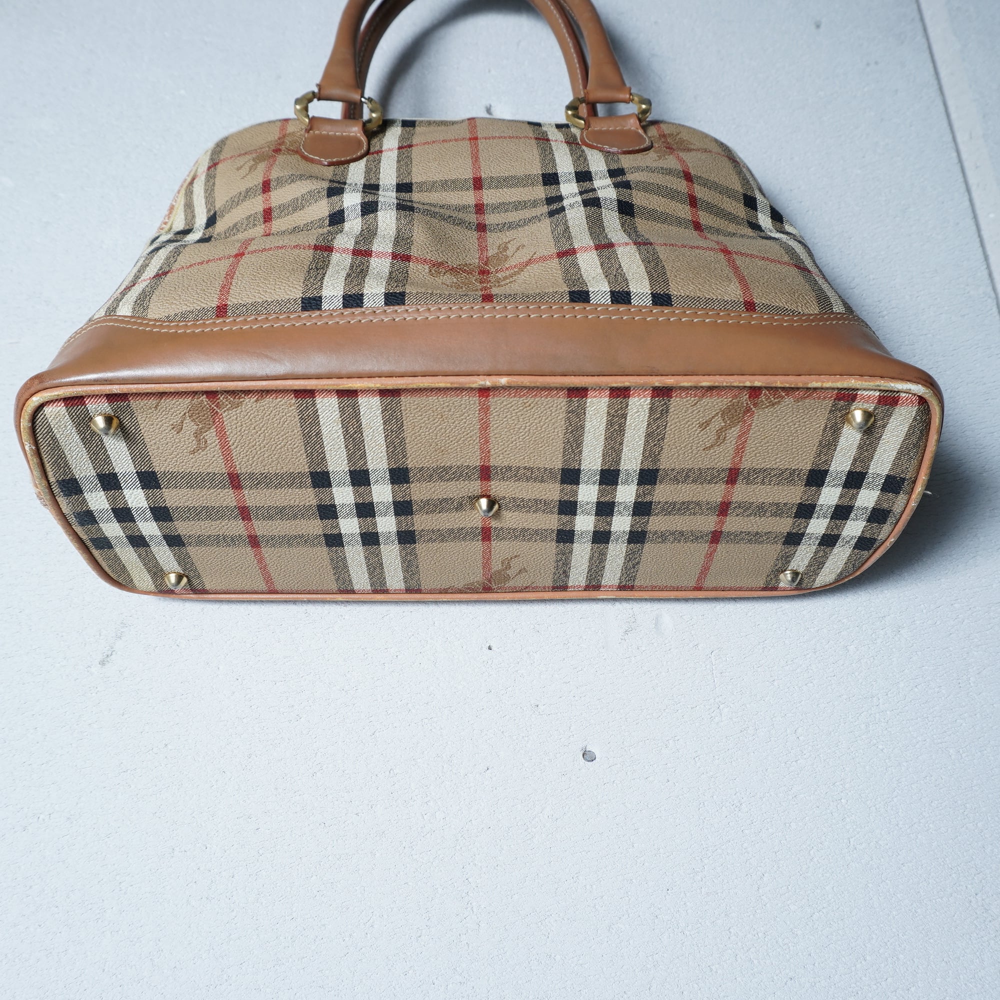 【BURBERRY】バーバリー ”ホースロゴ・ノバチェック” レザーハンドバッグ beige