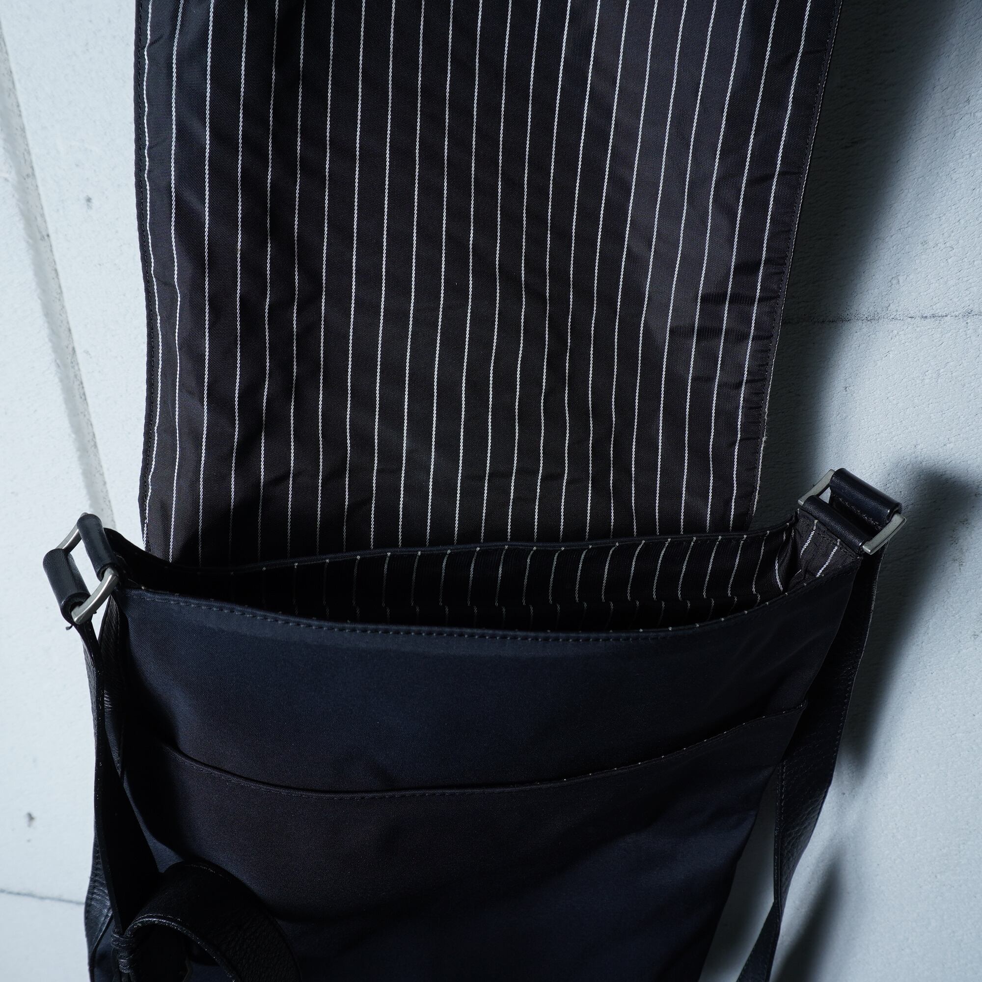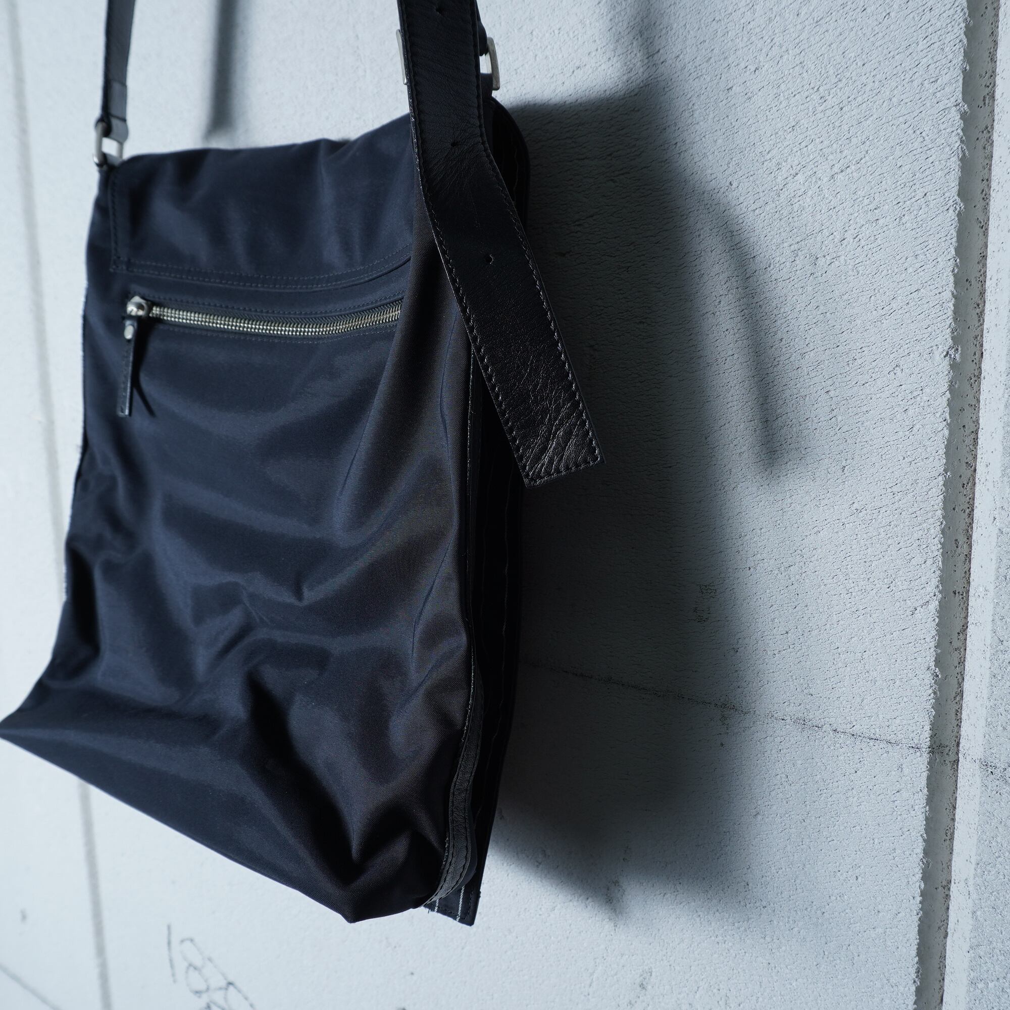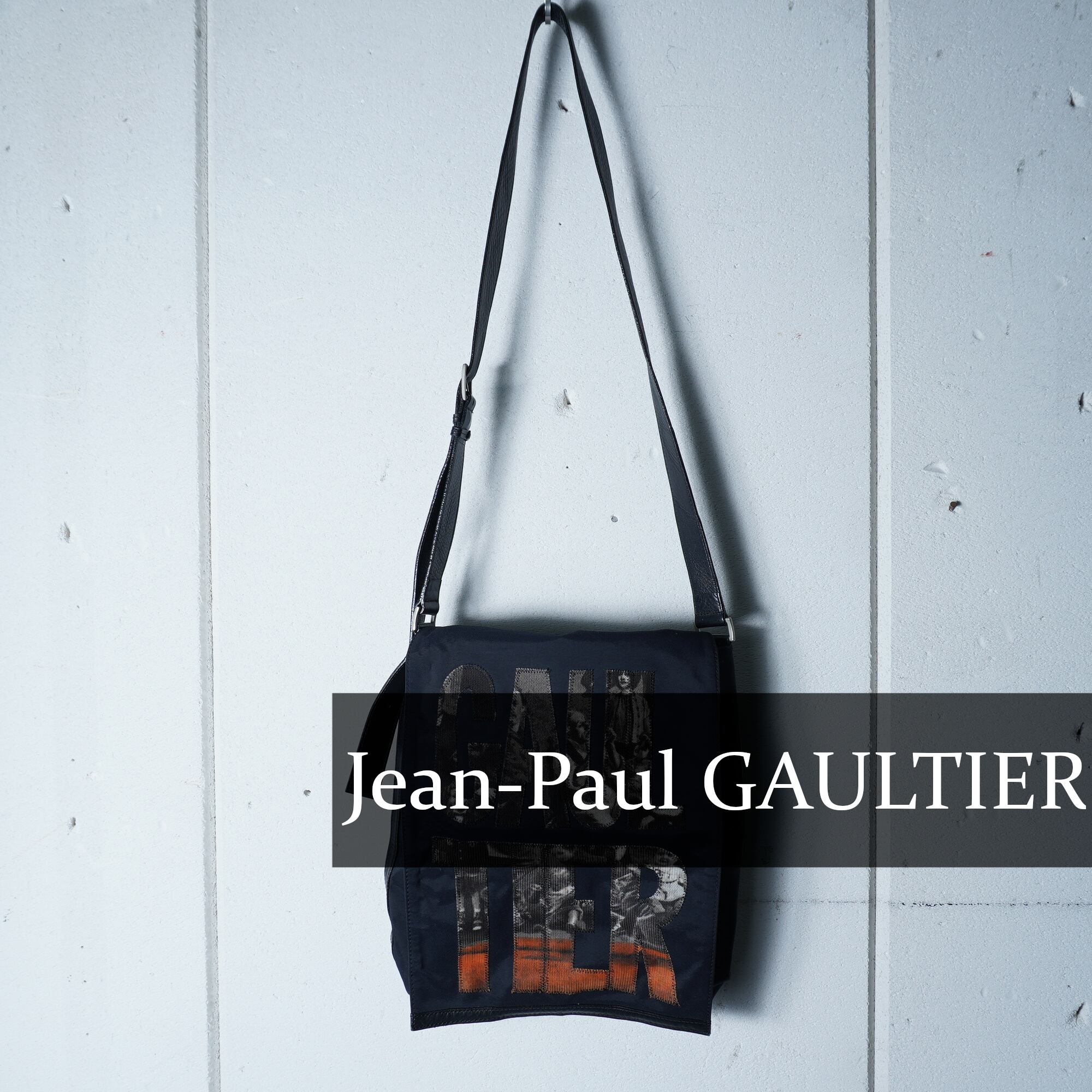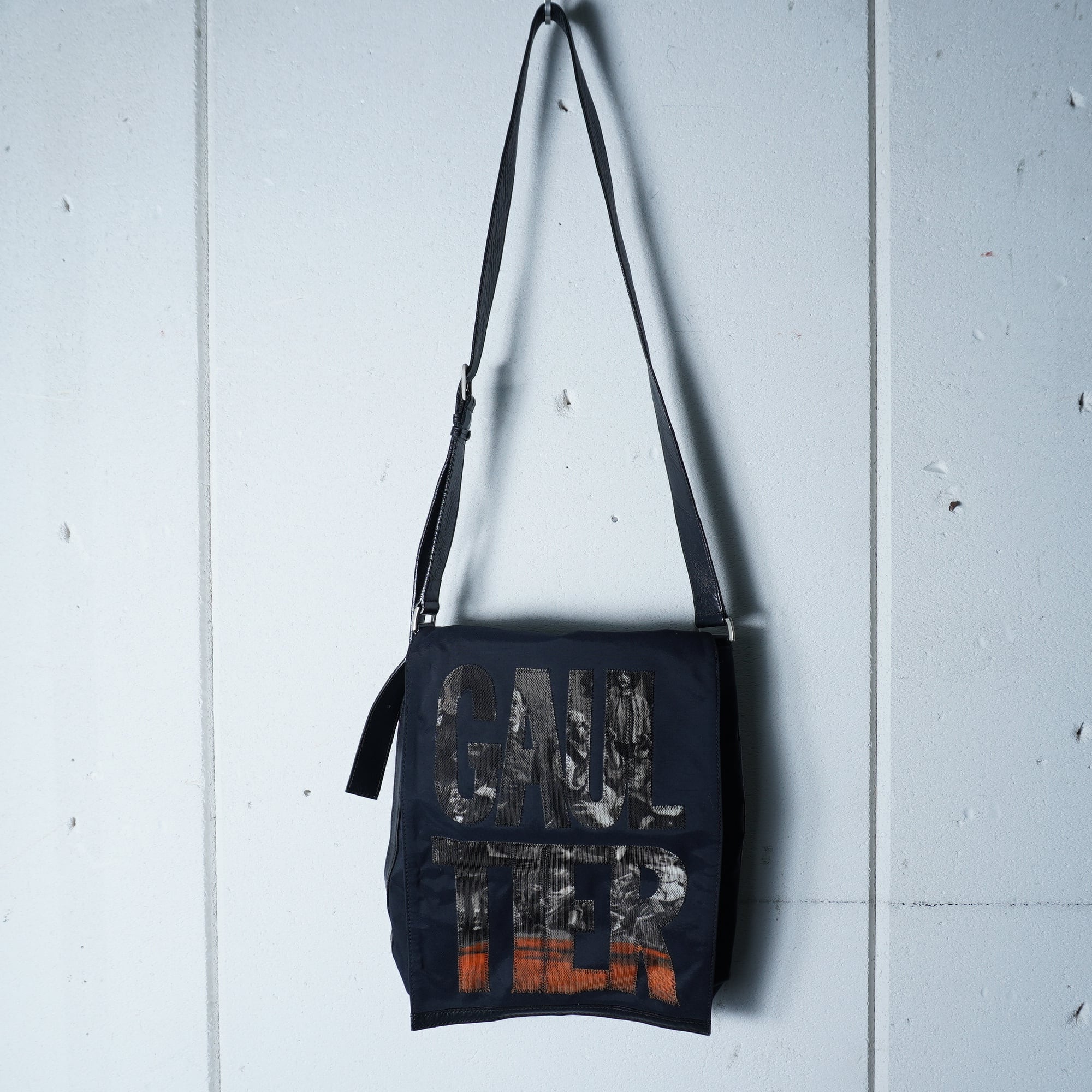 【Jean Paul GAULTIER】ジャンポールゴルチエ "ARCHIVE" アンティーク柄ロゴレザー切替ナイロンショルダーバッグ