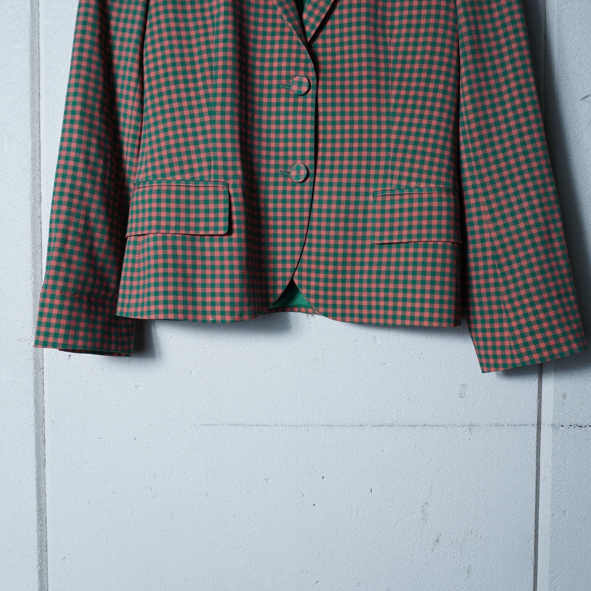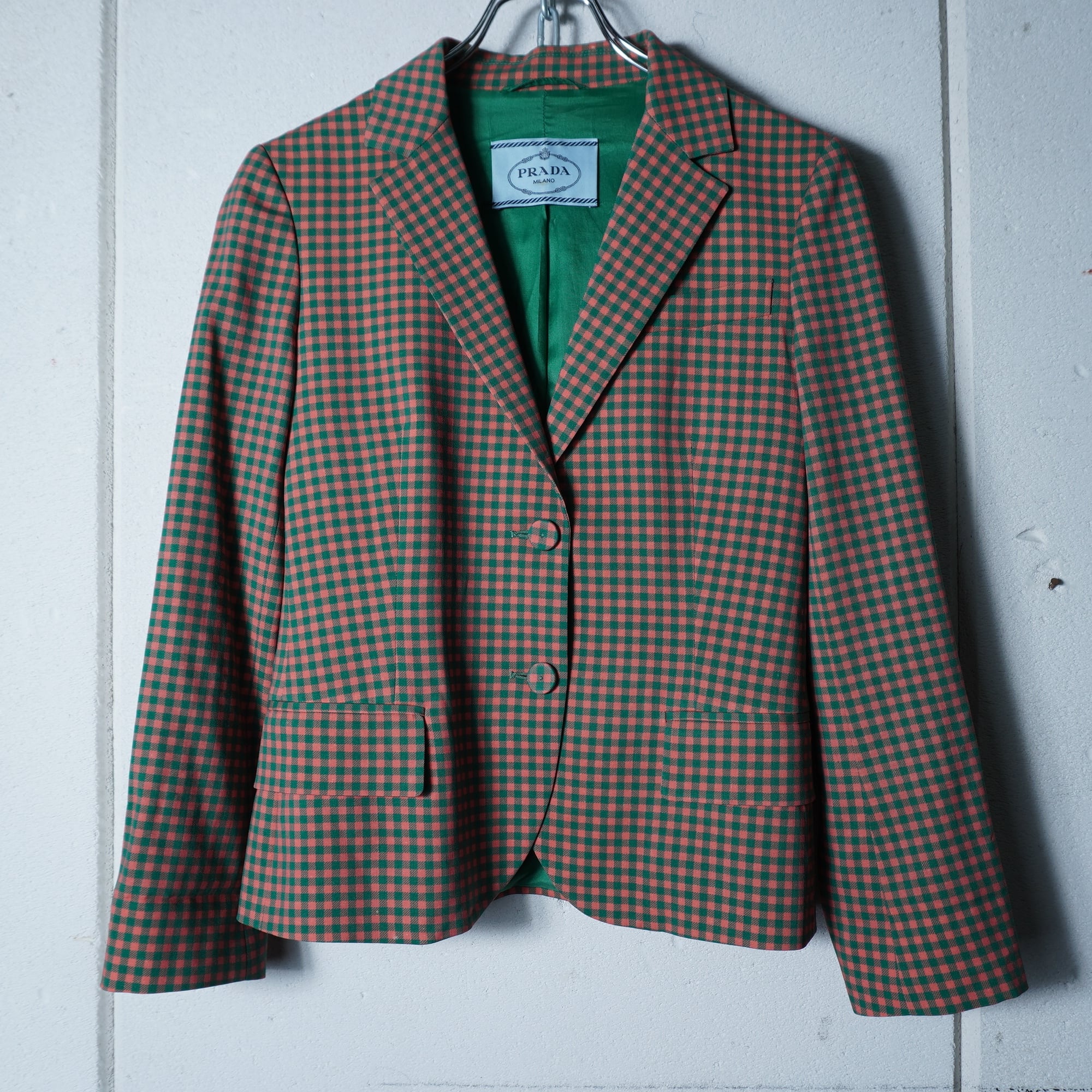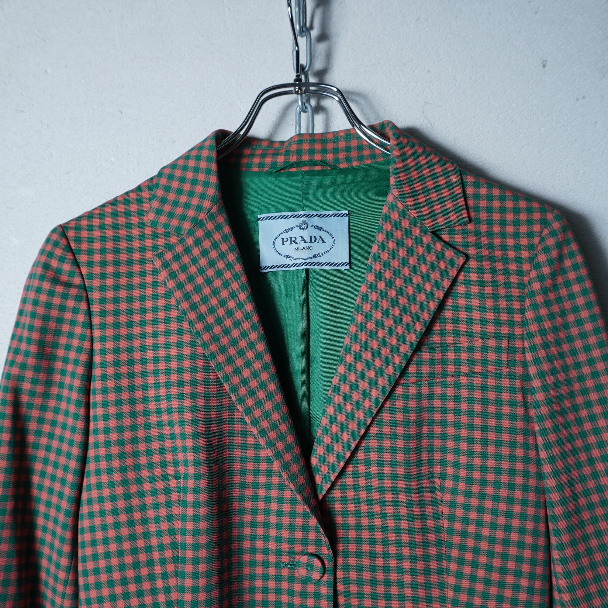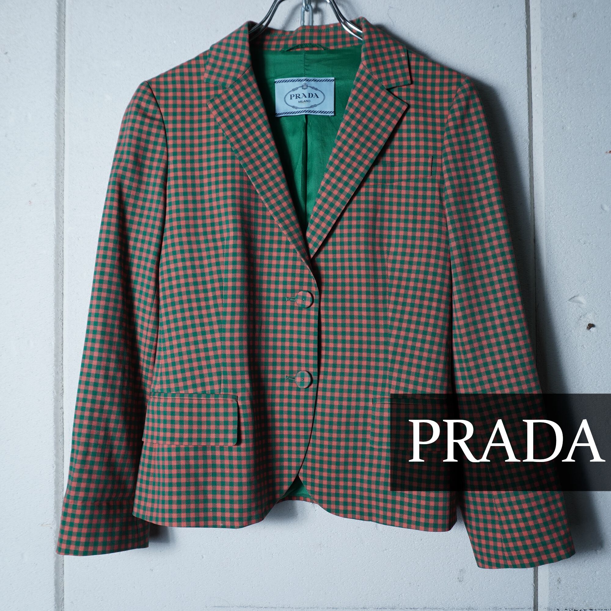 【PRADA】プラダ ギンガムチェックテーラードジャケット green&pink