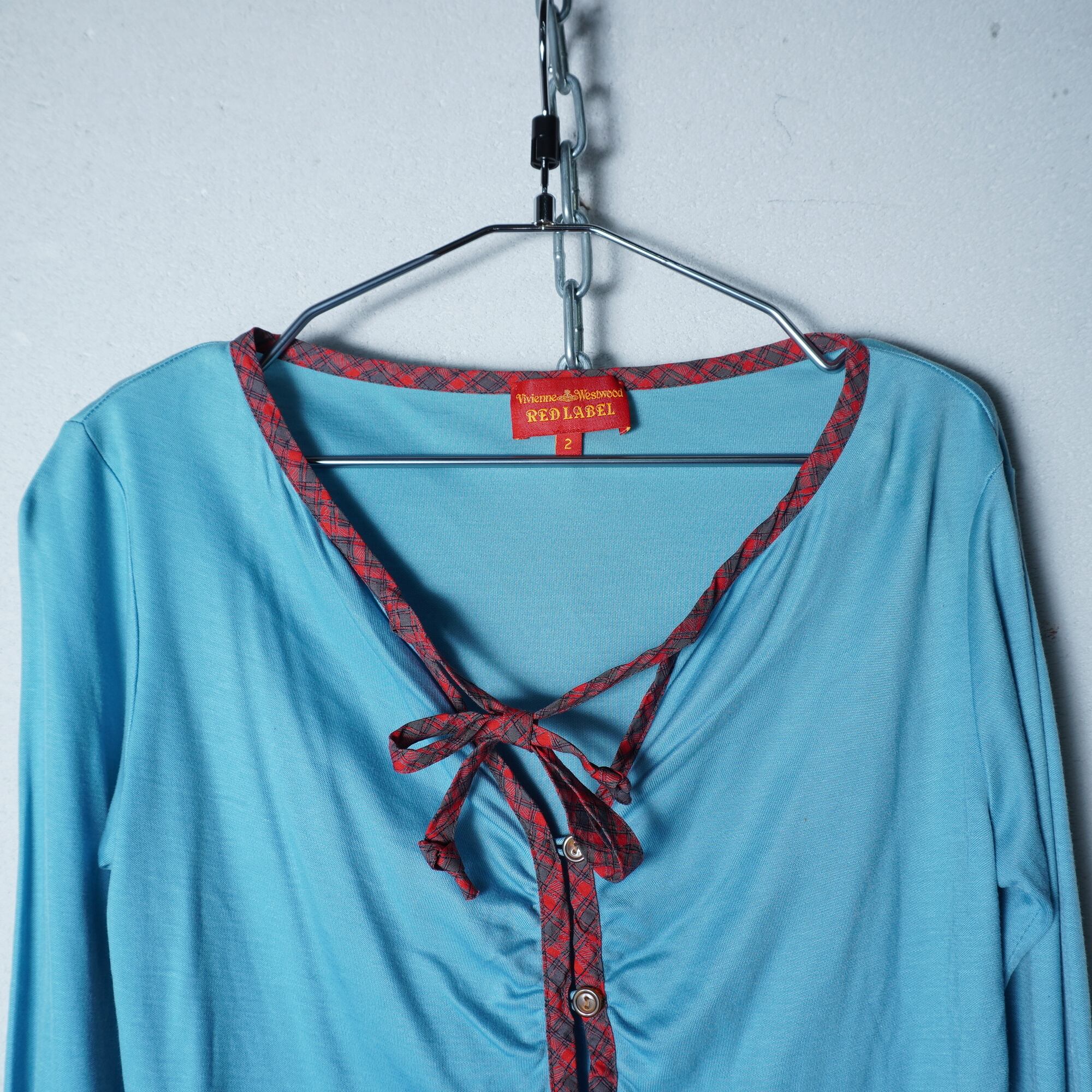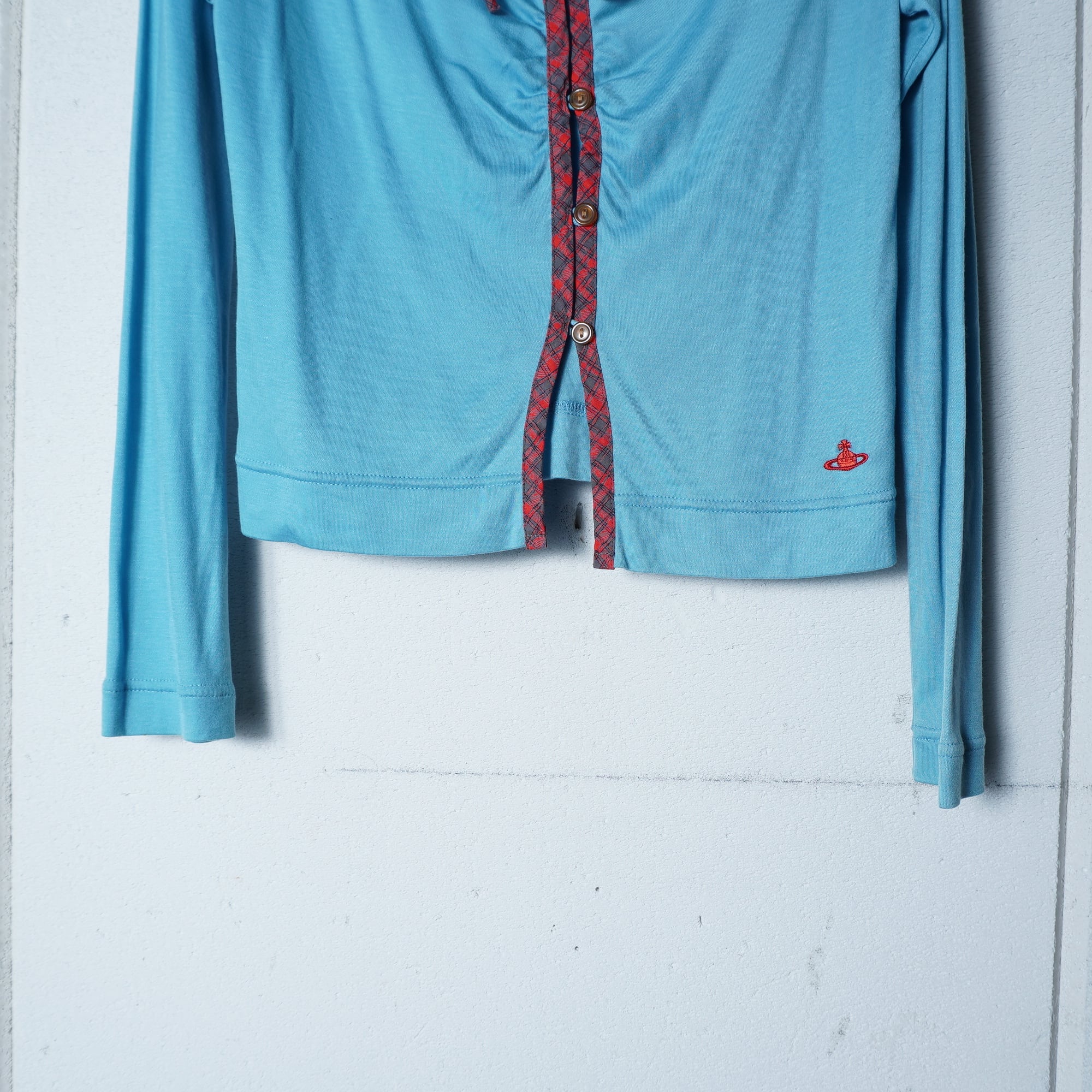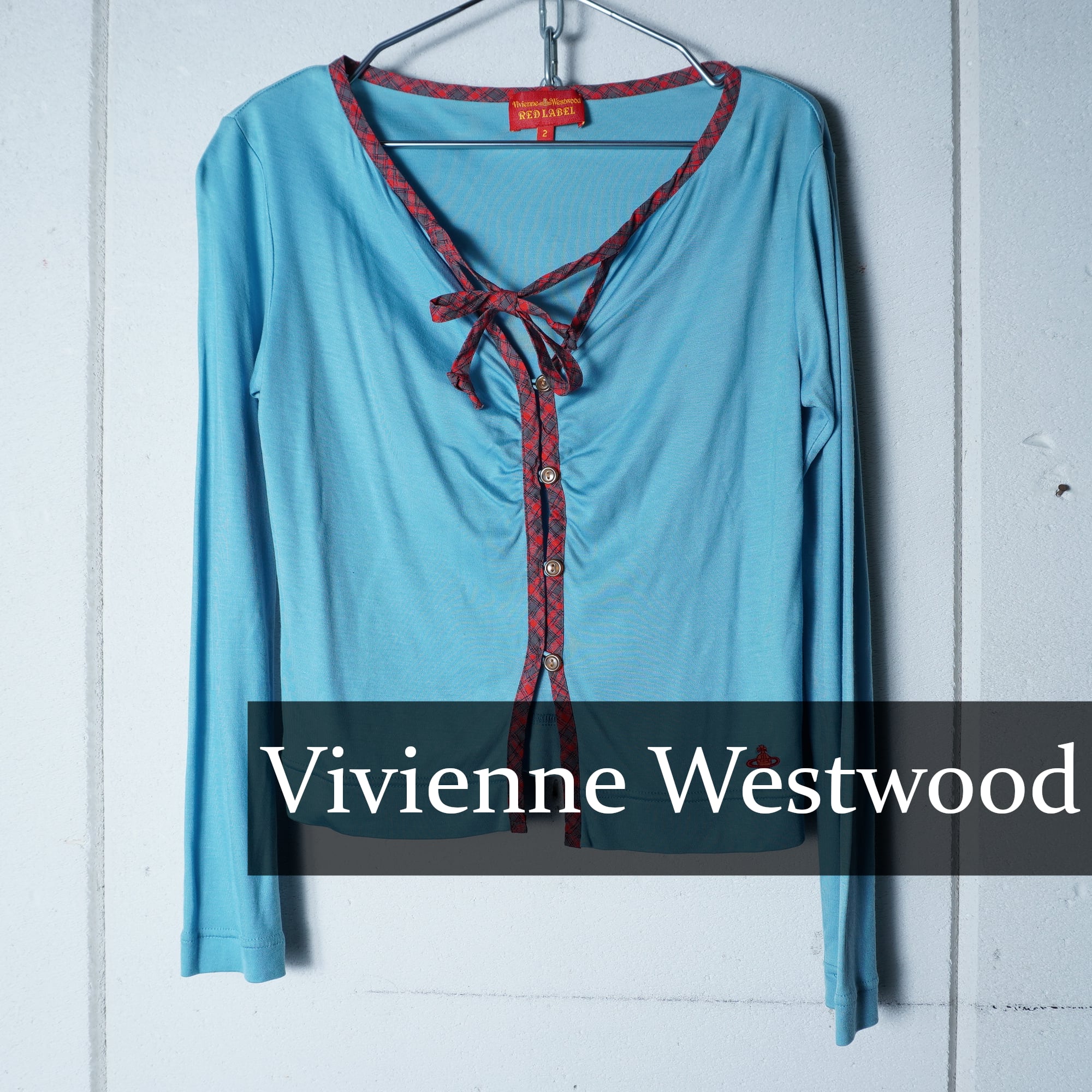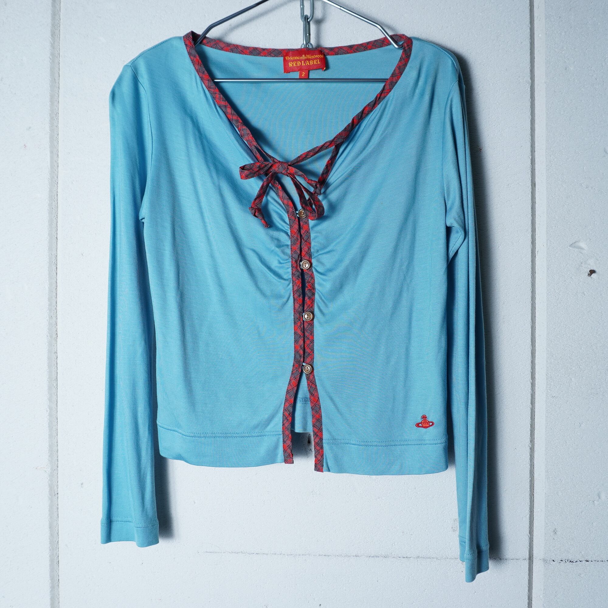【Vivienne Westwood】ヴィヴィアンウエストウッド ”オーブロゴ刺繍”チェックリボンタイカーディガン blue