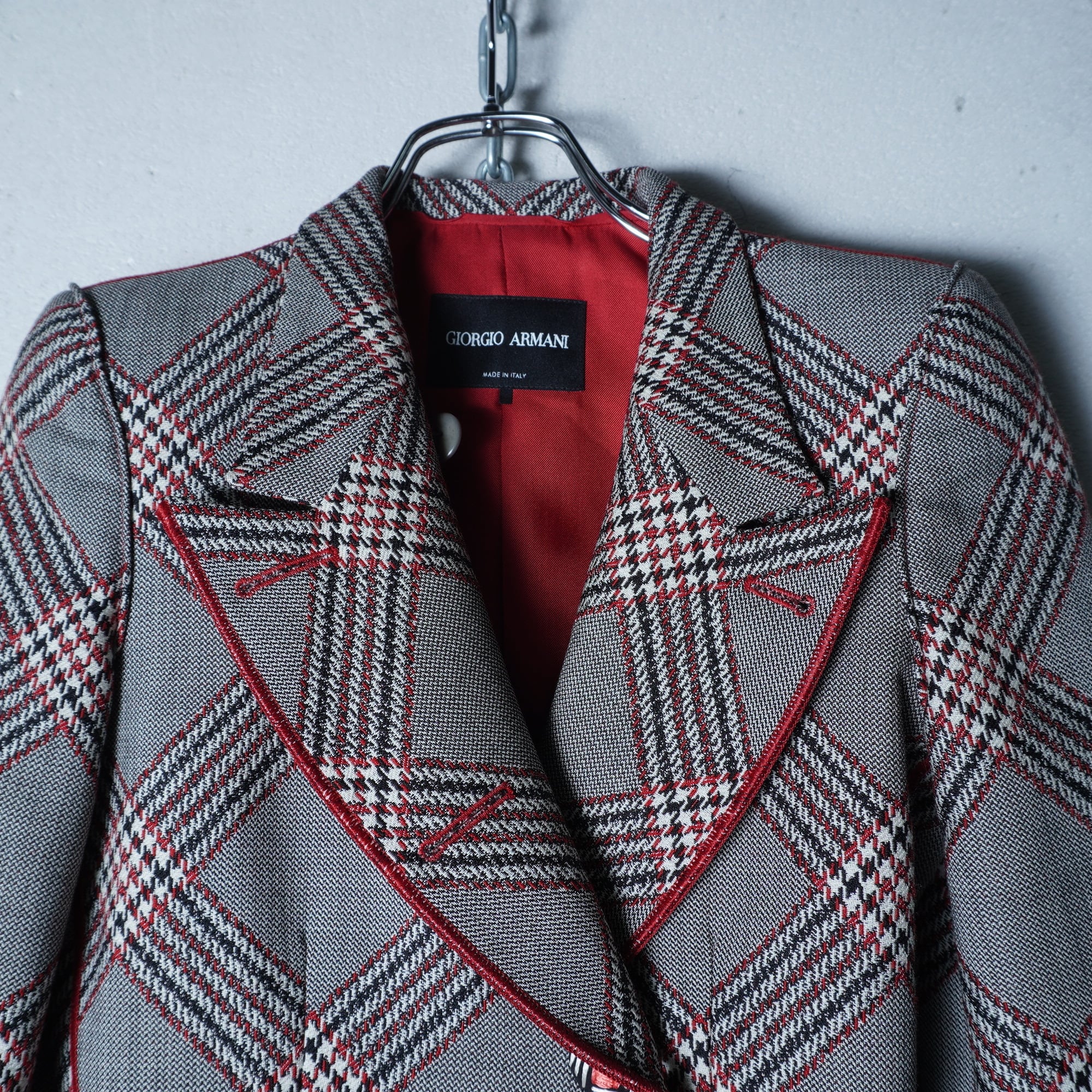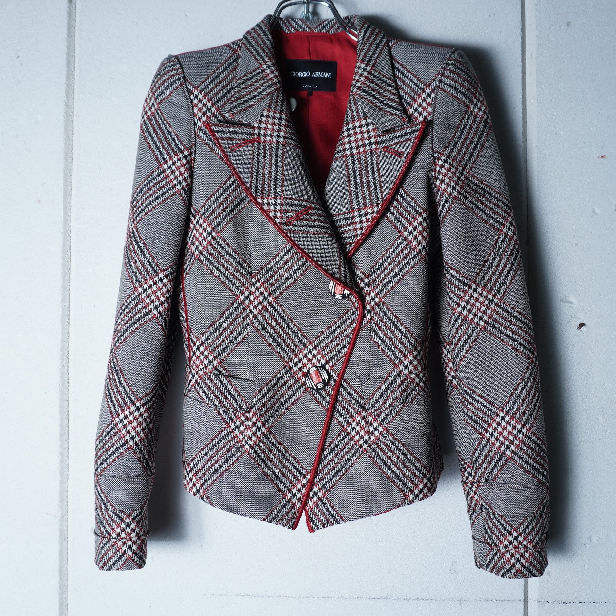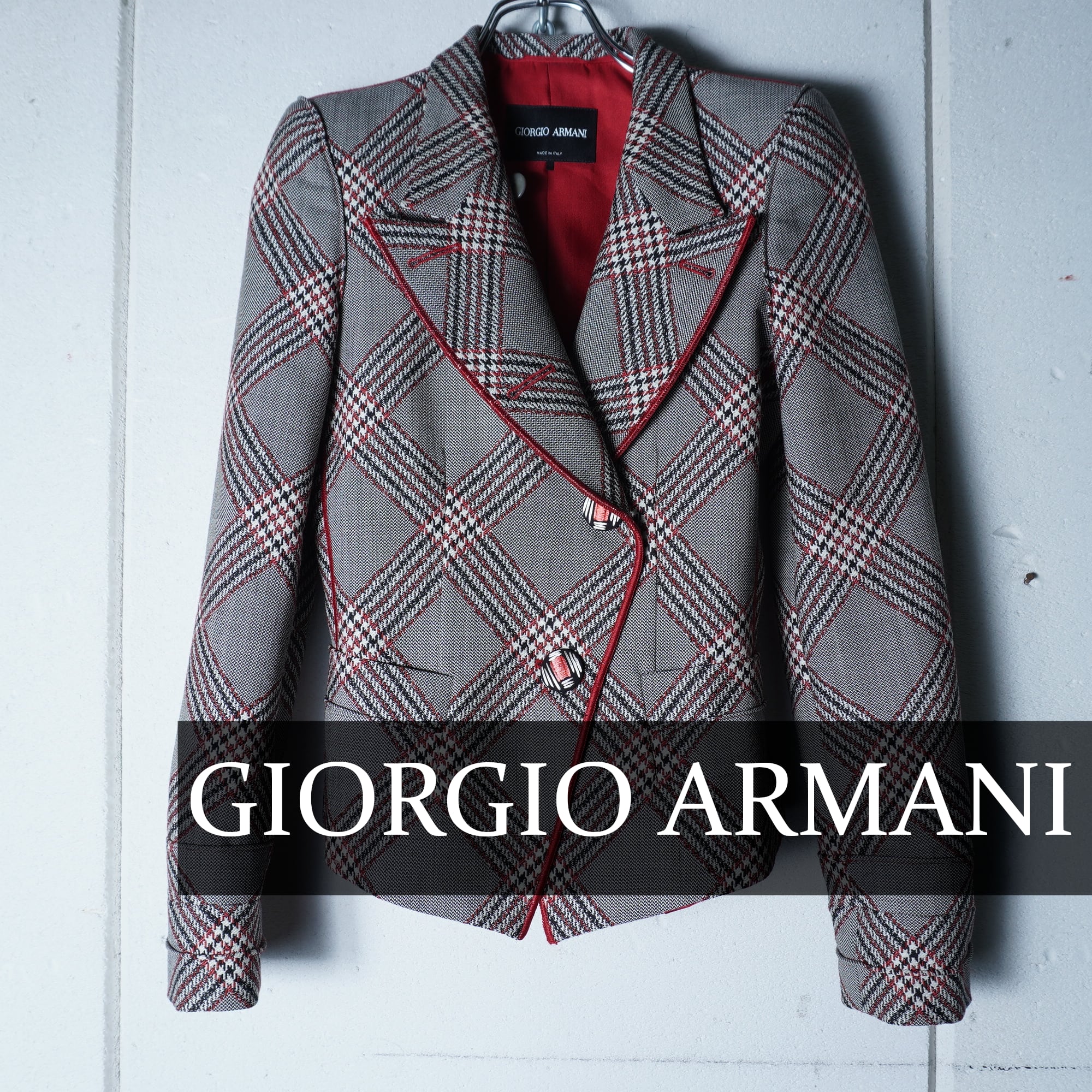【GIORGIOARMANI】”WOOL100%”チェック柄ジャケット gray&black&red