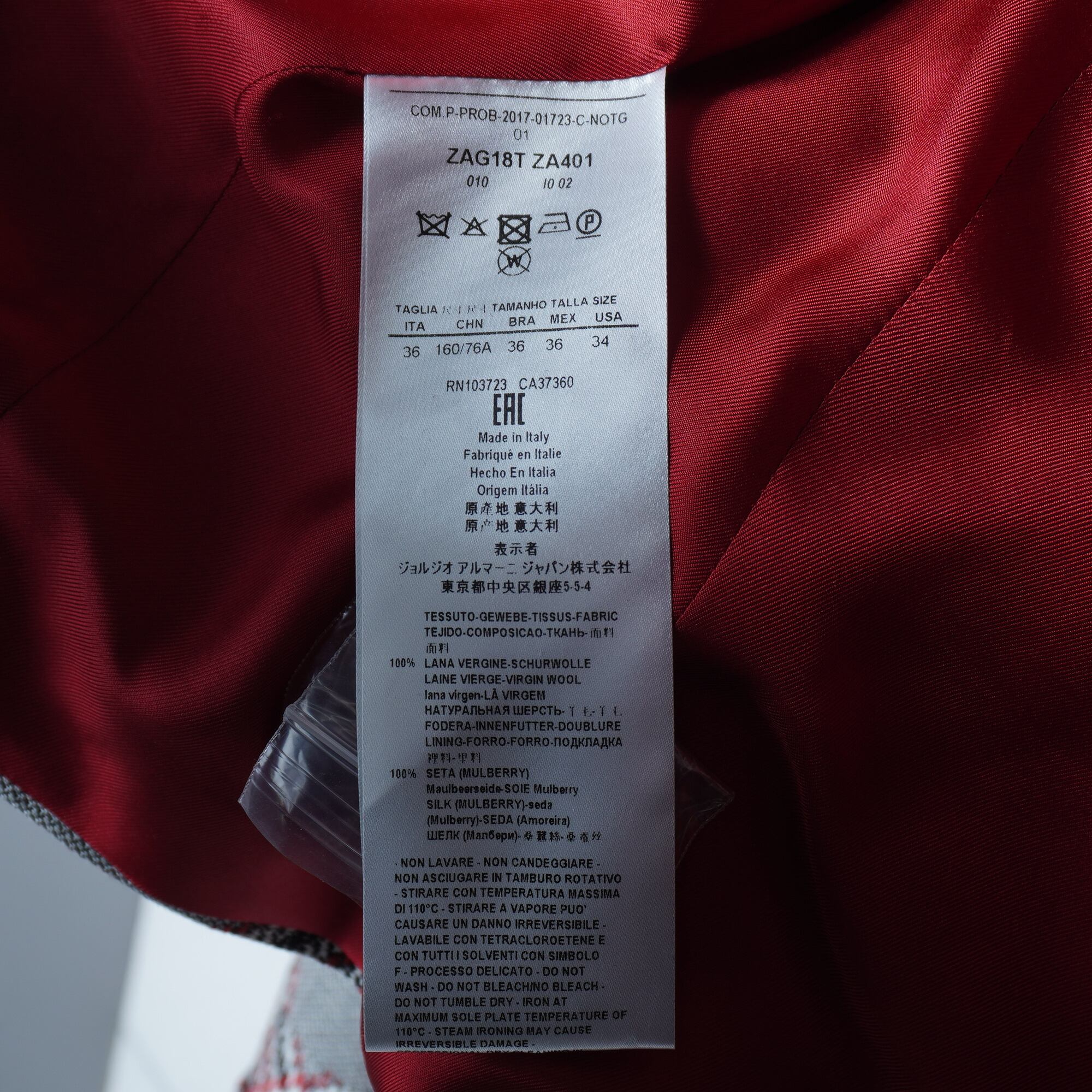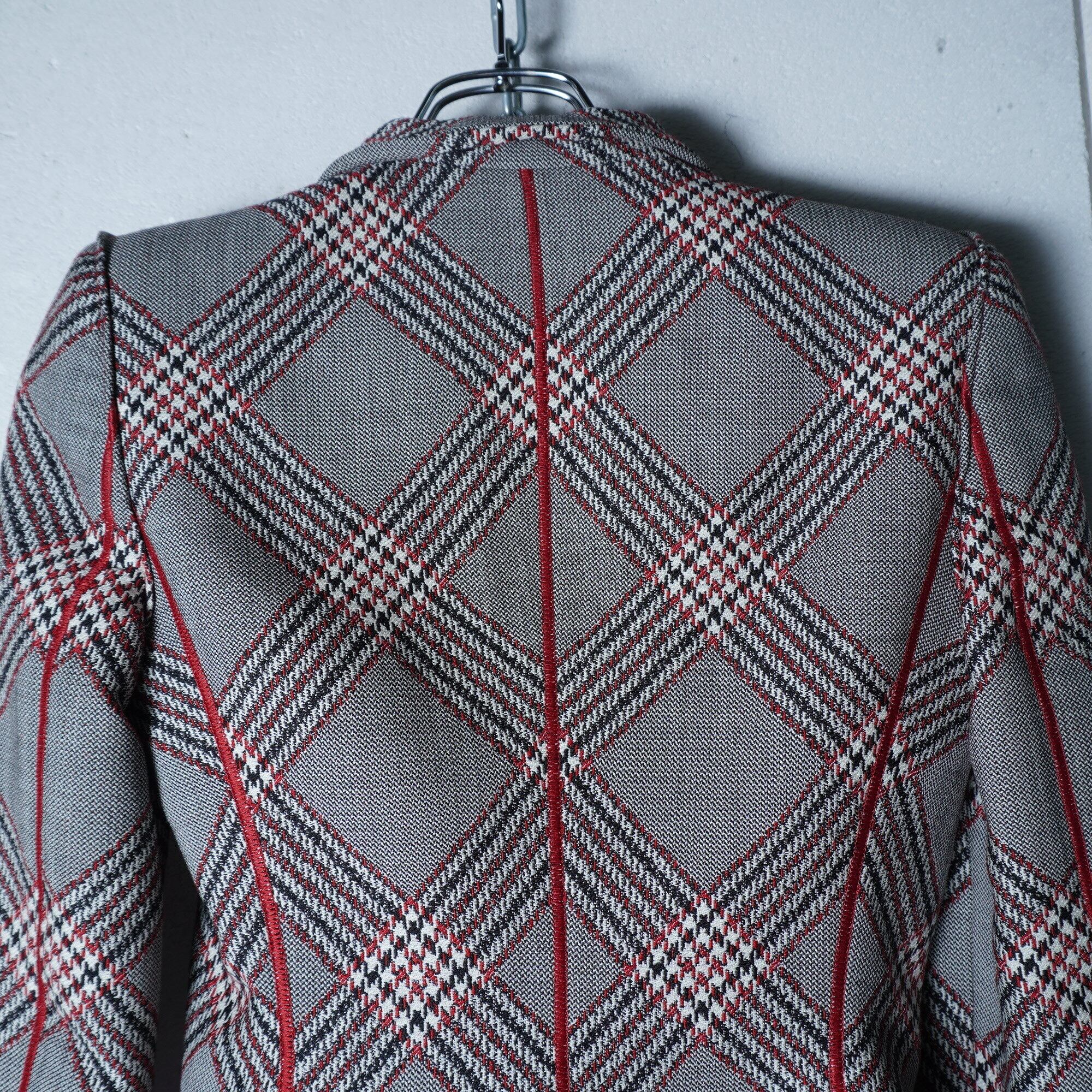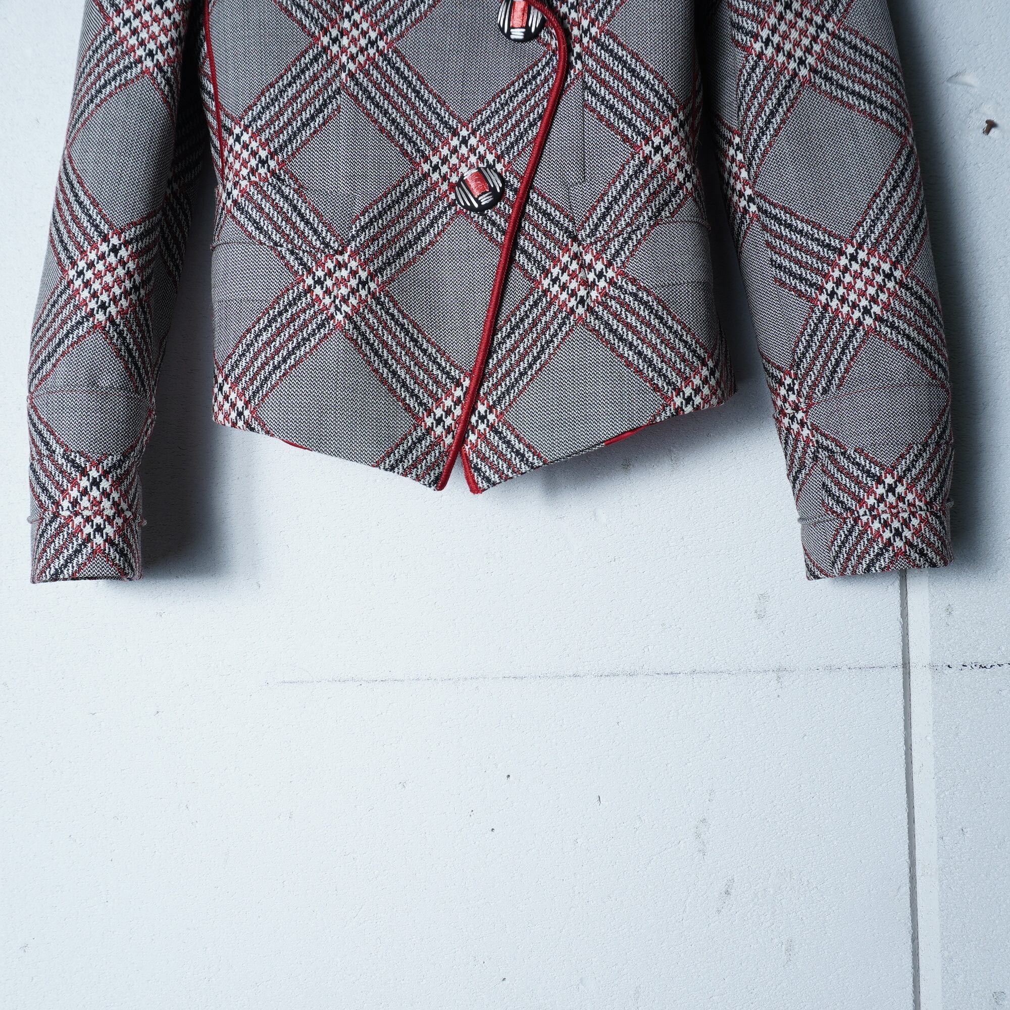 【GIORGIOARMANI】”WOOL100%”チェック柄ジャケット gray&black&red