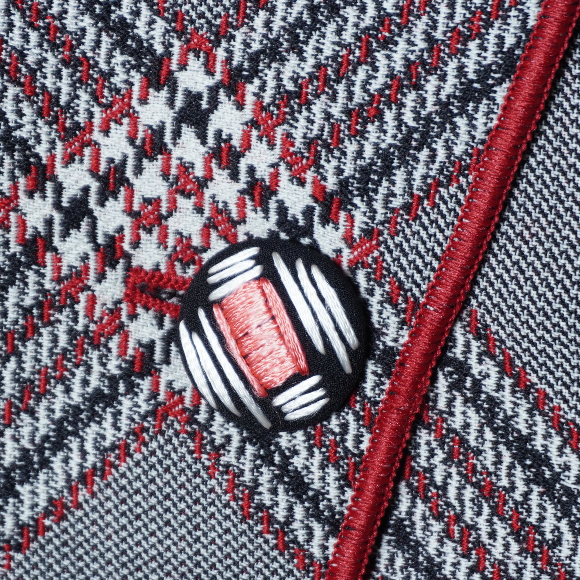 ・シックなグレー、ブラック、レッドのチェック柄が魅力的