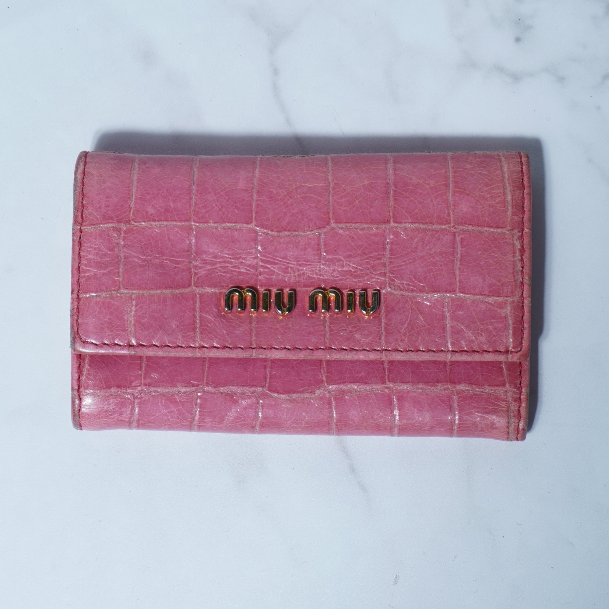 【miumiu】ミュウミュウ クロコダイル型レザーキーホルダーケース pink