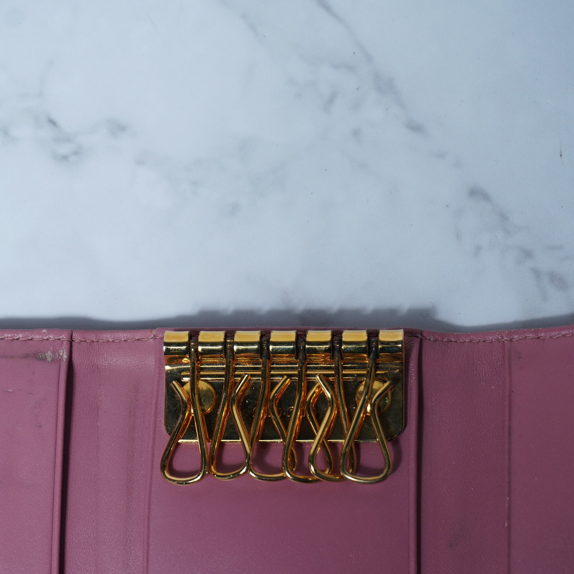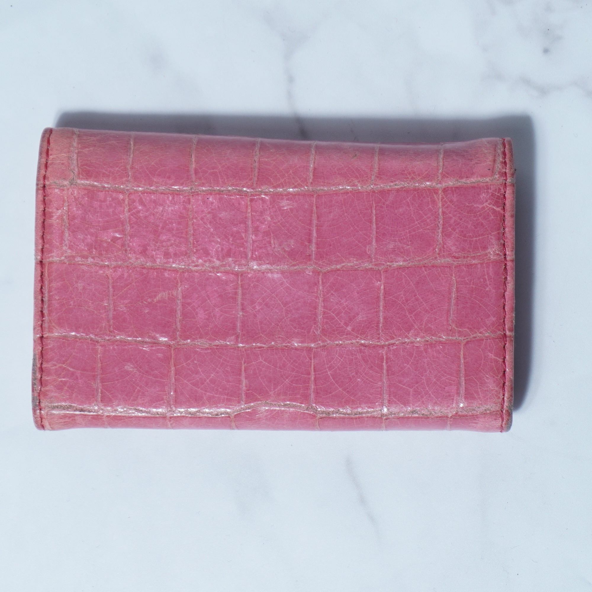 ・可愛らしいピンク色のクロコダイル型レザーが特徴的なキーホルダーケース
