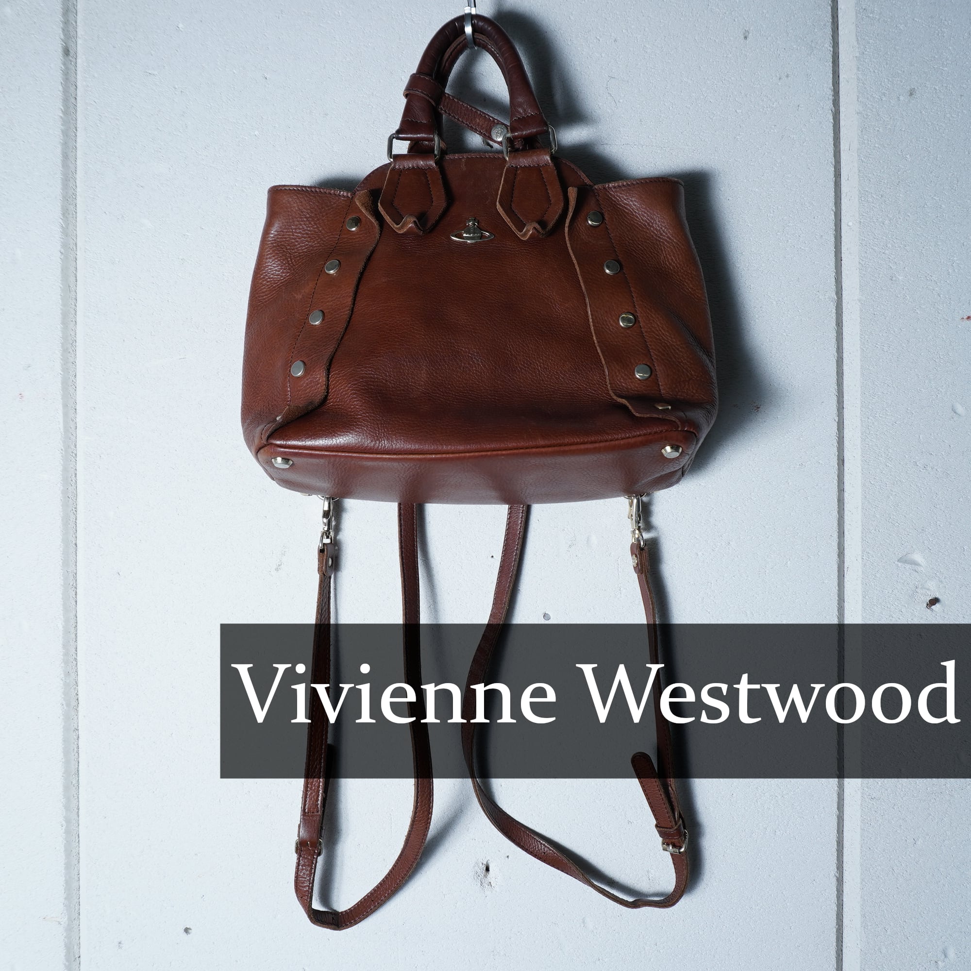 【Vivienne Westwood】ヴィヴィアンウエストウッド オーブロゴ リアルレザー2WAYバックパック brown
