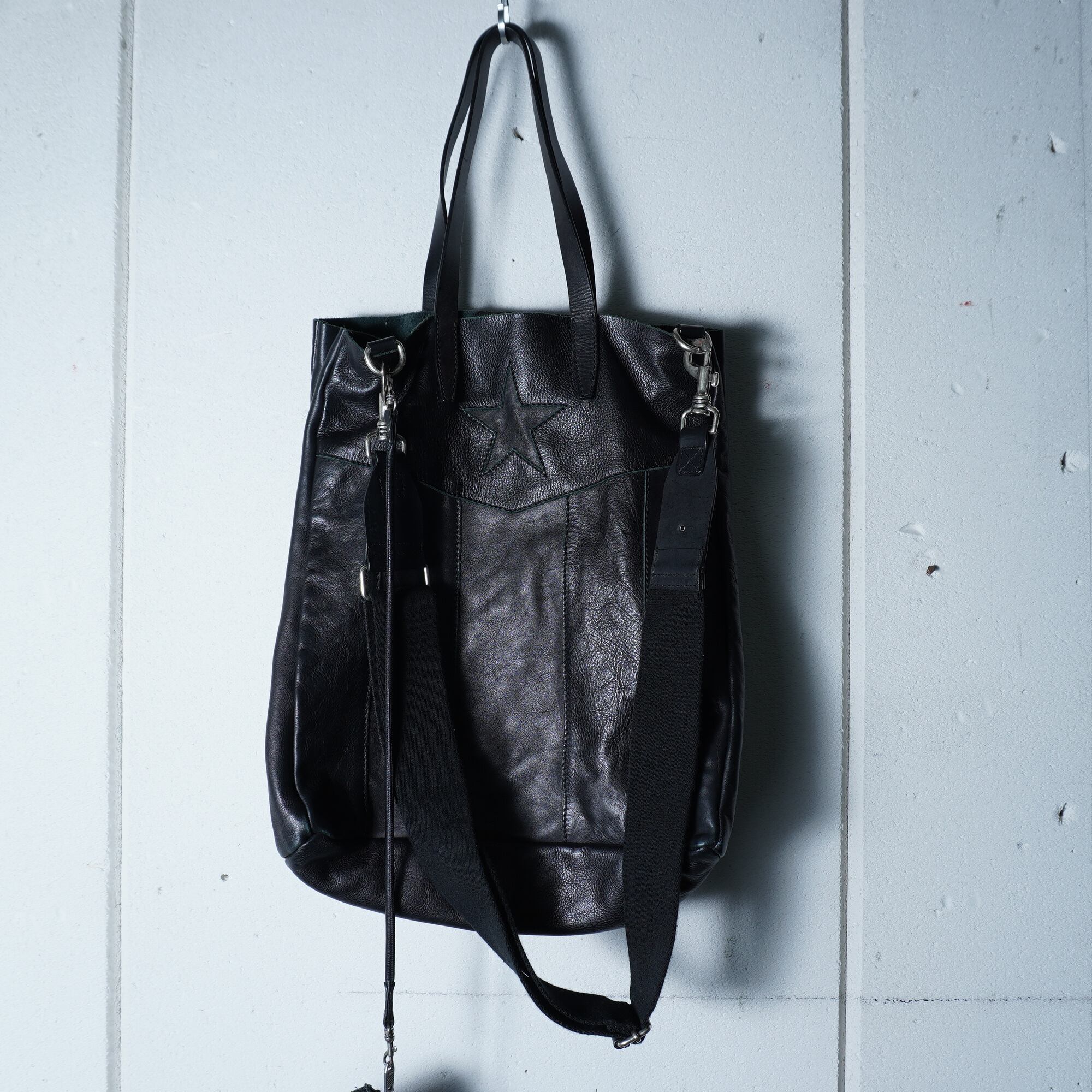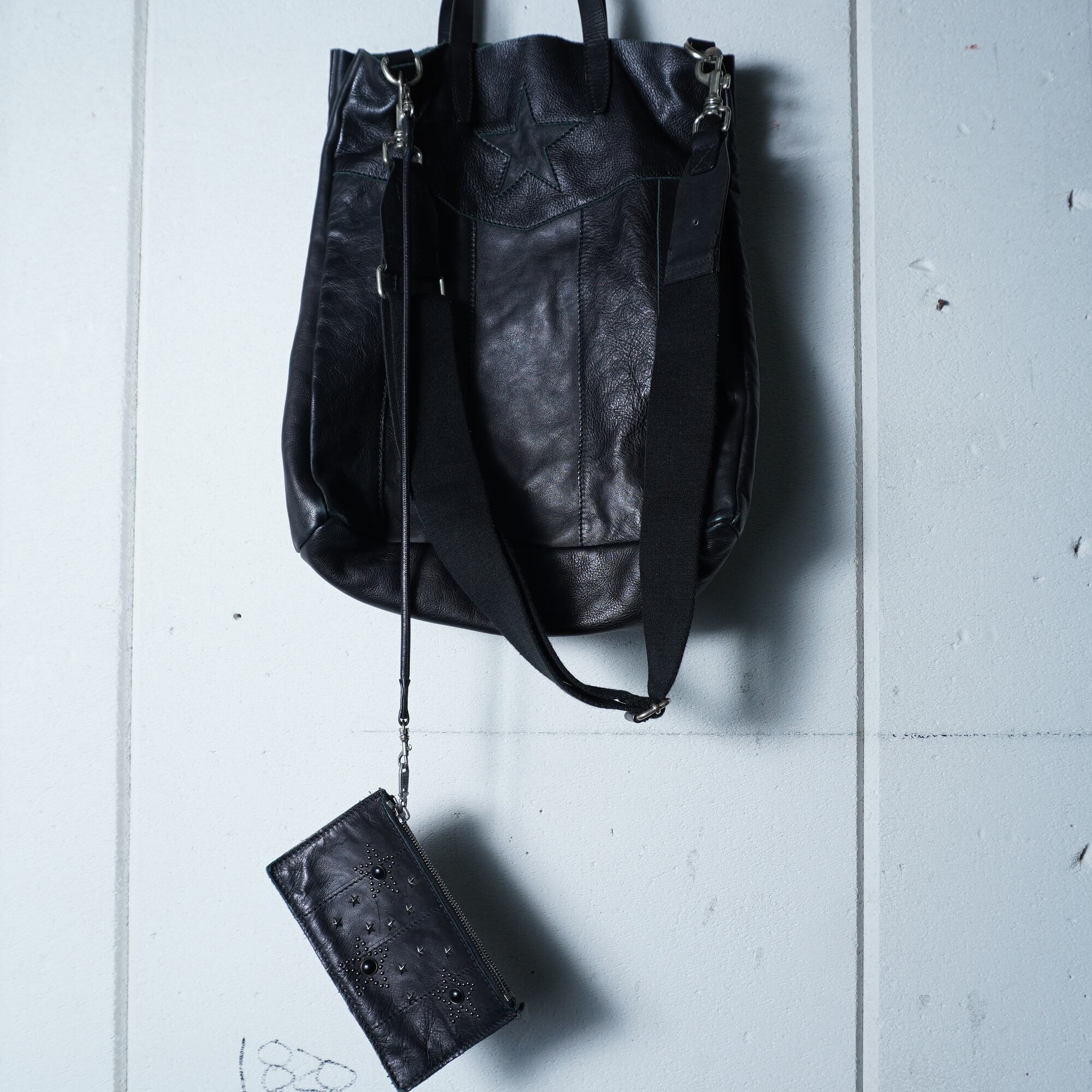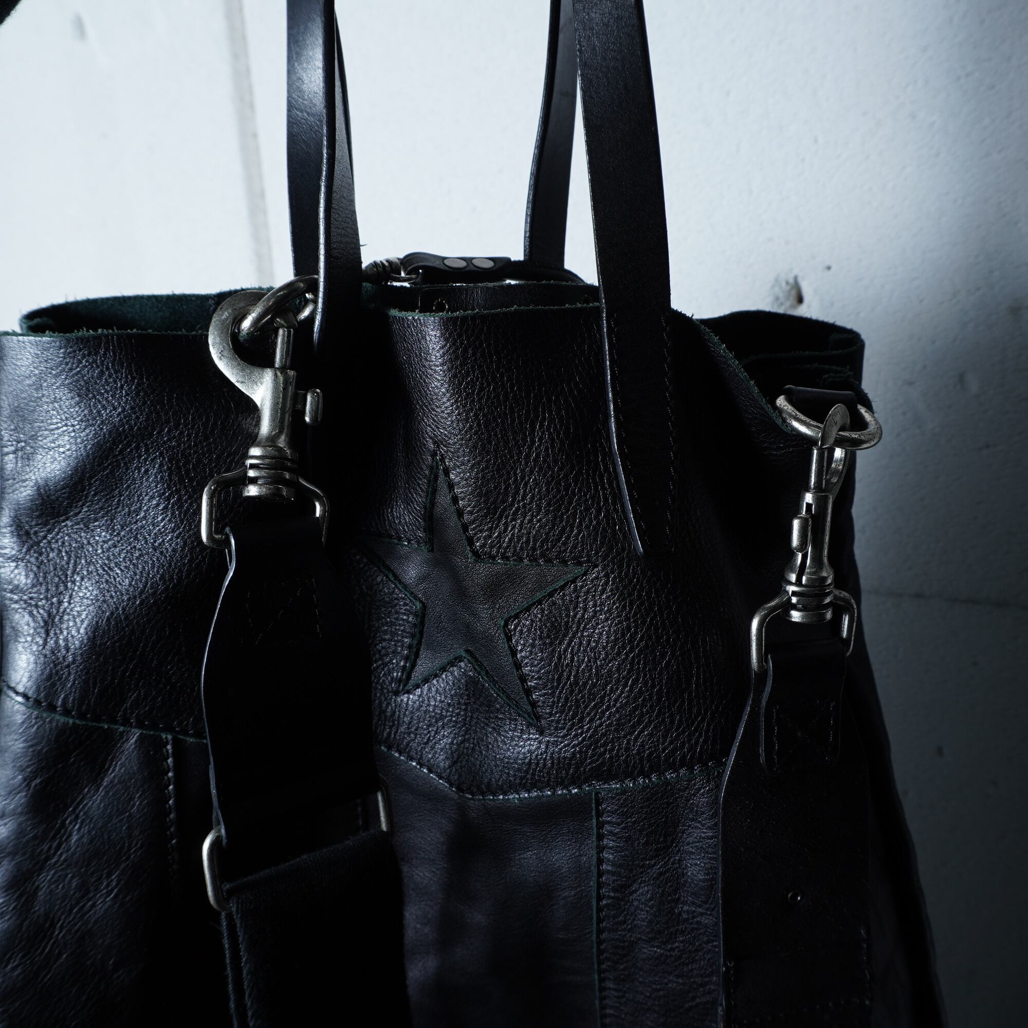 【DIESEL】ディーゼル スタッズポーチ付2WAYレザーショルダートートバッグ black