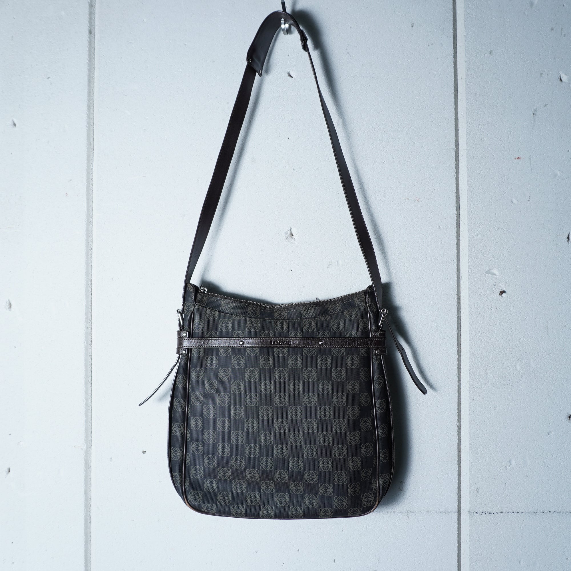 【LOEWE】ロエベ アナグラムロゴ総柄レザーショルダーバッグ dark brown