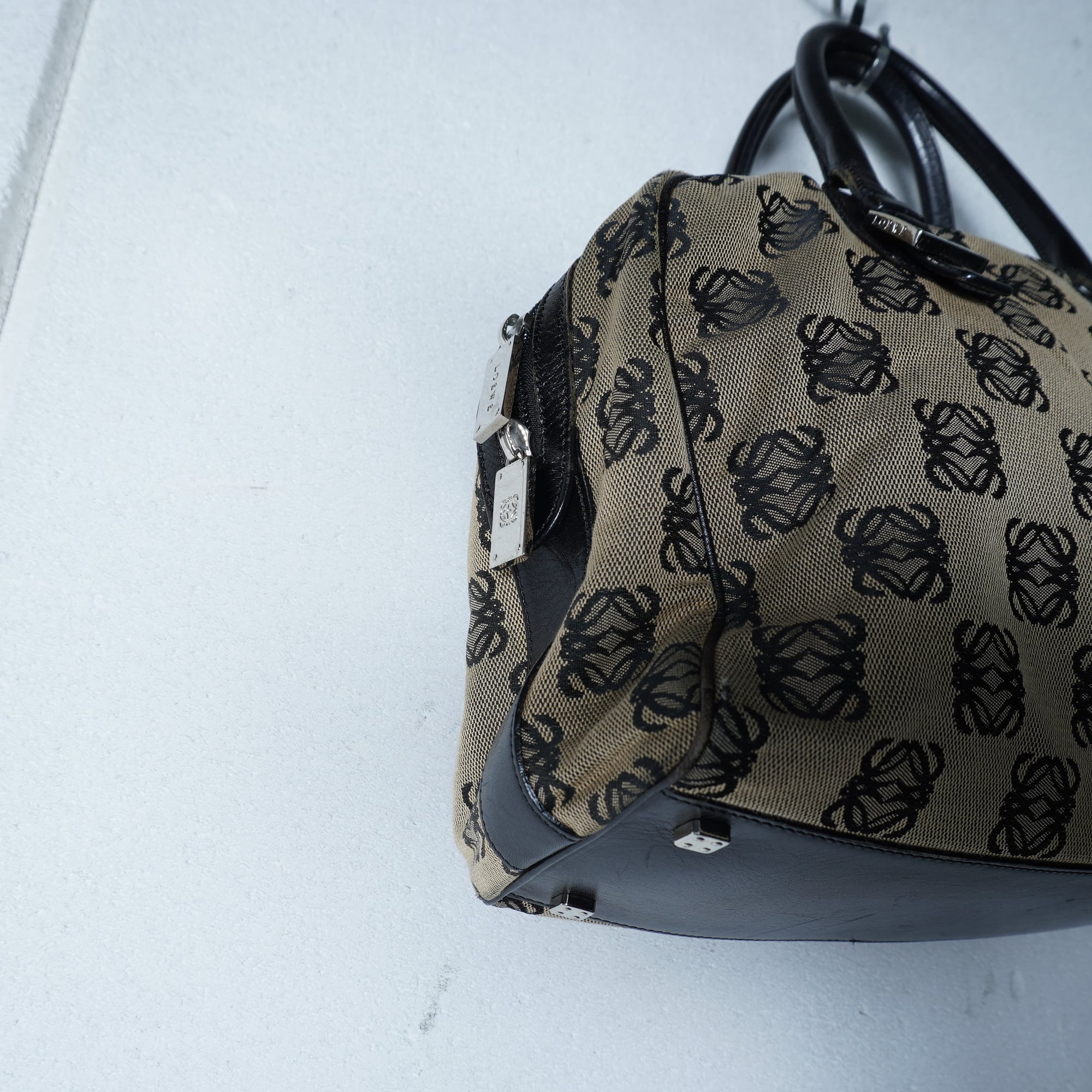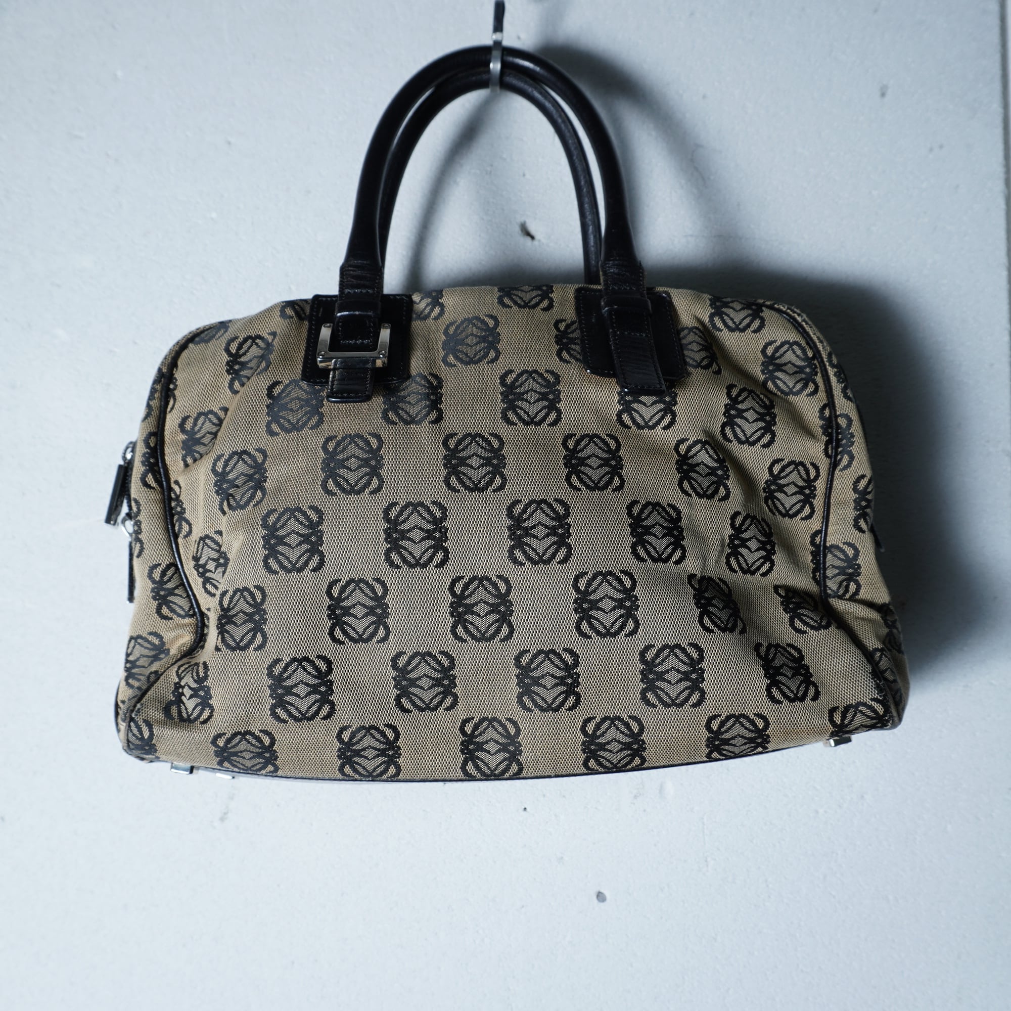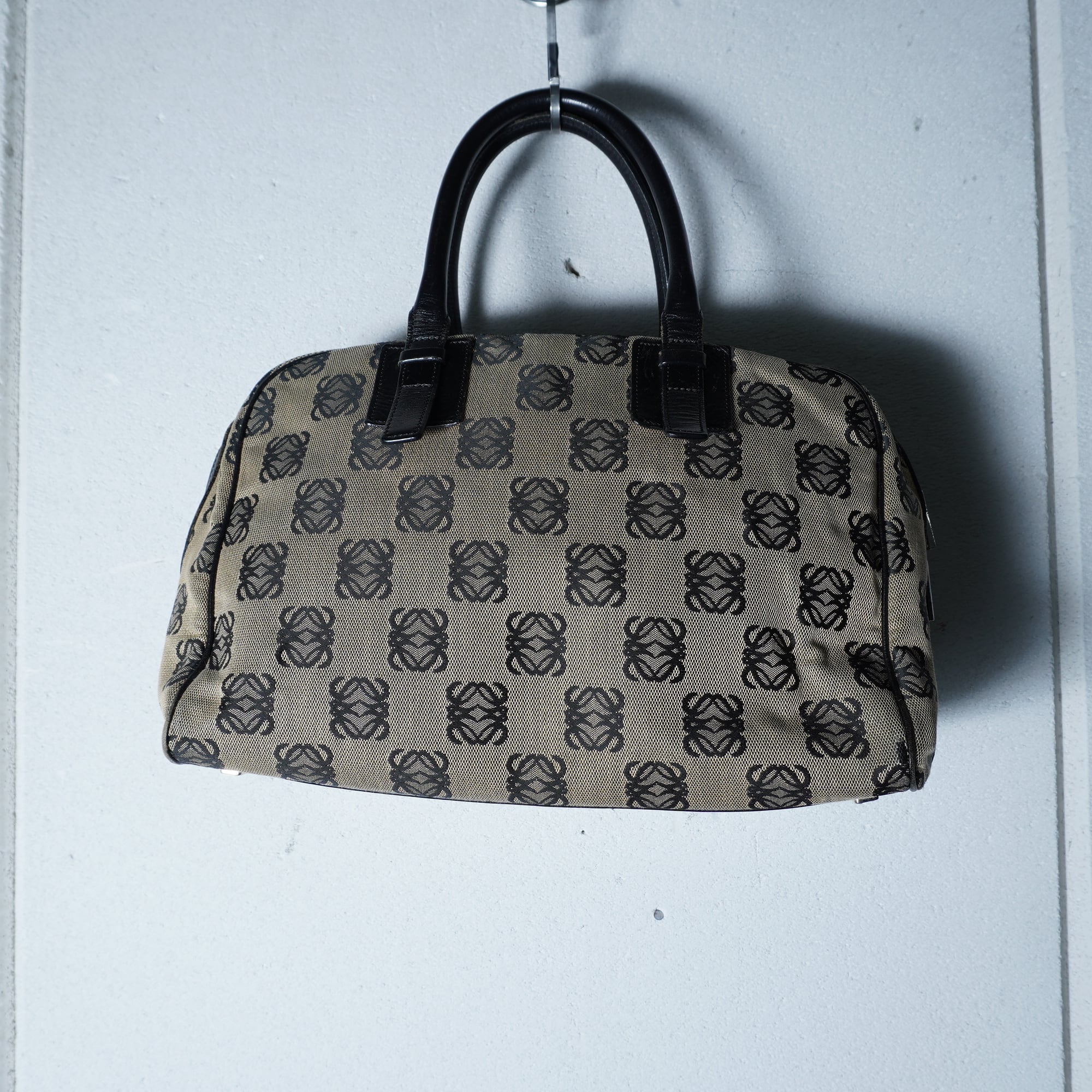【LOEWE】ロエベ アナグラムロゴ総柄レザー切替 キャンバスハンドバッグ beige&black