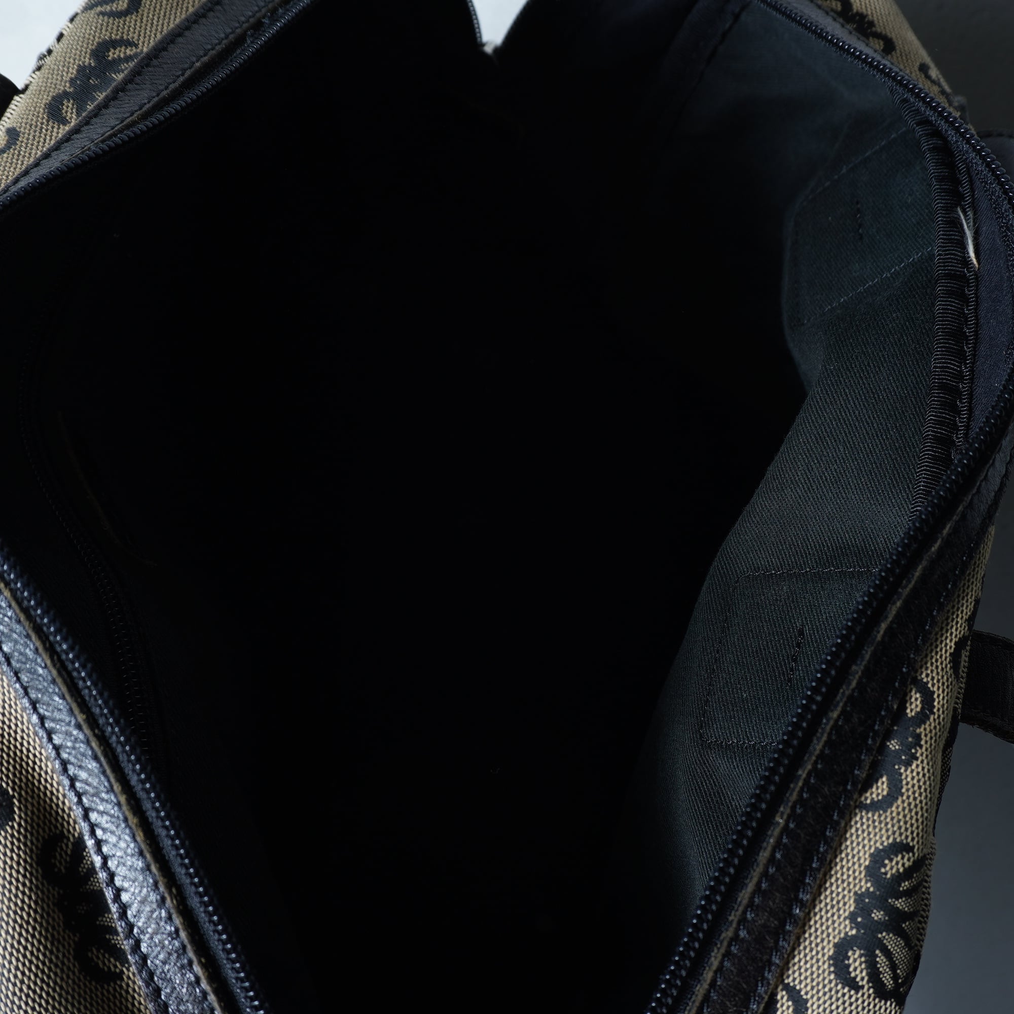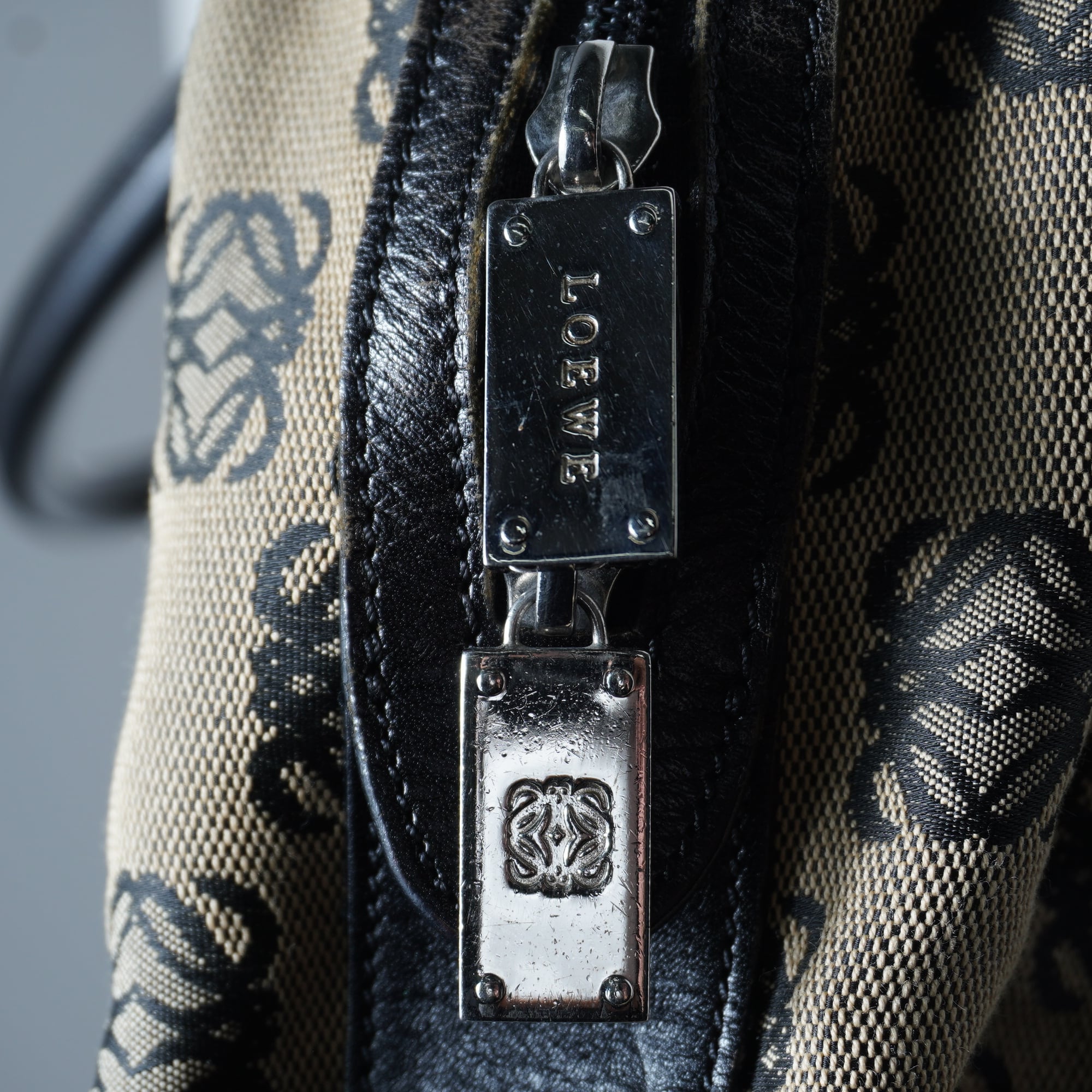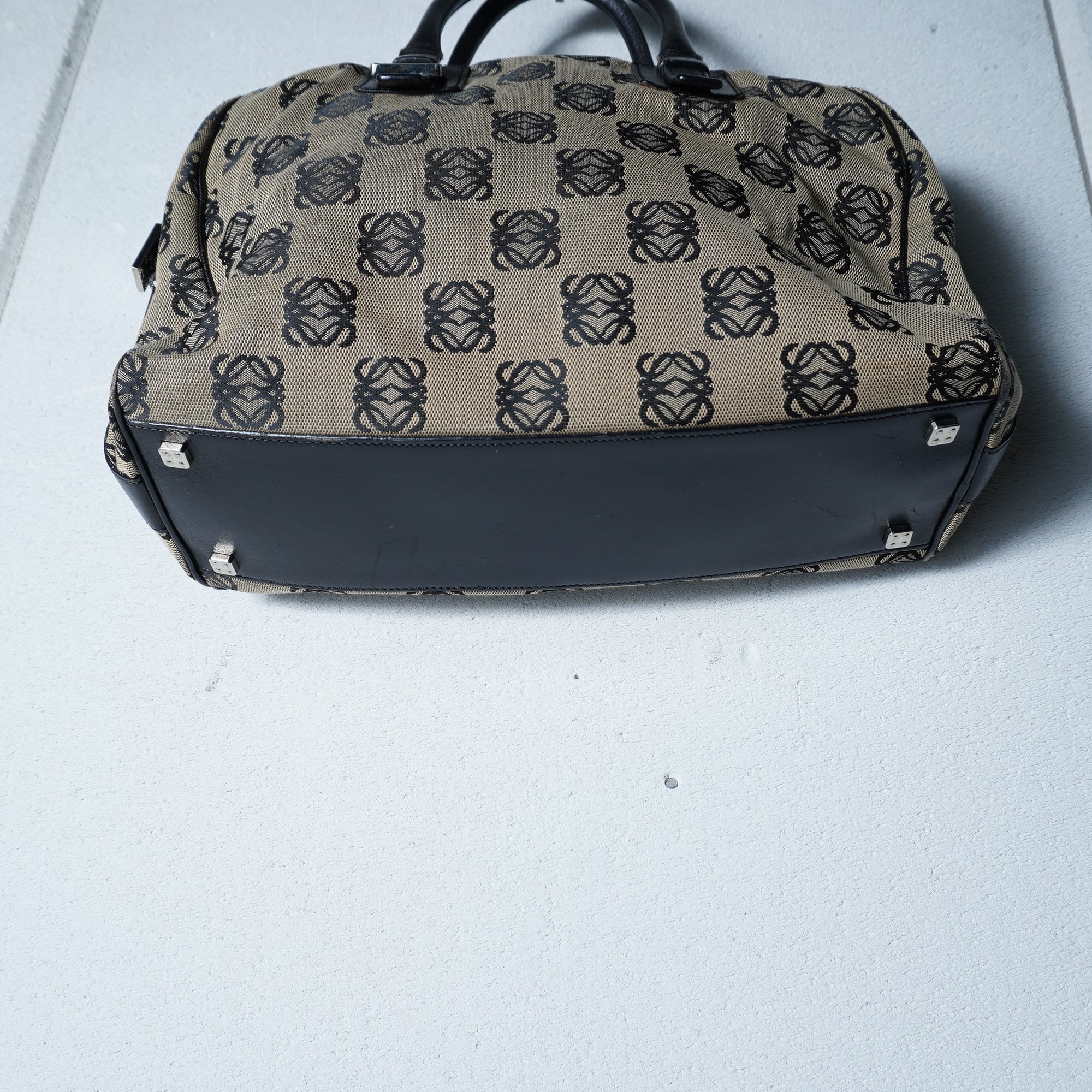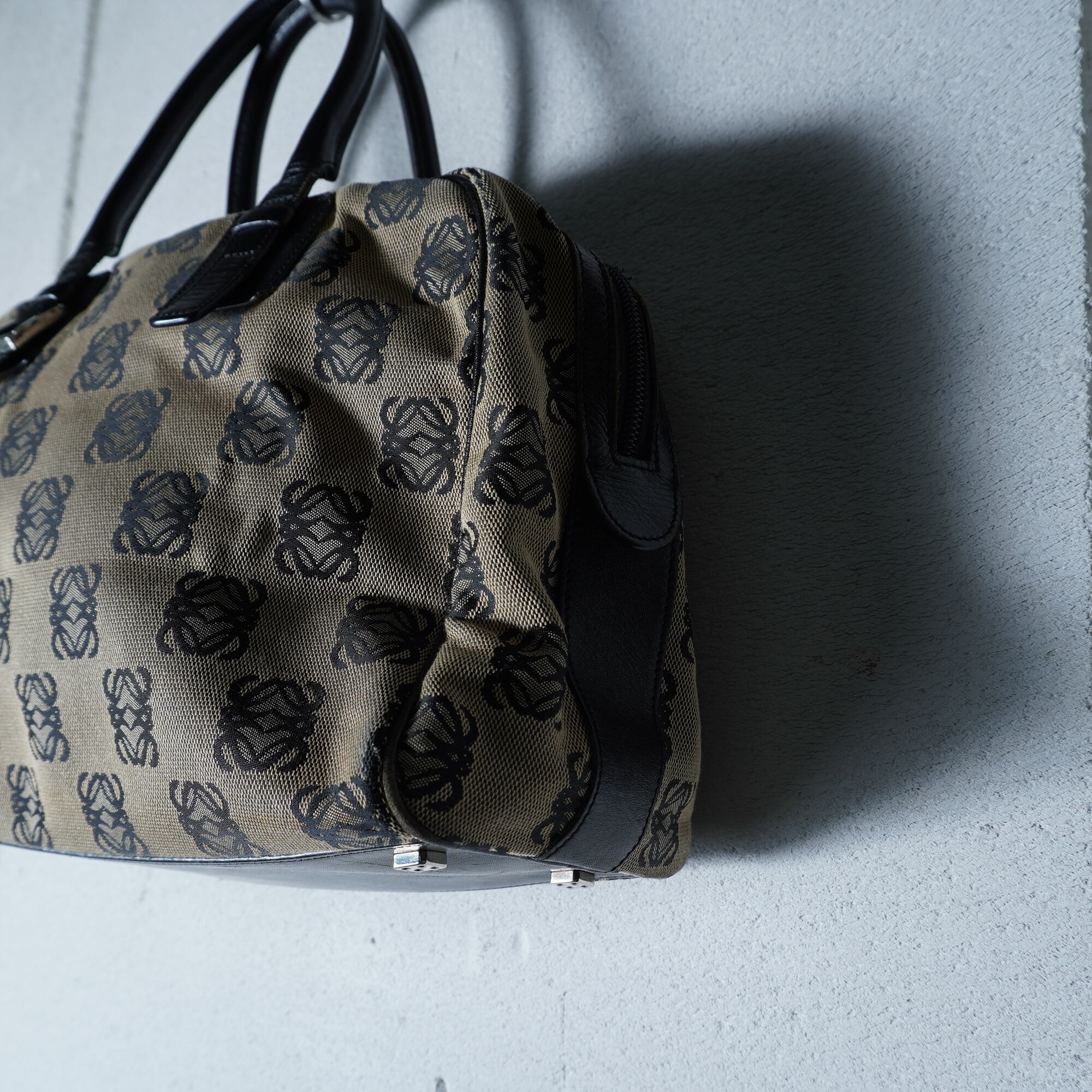 【LOEWE】ロエベ アナグラムロゴ総柄レザー切替 キャンバスハンドバッグ beige&black