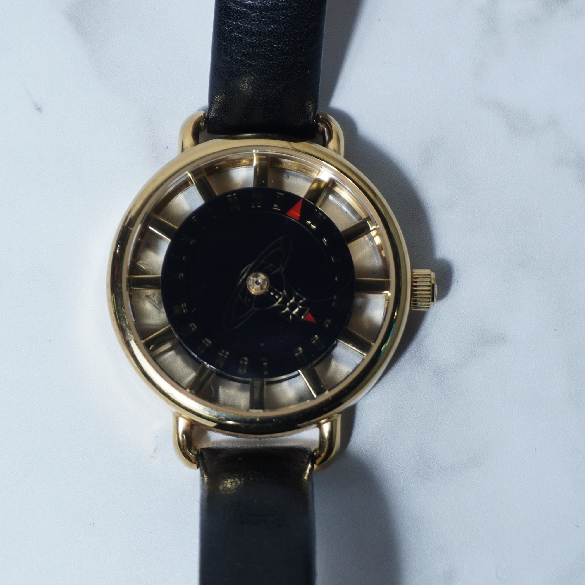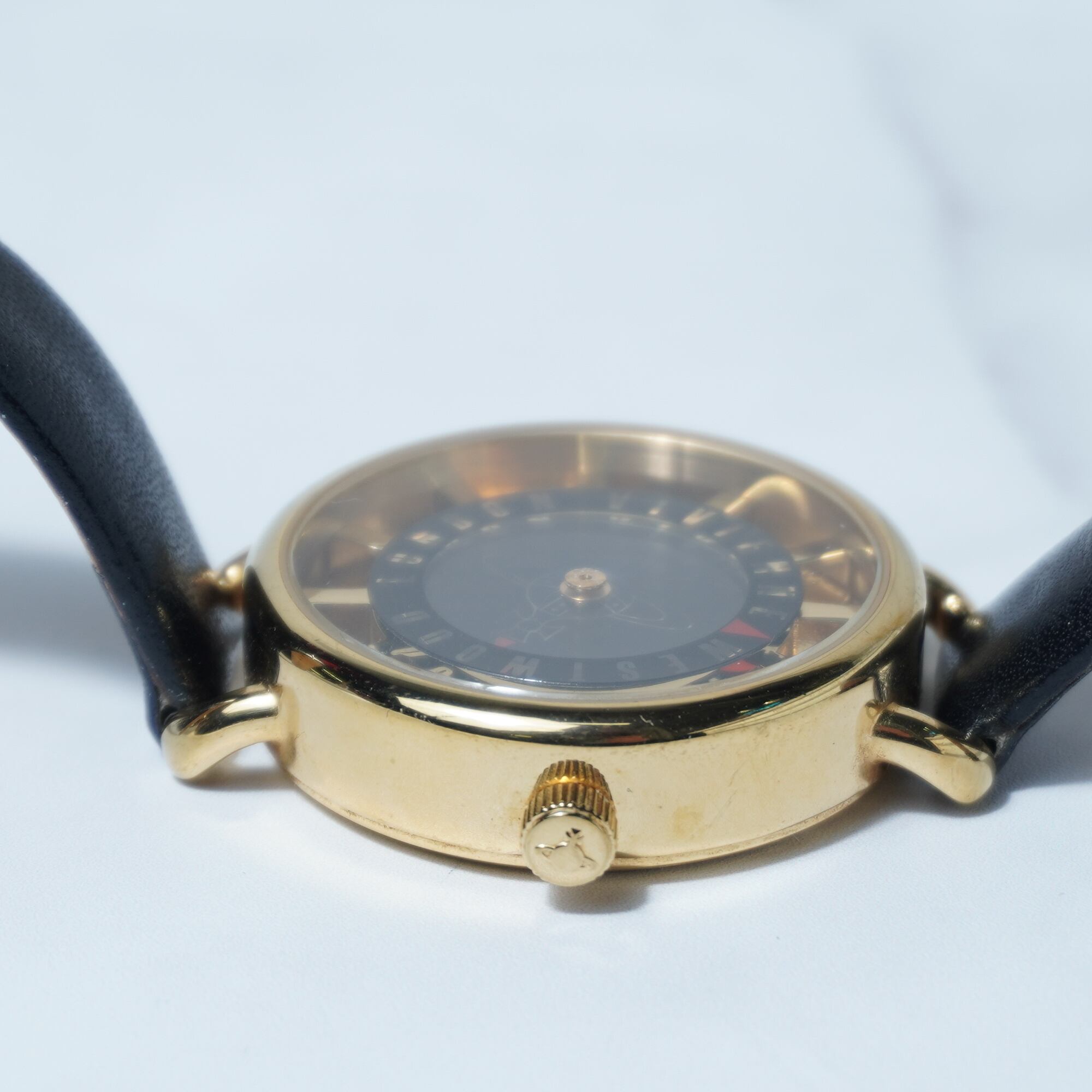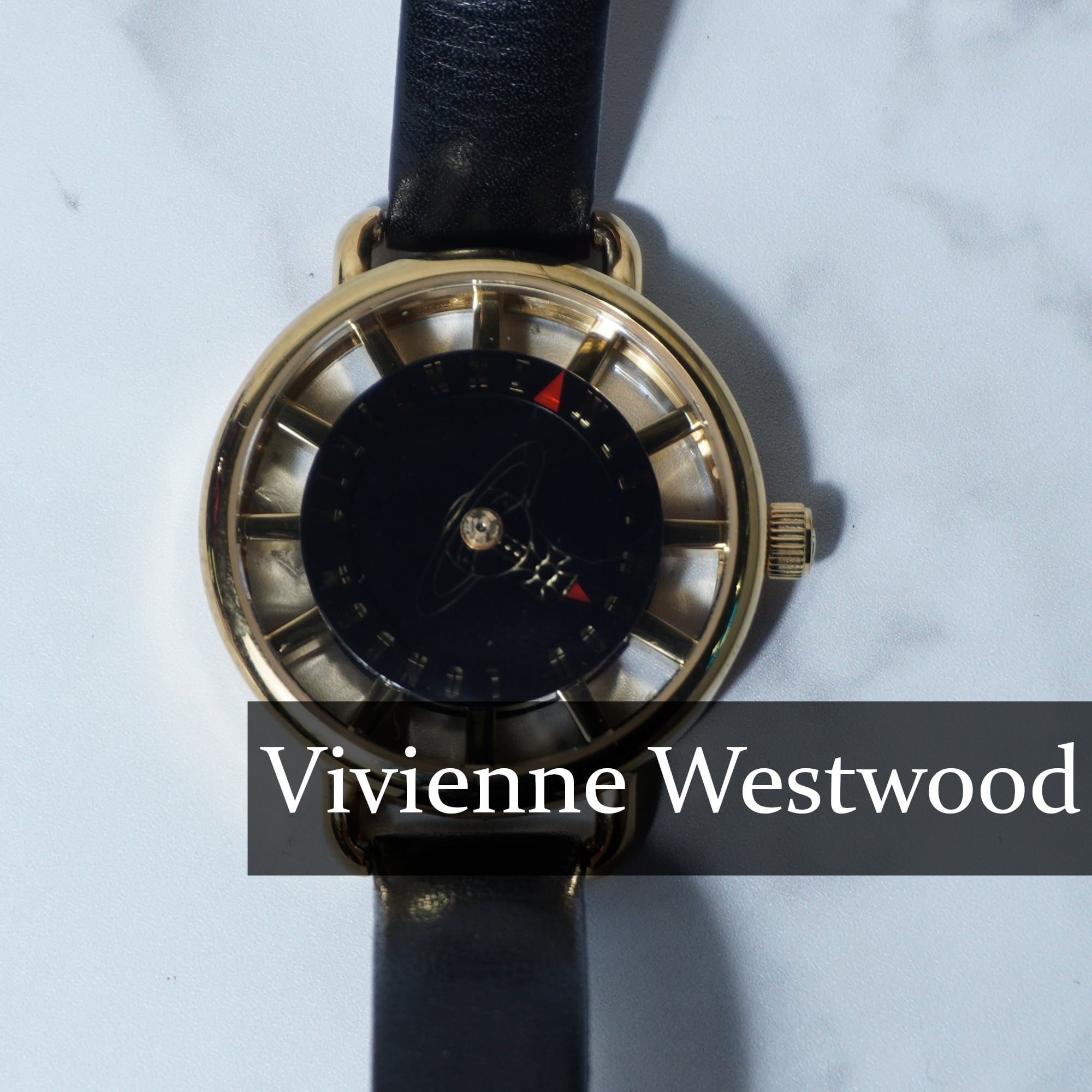 【Vivienne Westwood】ヴィヴィアンウエストウッド ”箱付・稼働品”オーブロゴ時針”ブラックフェイスクォーツウォッチ gold & black
