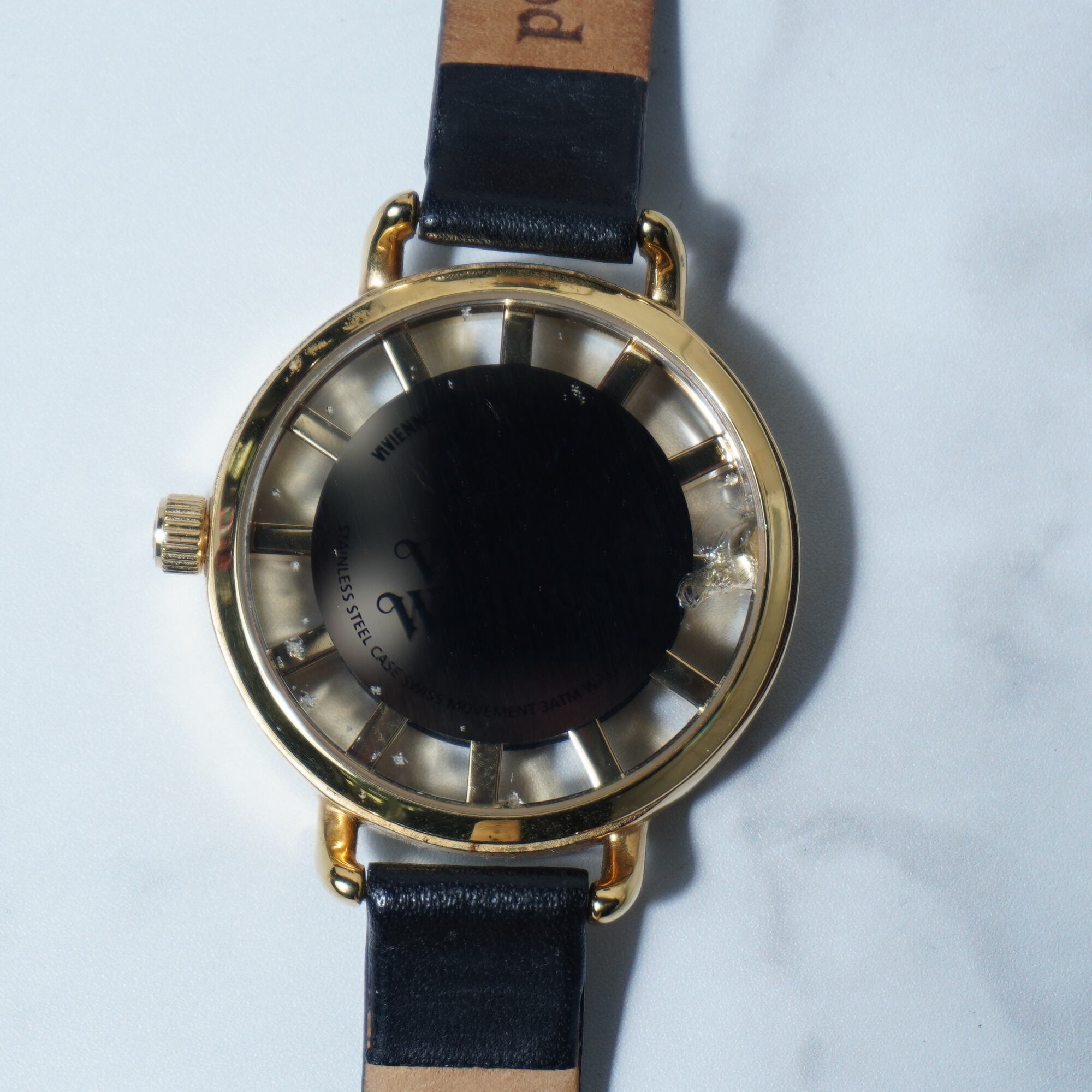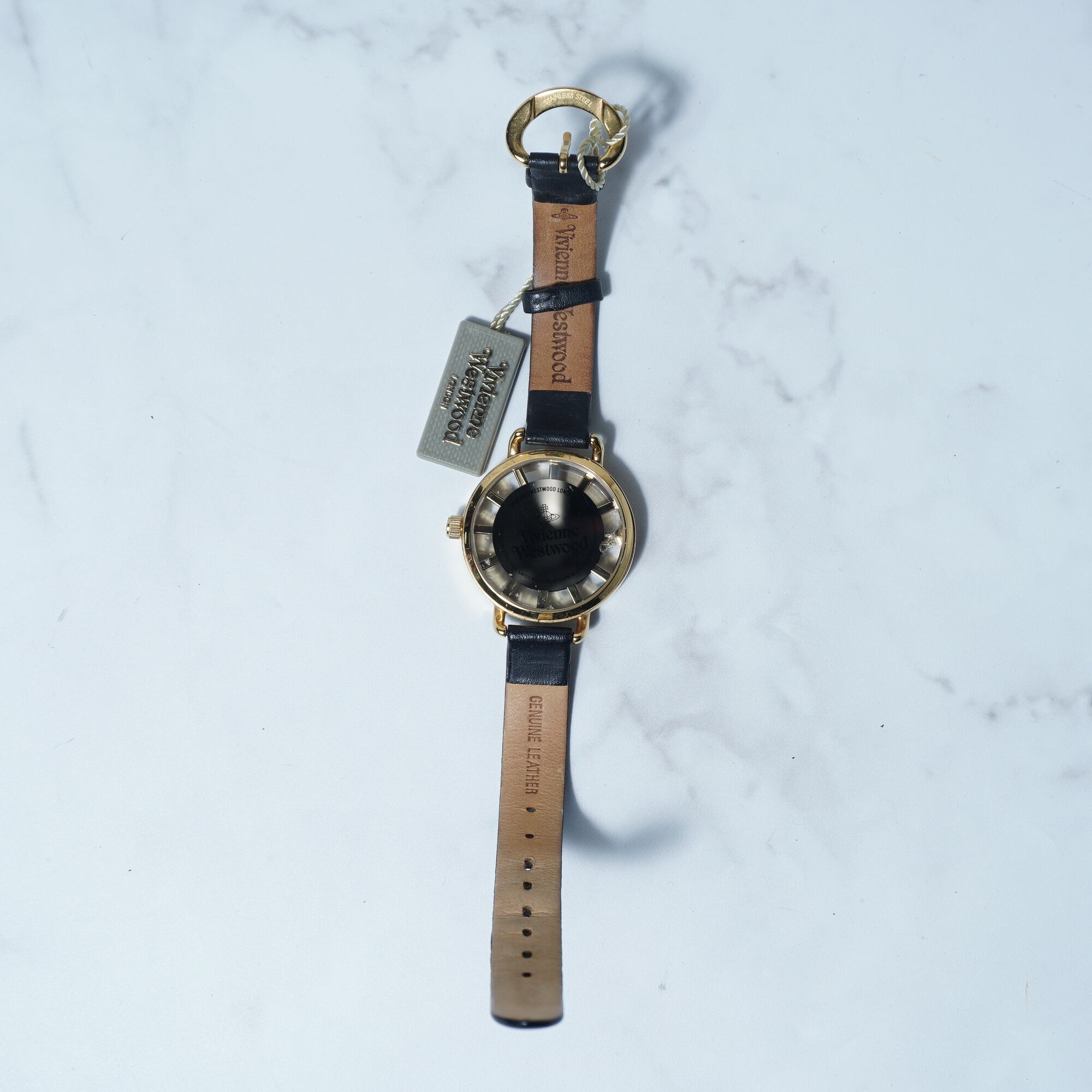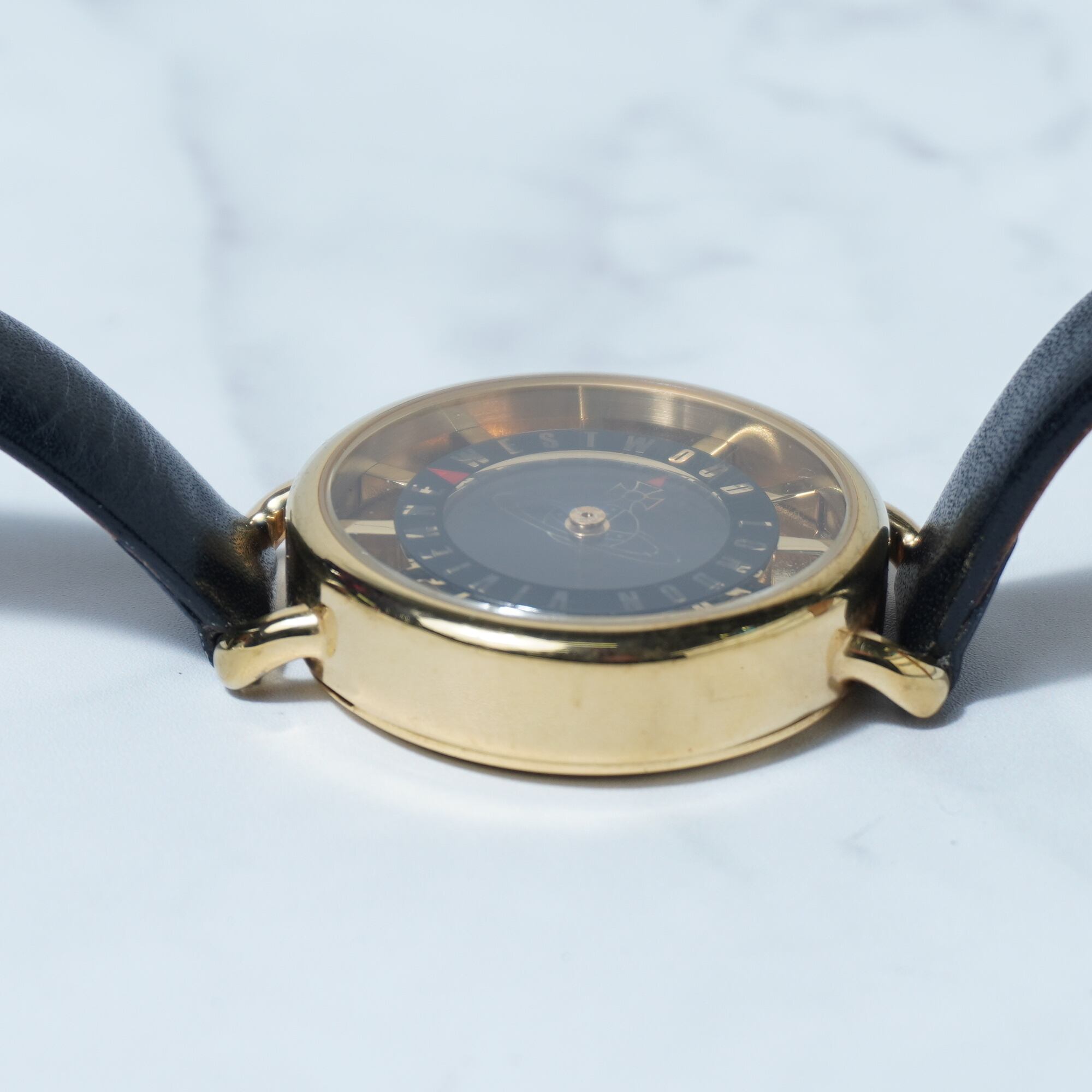 【Vivienne Westwood】ヴィヴィアンウエストウッド ”箱付・稼働品”オーブロゴ時針”ブラックフェイスクォーツウォッチ gold & black
