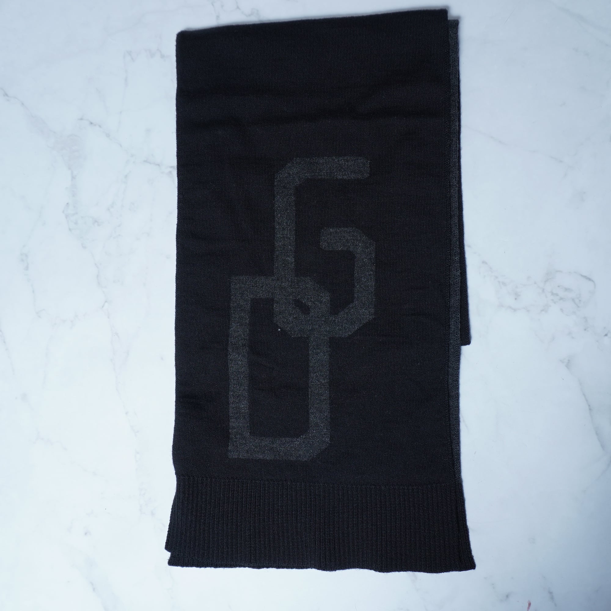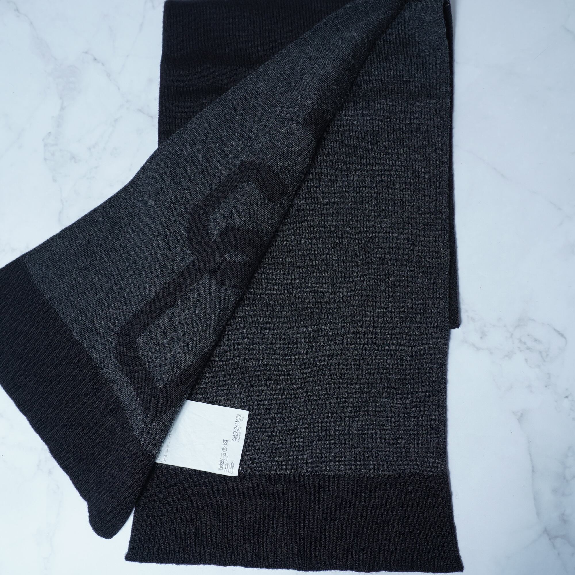 【DOLCE & GABBANA】ドルチェ&ガッバーナ ”ARCHIVE"ロゴ入WOOL100%マフラー black & gray