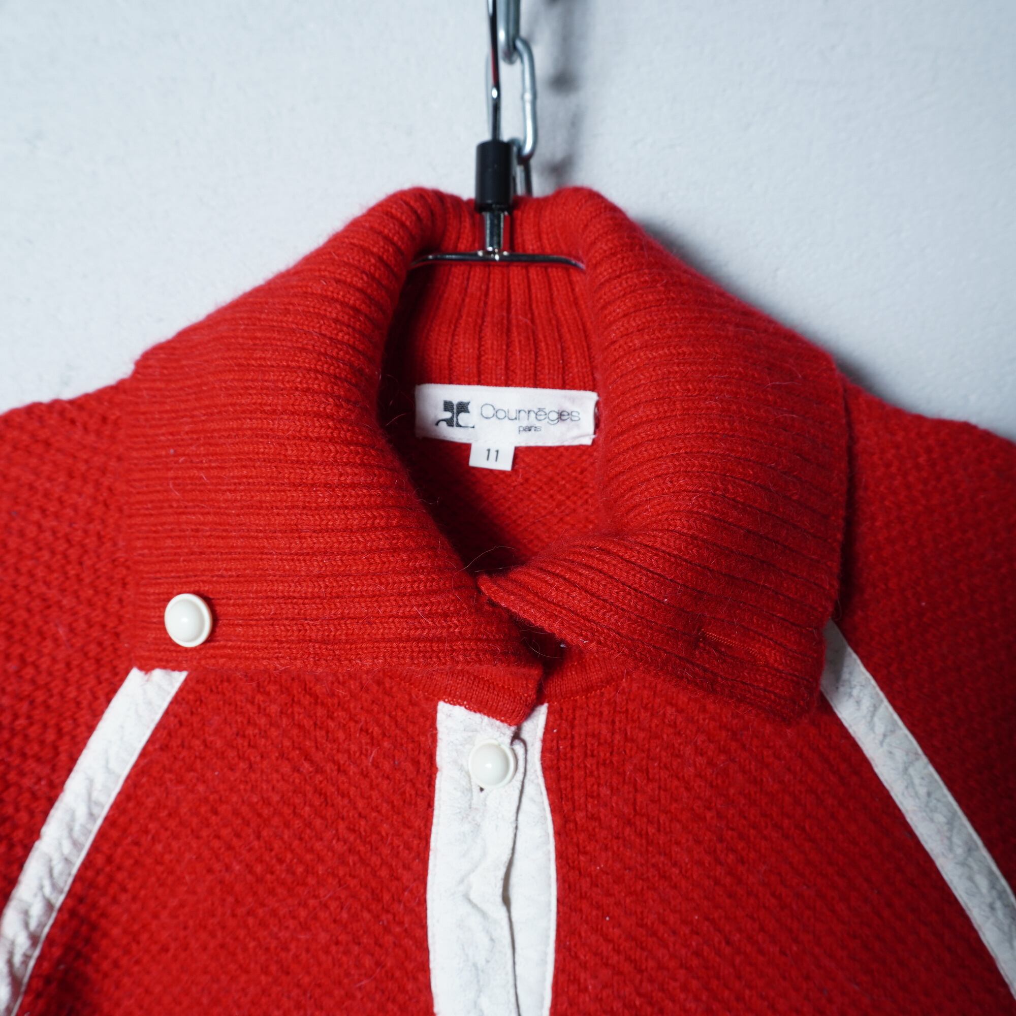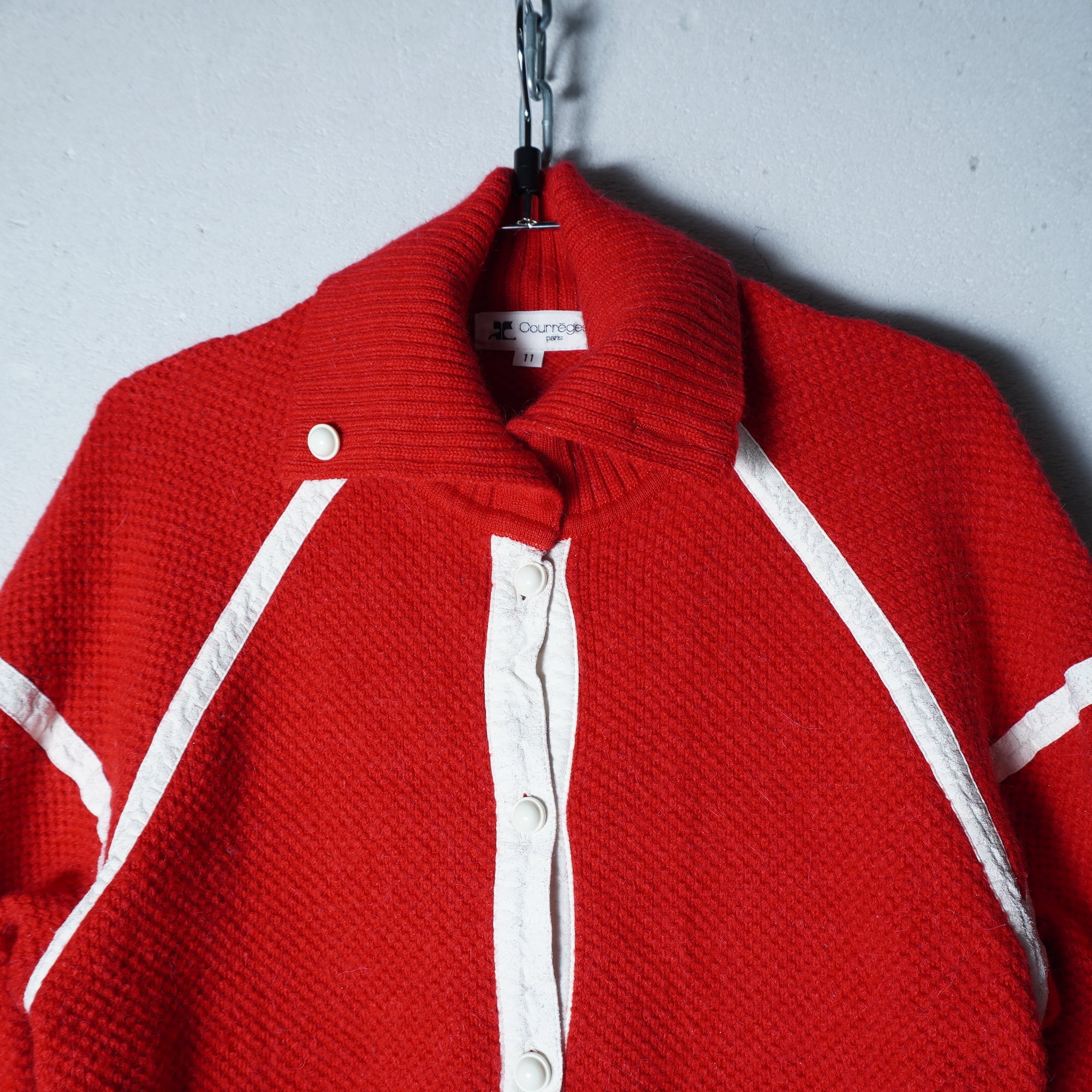 【Courreges】クレージュ ”WOOL100%”Y2Kホワイトラインニット red & white