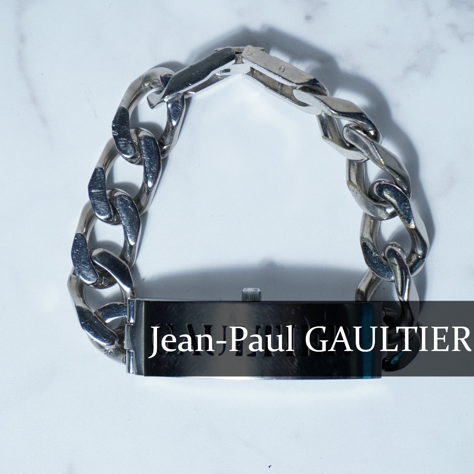 【Jean Paul GAULTIER】ジャンポールゴルチエ ロゴプレートチェーンブレスレット silver