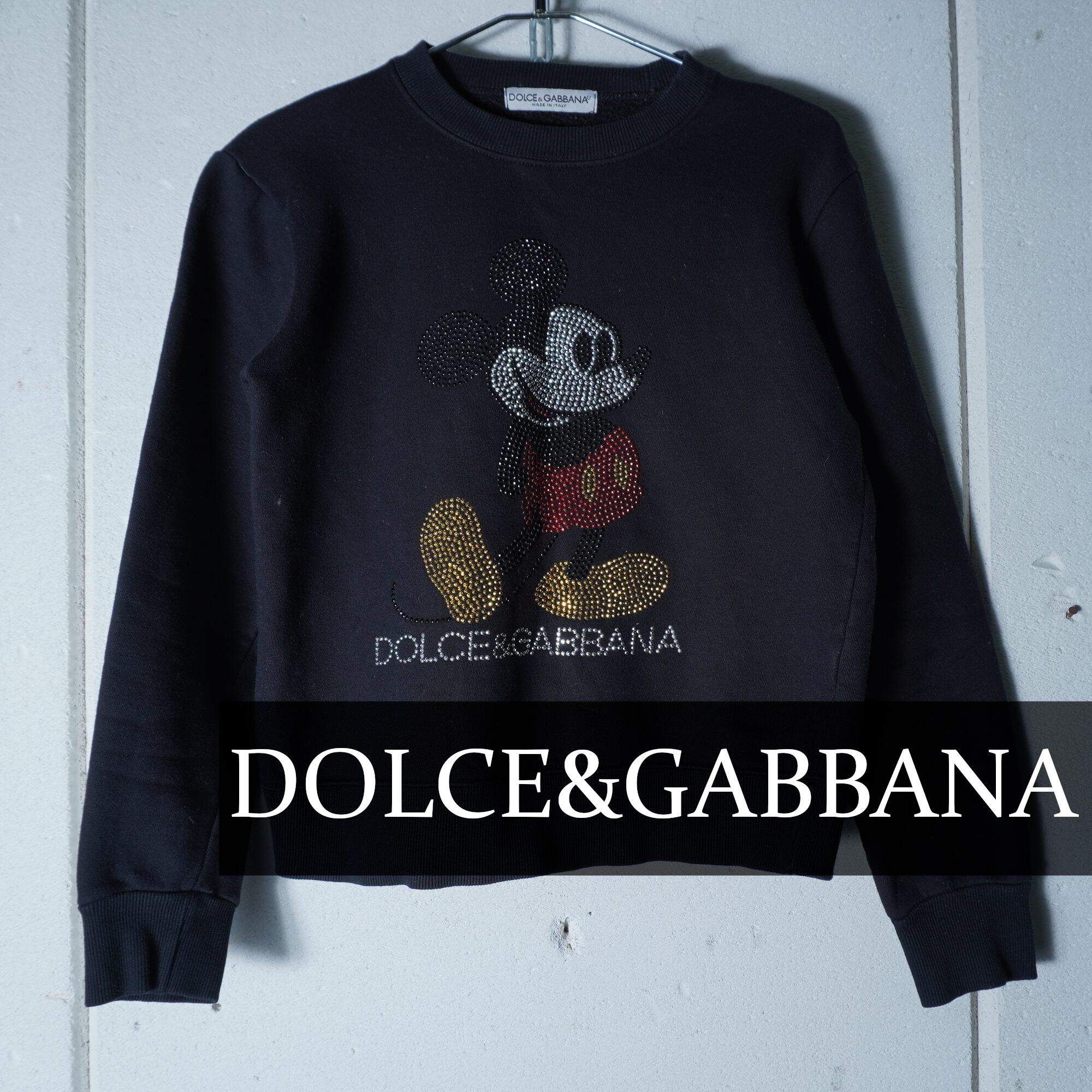 【DOLCE&GABBANA】ドルチェ&ガッバーナ "ARCHIVE" ロゴ・ミッキーマウス ラインストーンスウェット black