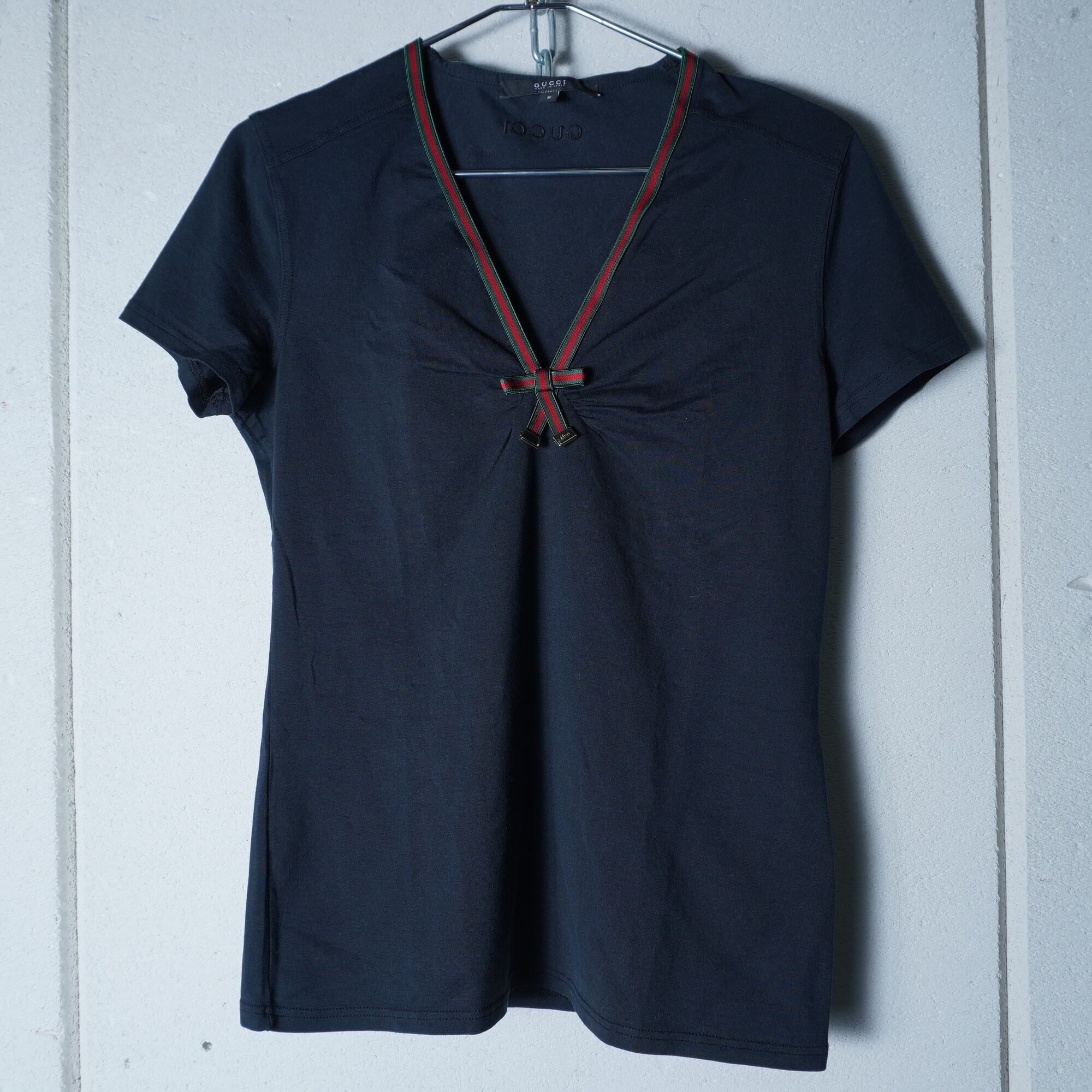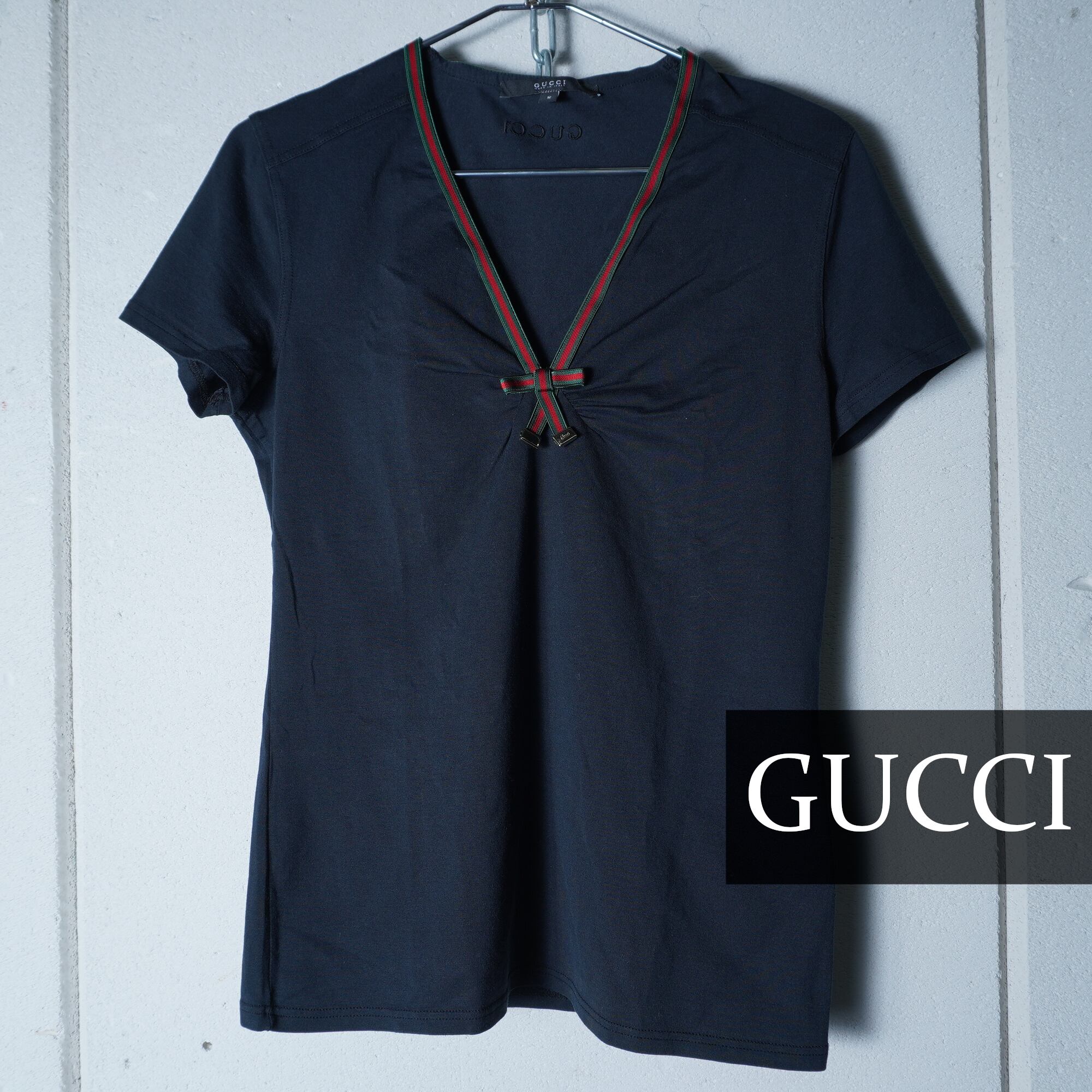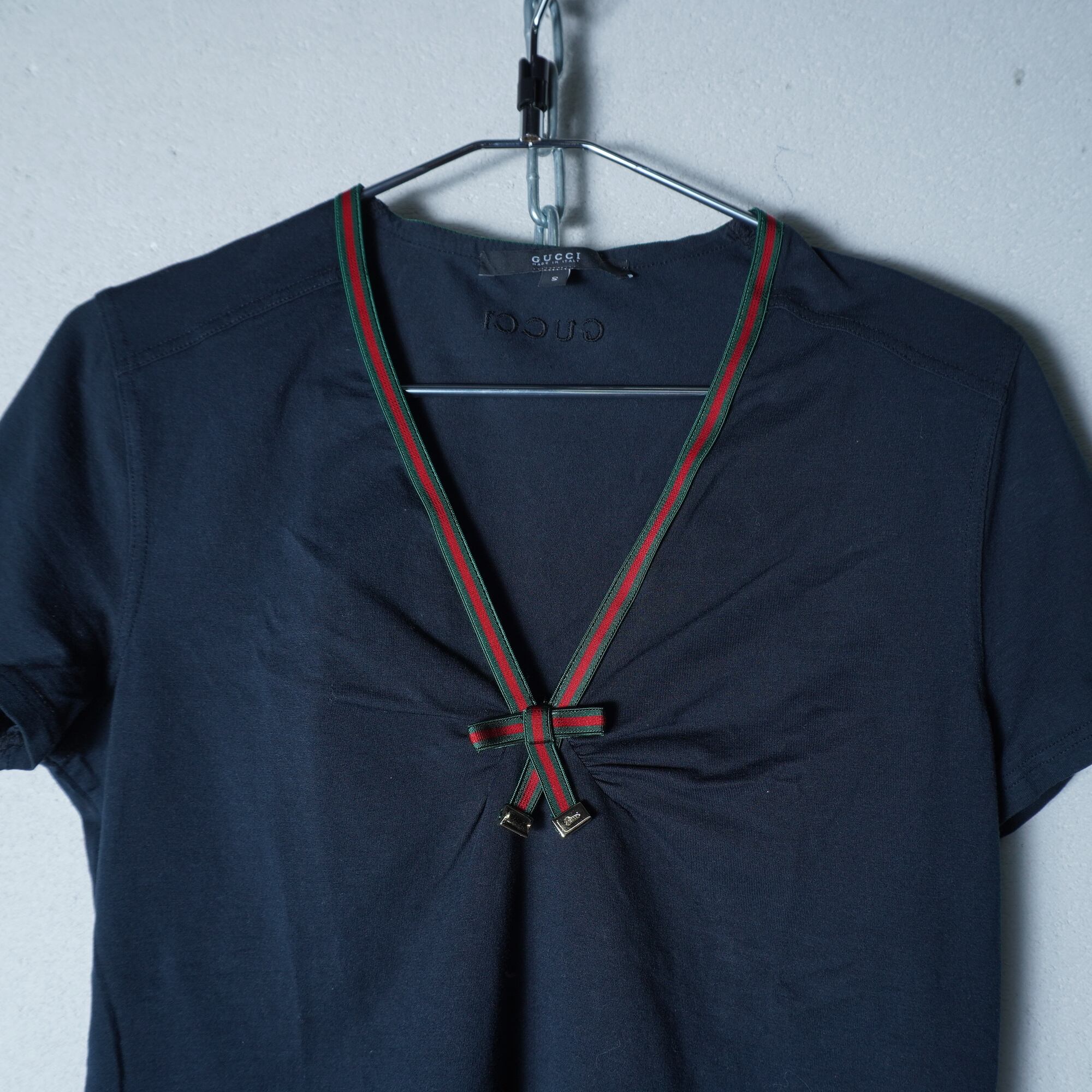 【GUCCI】グッチ シェリーラインネックリボンショートスリーブカットソー black