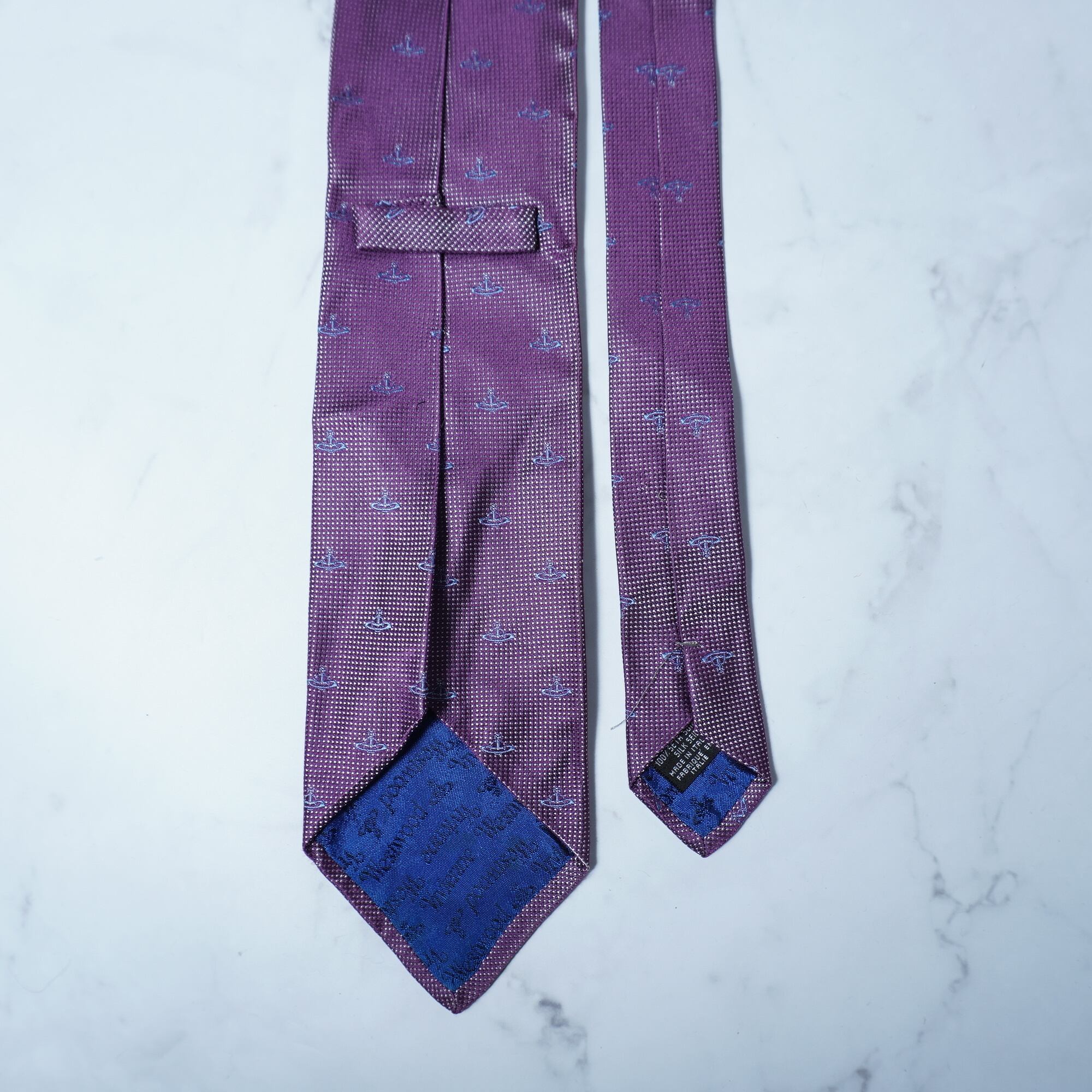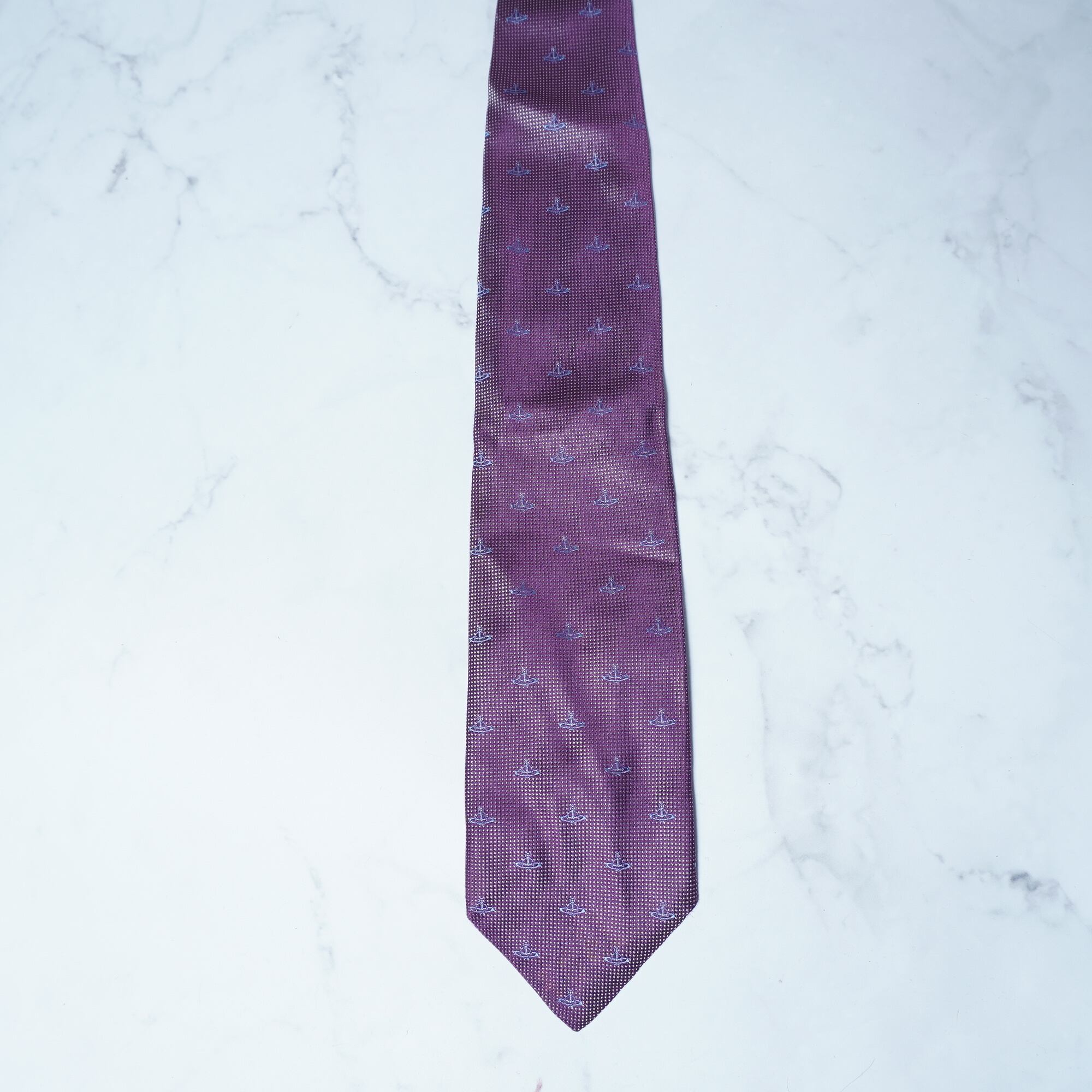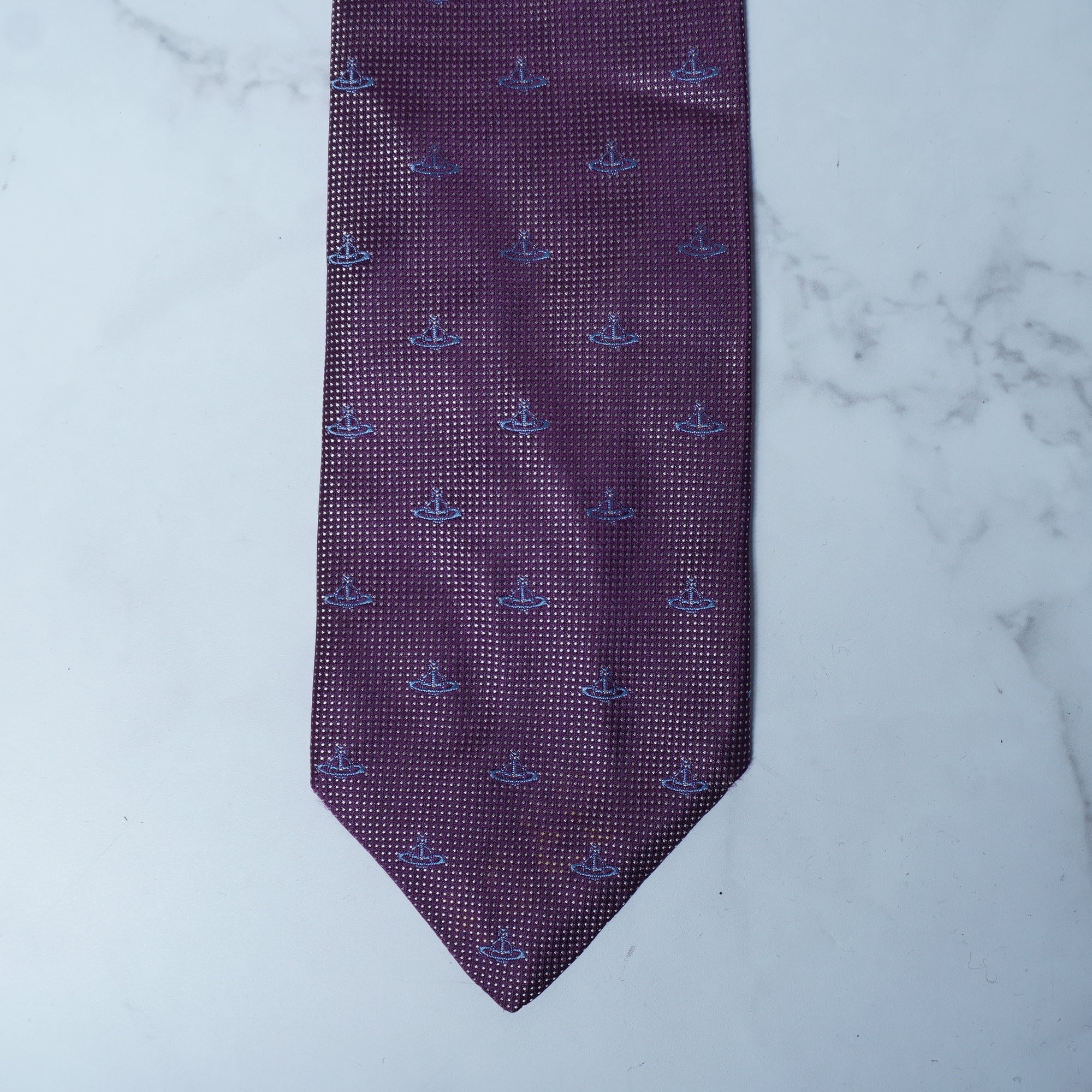 【Vivienne Westwood】ヴィヴィアンウエストウッド ”オーブロゴ総柄” SILK100%”ネクタイ purple&blue