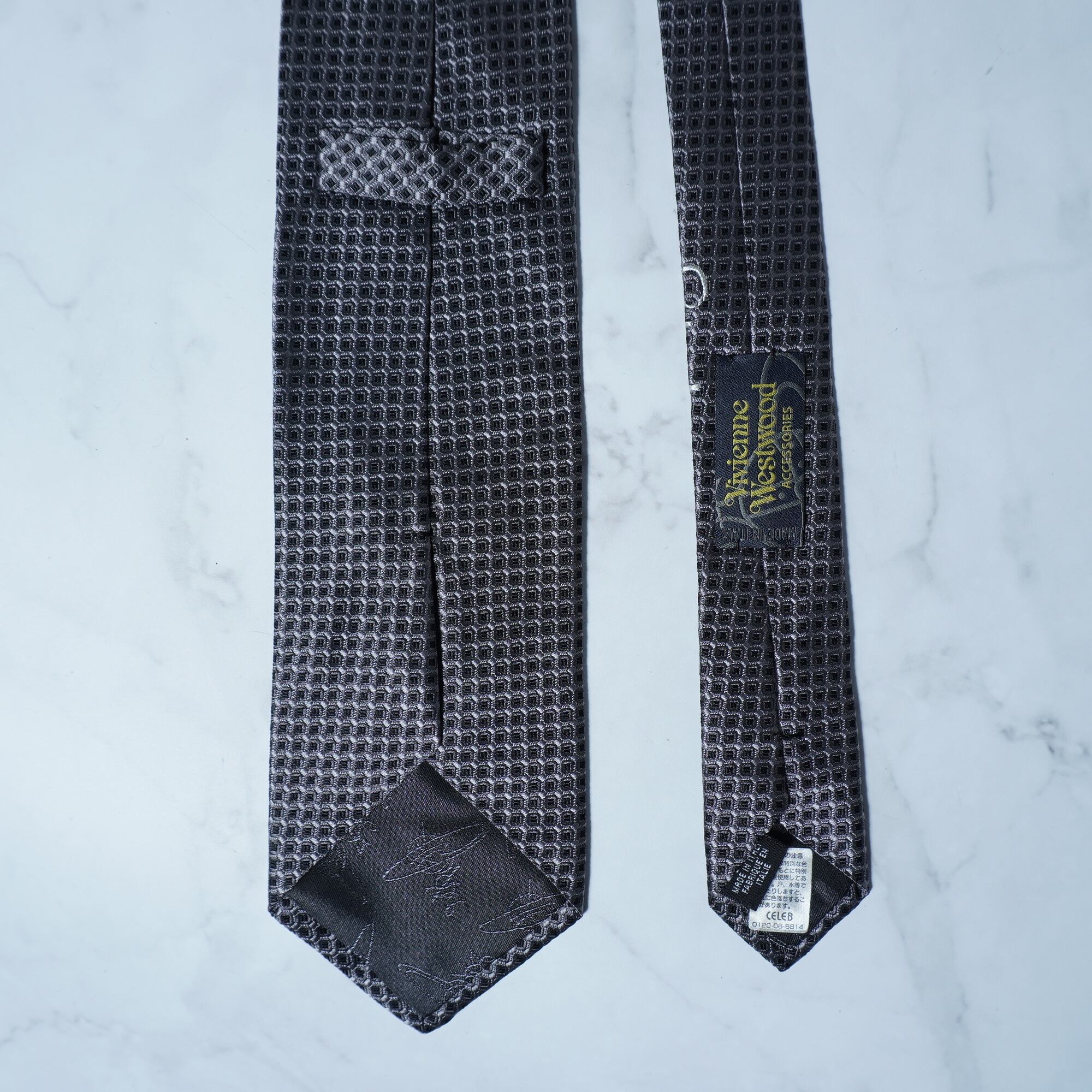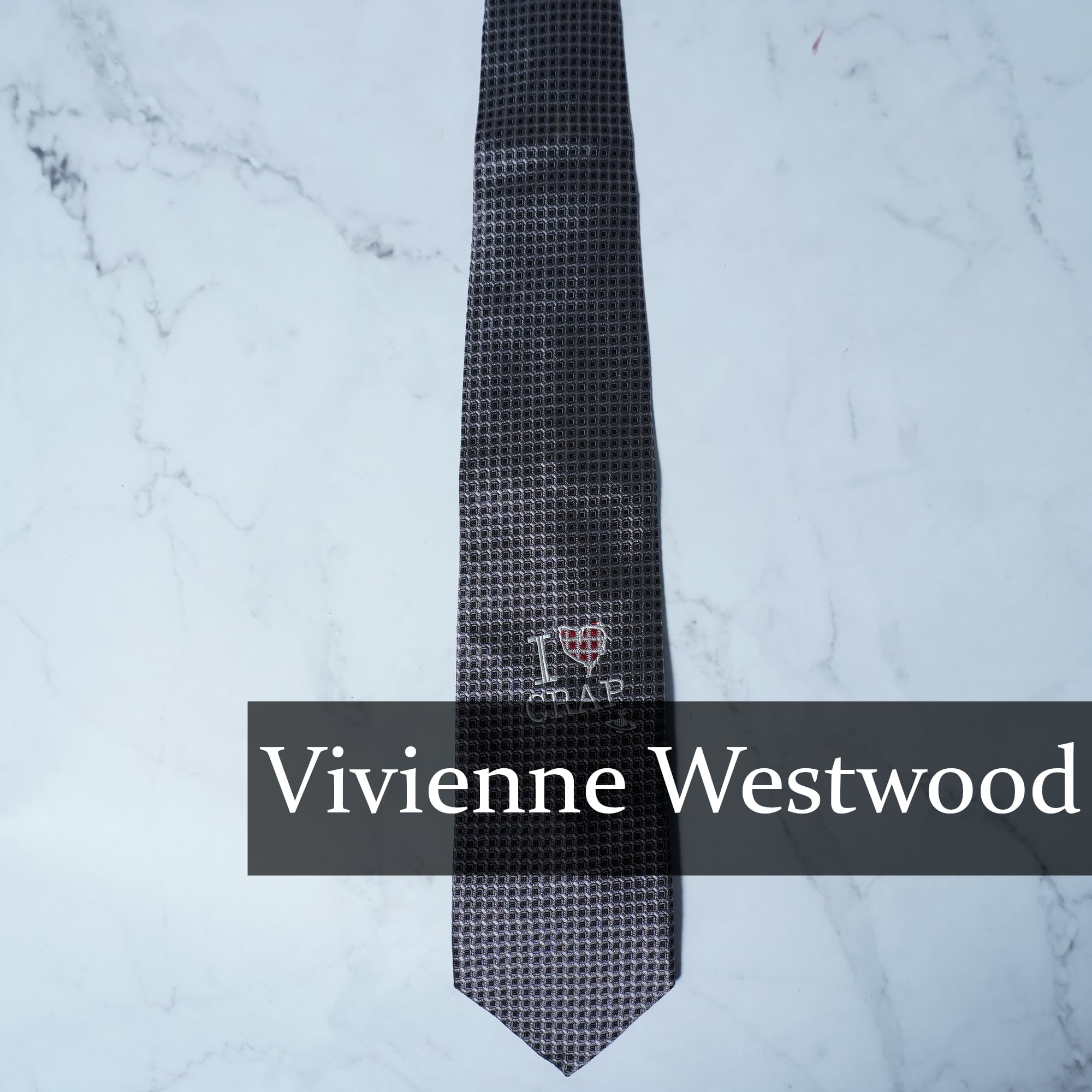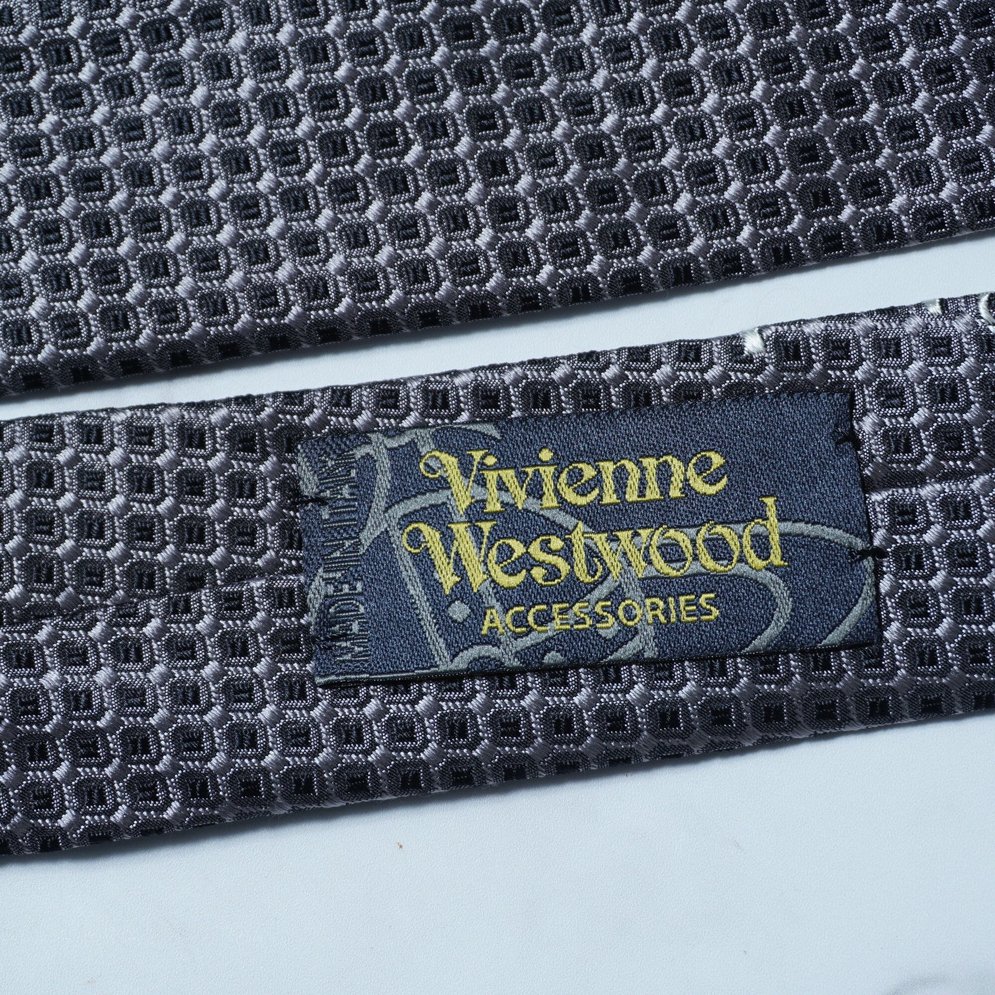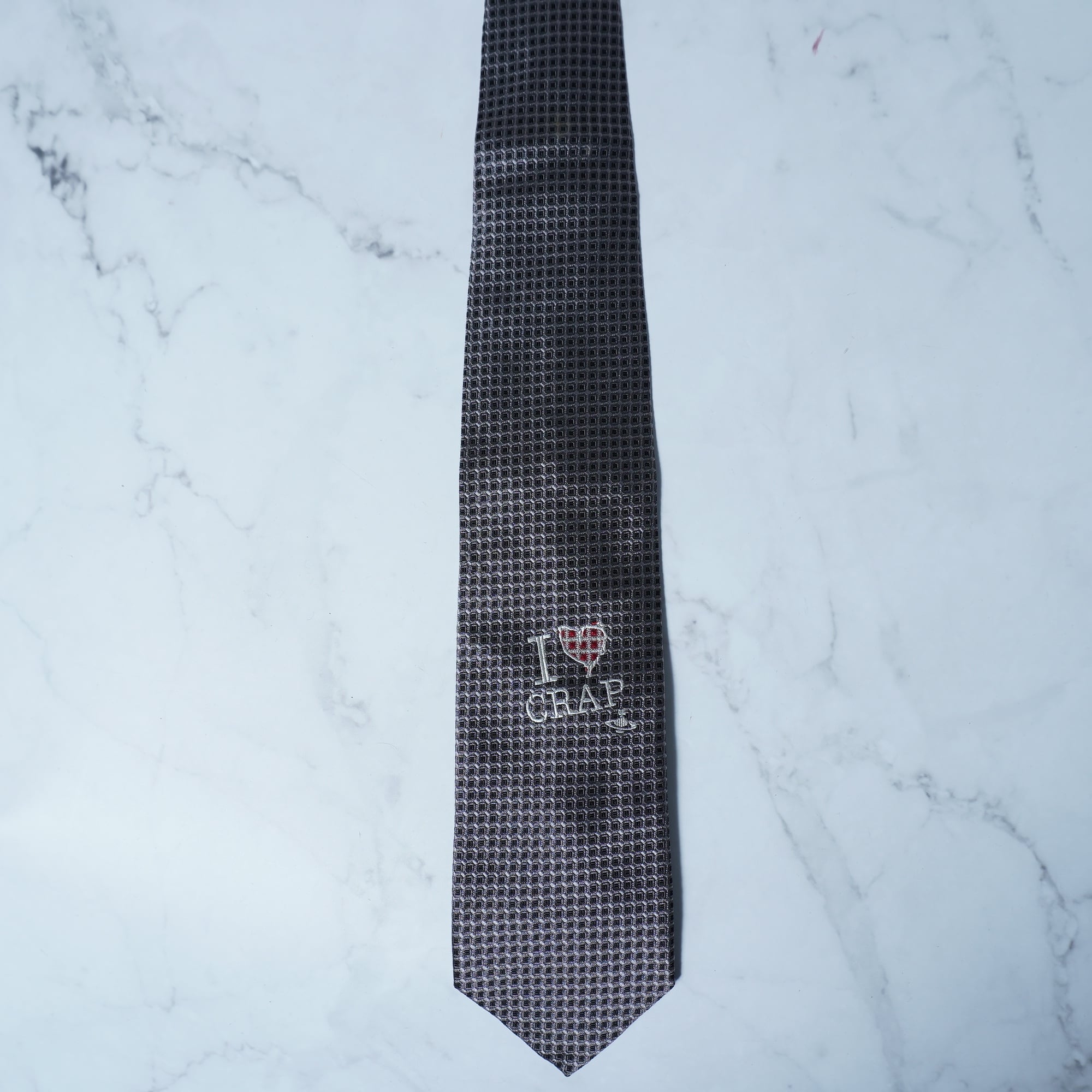【Vivienne Westwood】ヴィヴィアンウエストウッド ”オーブロゴ” I LOVE CRAP SILK100%ネクタイ black&gray