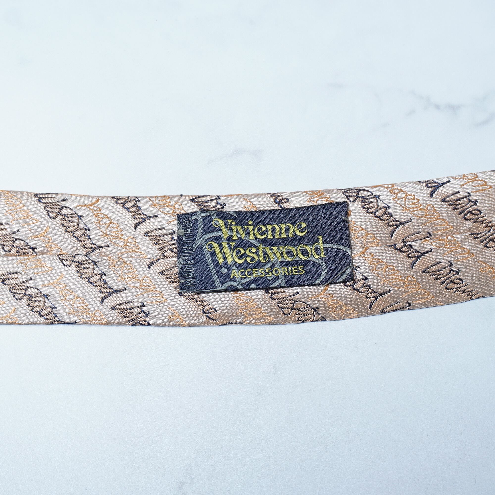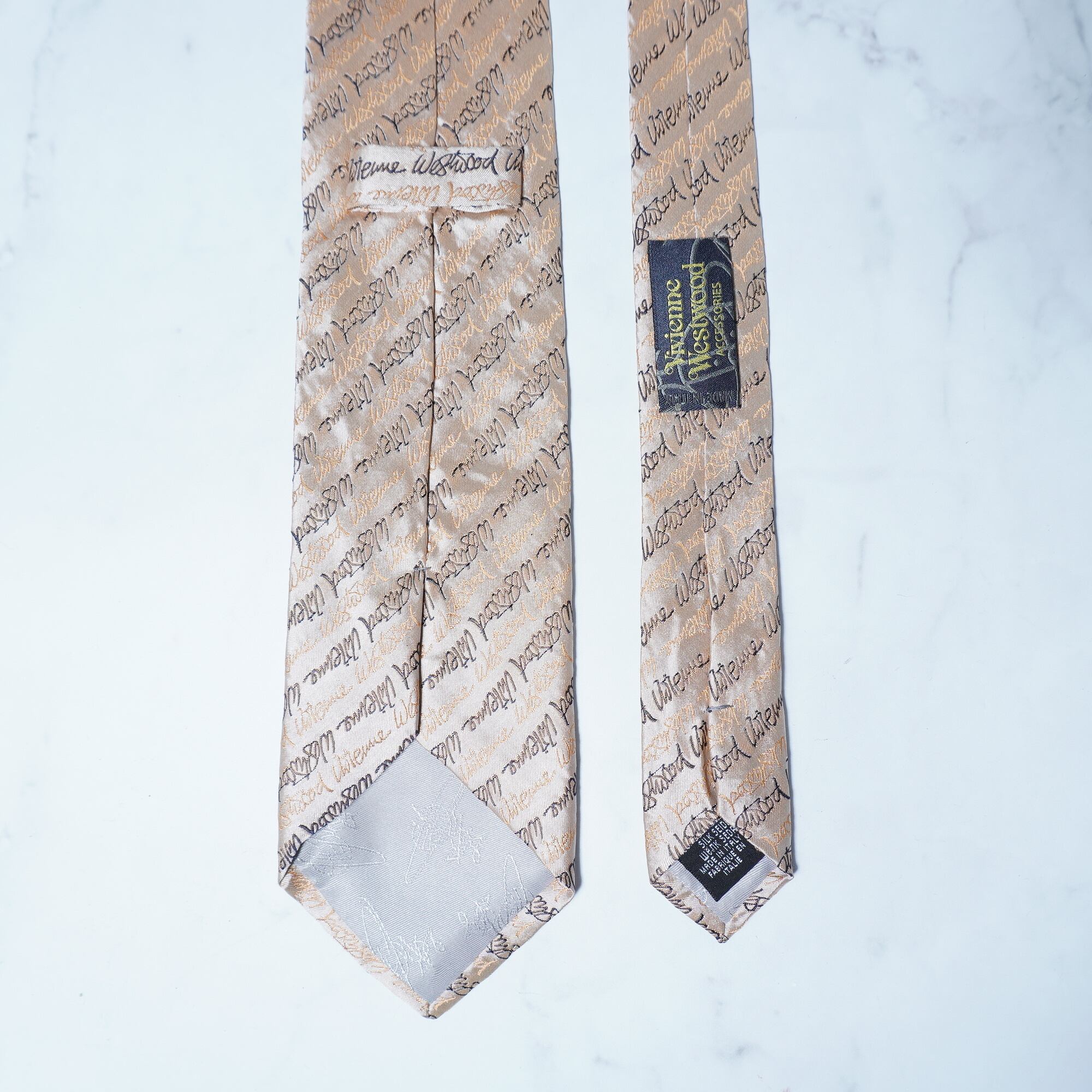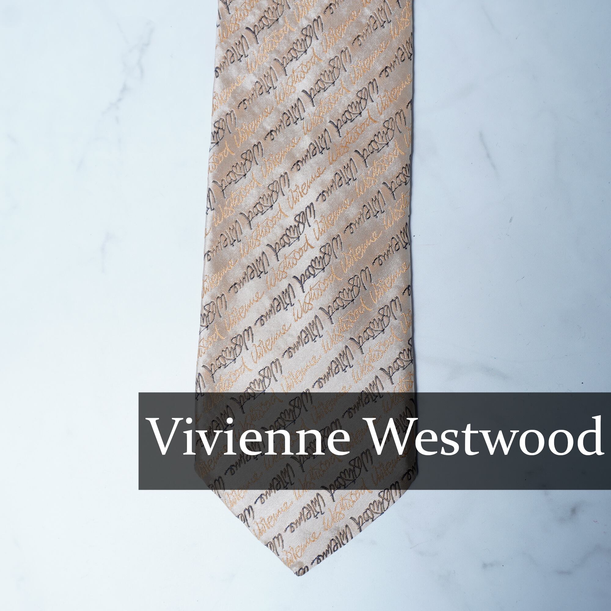 【Vivienne Westwood】ヴィヴィアンウエストウッド ”SILK100%” レジメンタル総柄ネクタイ beige