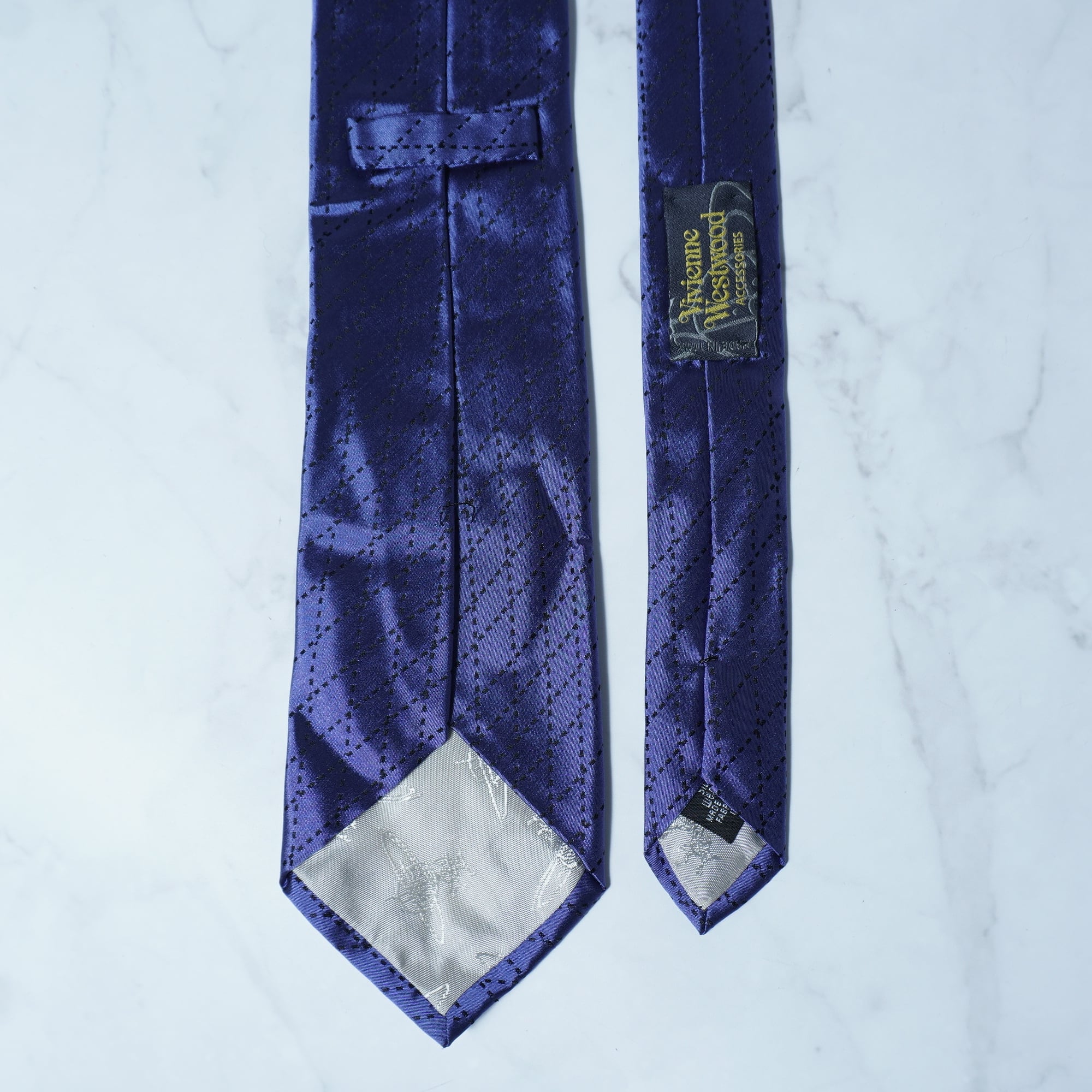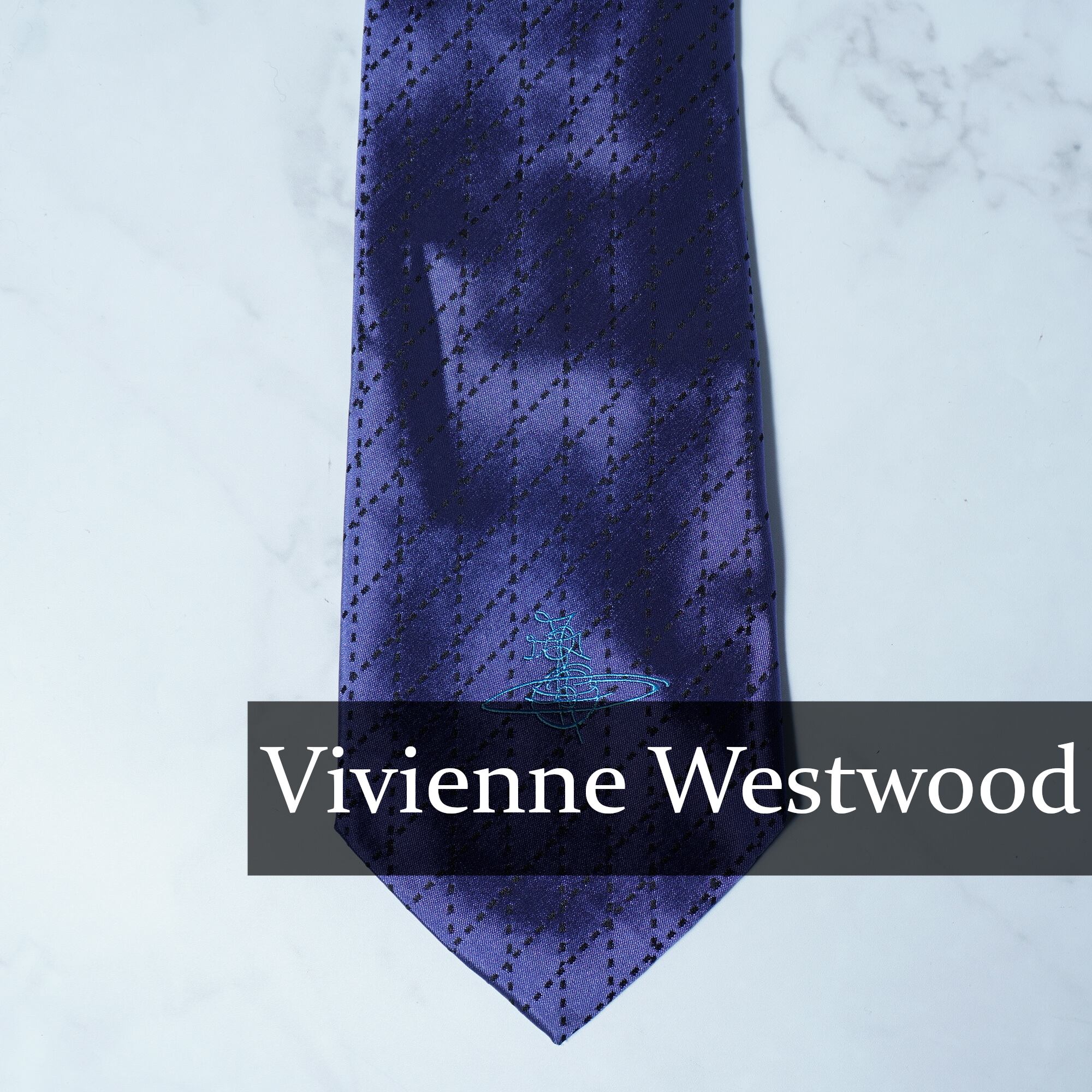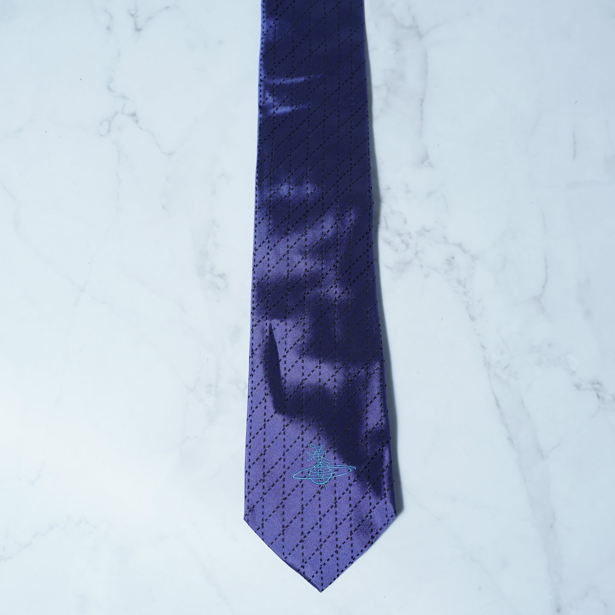 【Vivienne Westwood】ヴィヴィアンウエストウッド ”オーブロゴ刺繍” SILK100%ネクタイ purple&black