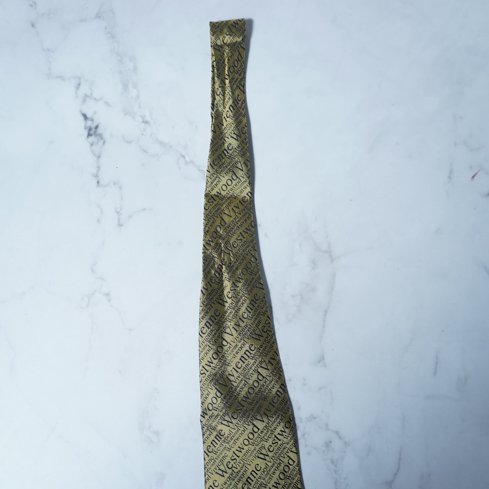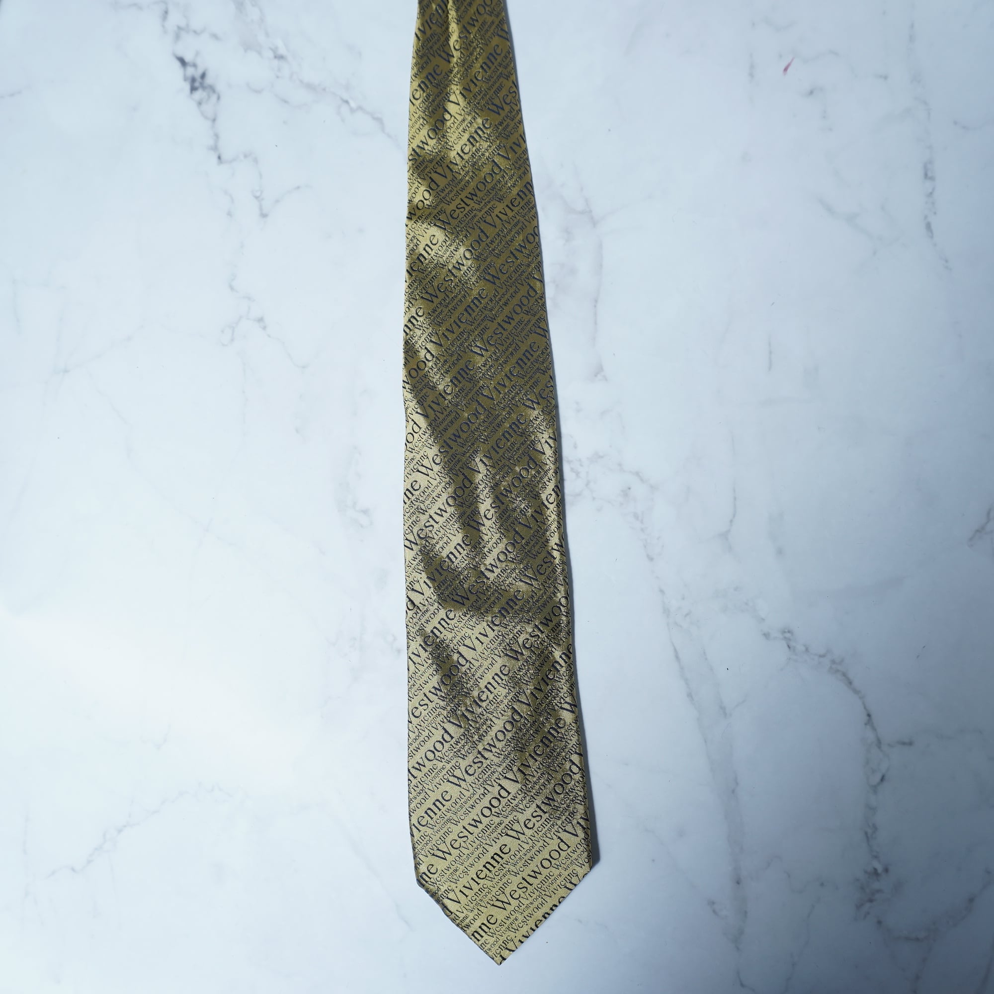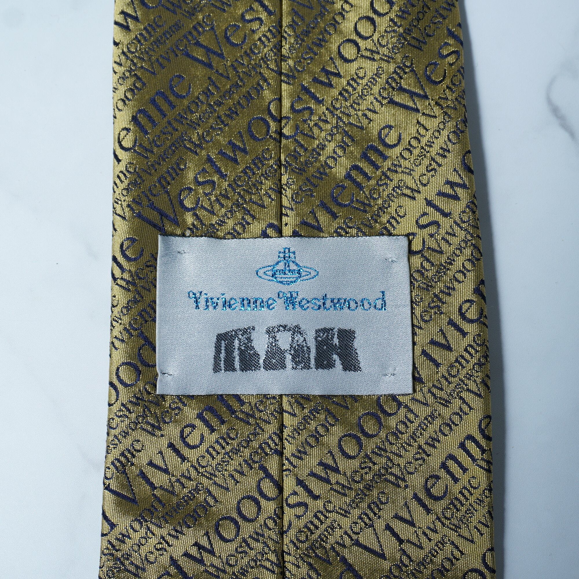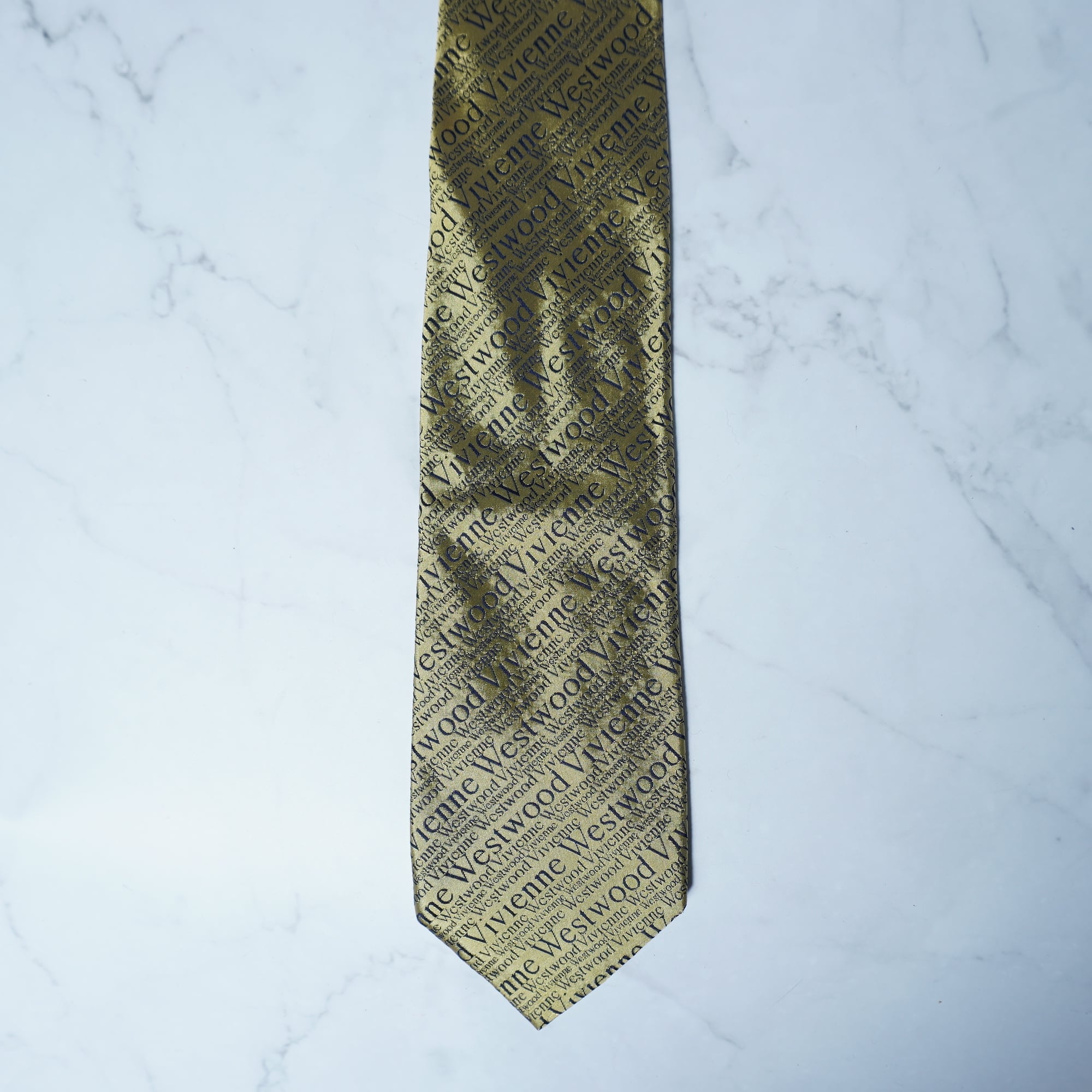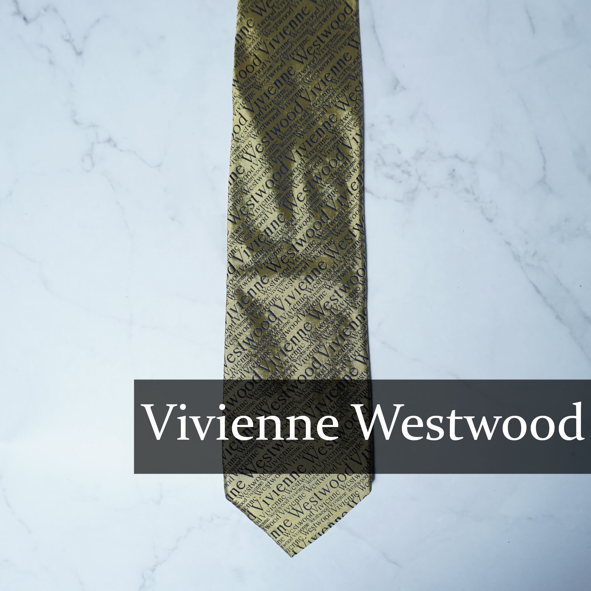 【Vivienne Westwood】ヴィヴィアンウエストウッド "ロゴ総柄” SILK100%ネクタイ gold&black