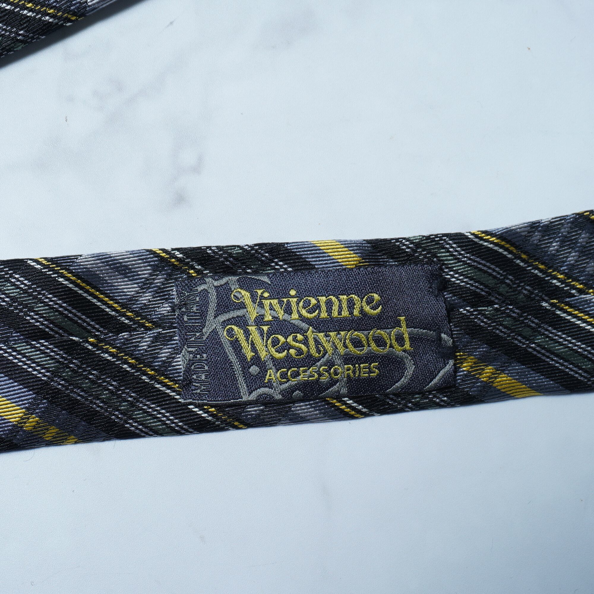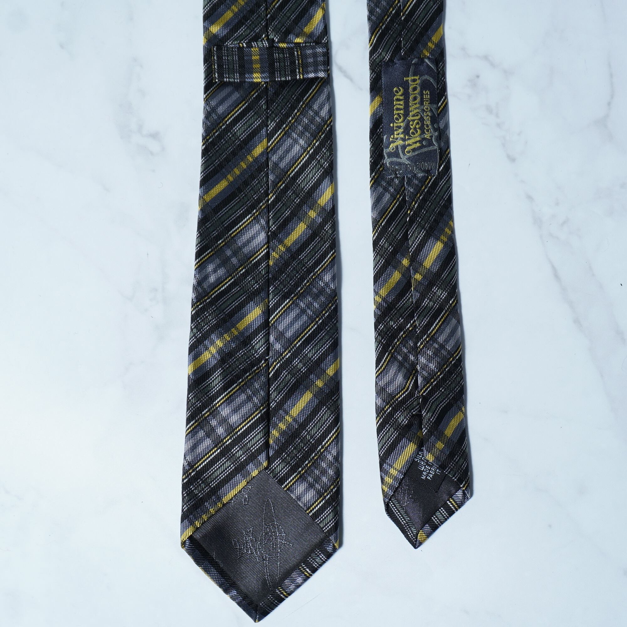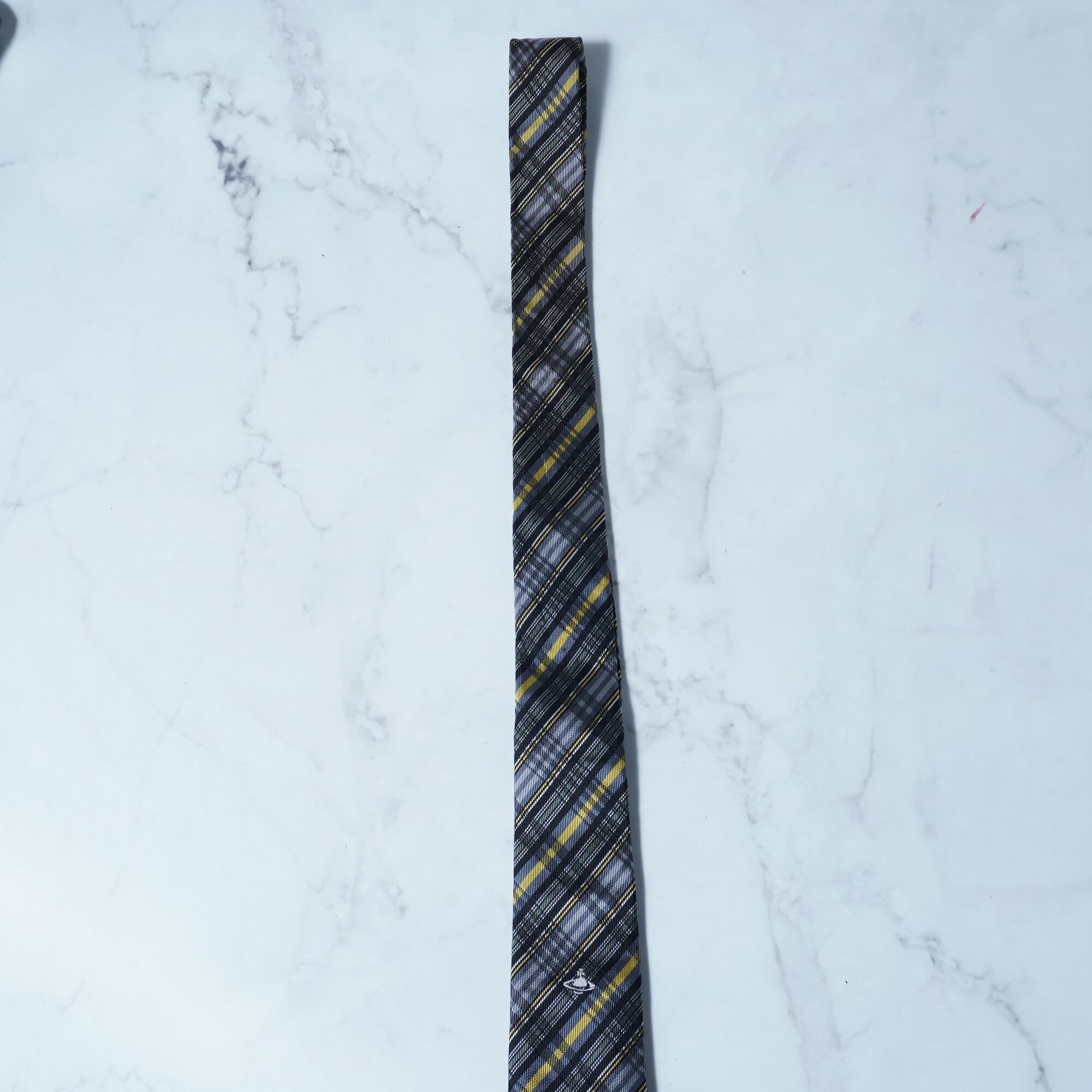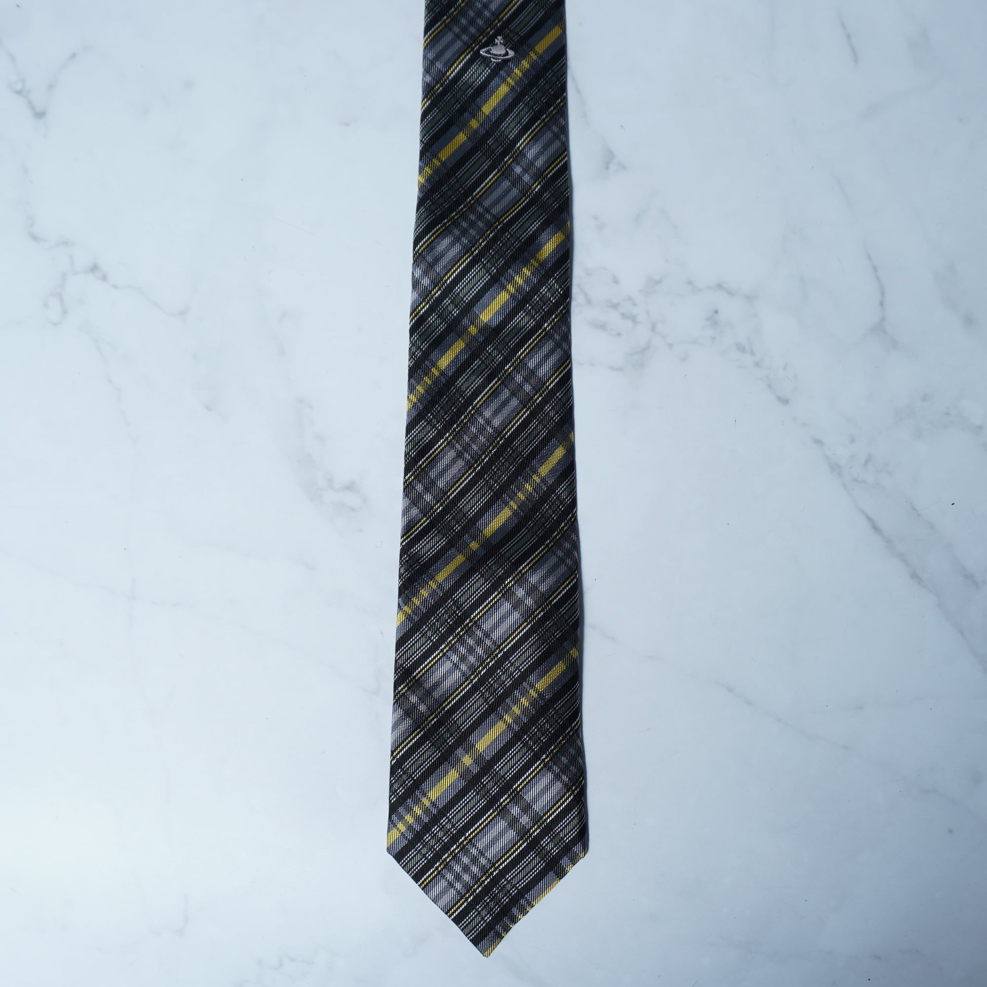 【Vivienne Westwood】ヴィヴィアンウエストウッド オーブロゴ刺繍 クロスチェックネクタイ yellow&black&gray