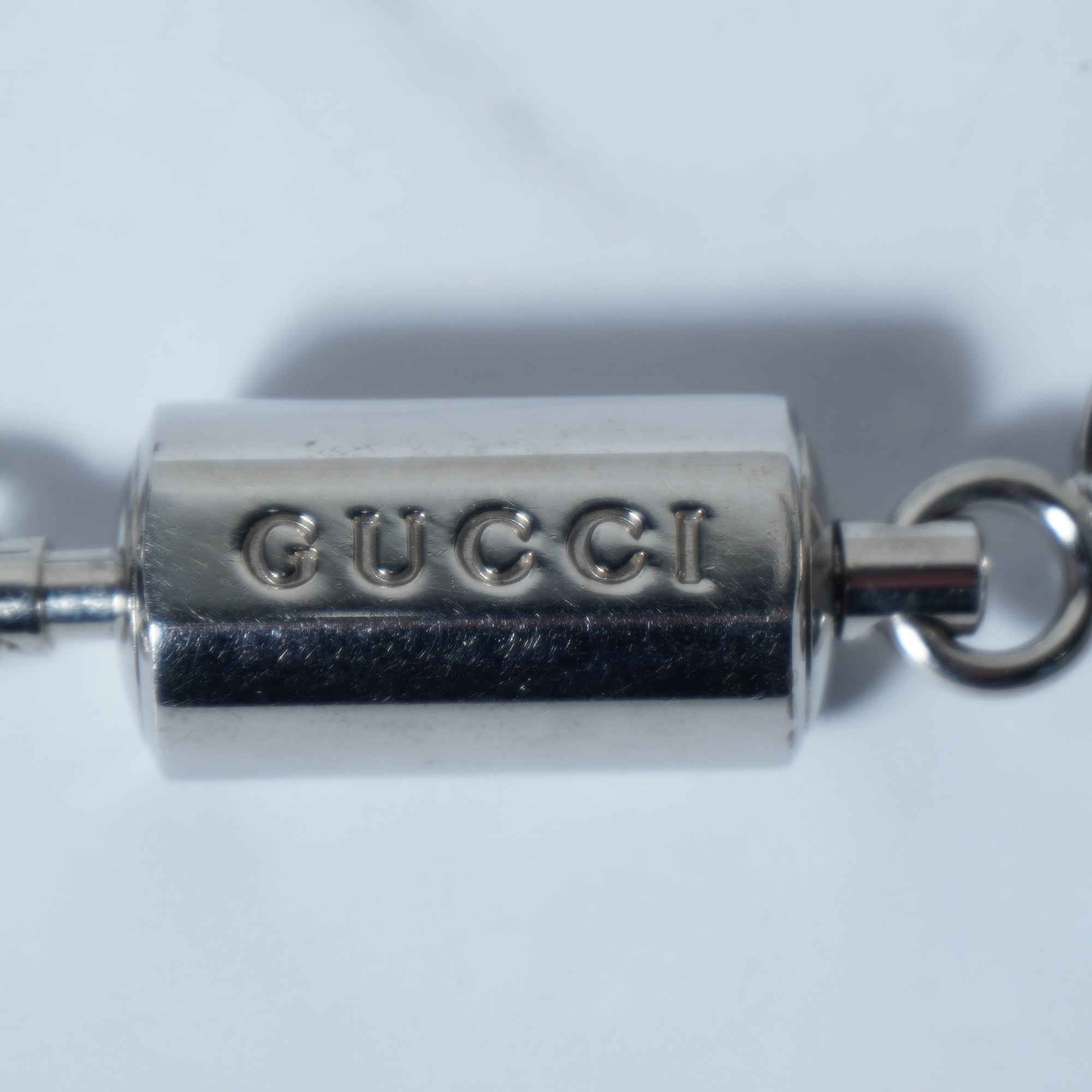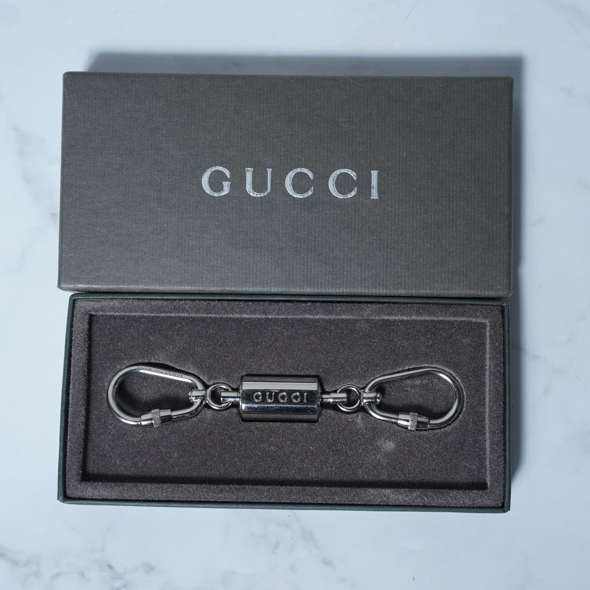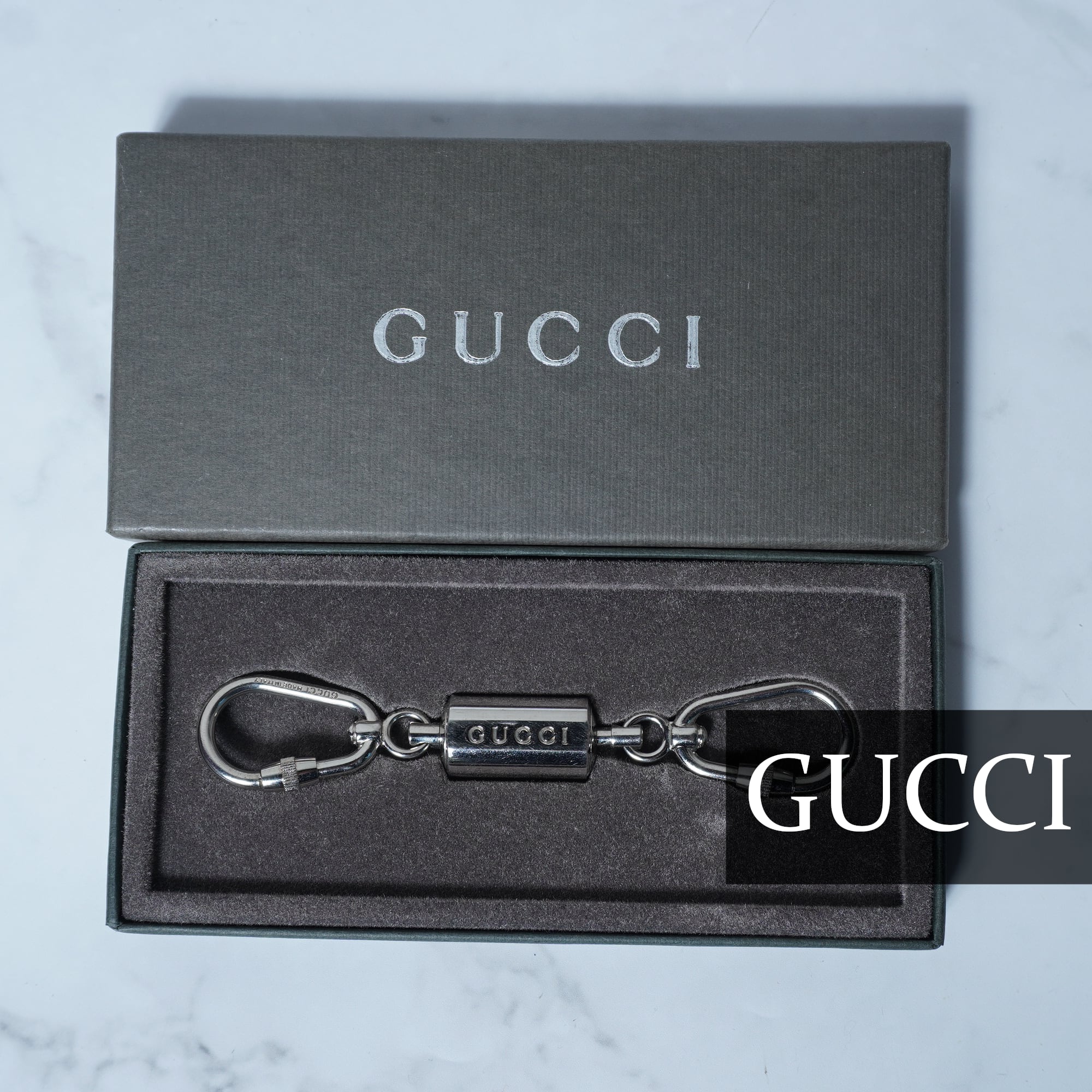 【GUCCI】グッチ ロゴ入 カラビナキーリング silver