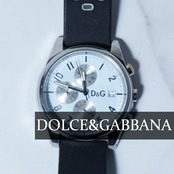 【DOLCE&GABBANA】ドルチェ&ガッバーナ ロゴ入 稼働品 ラバーバンドクロノグラフクォーツウォッチ silver&black
