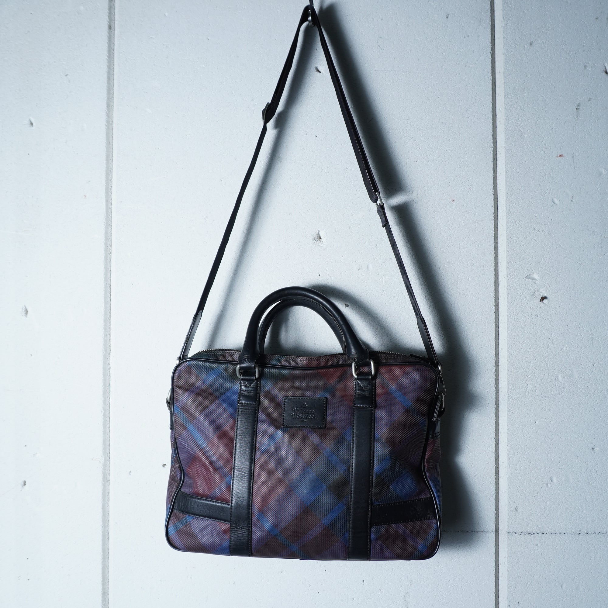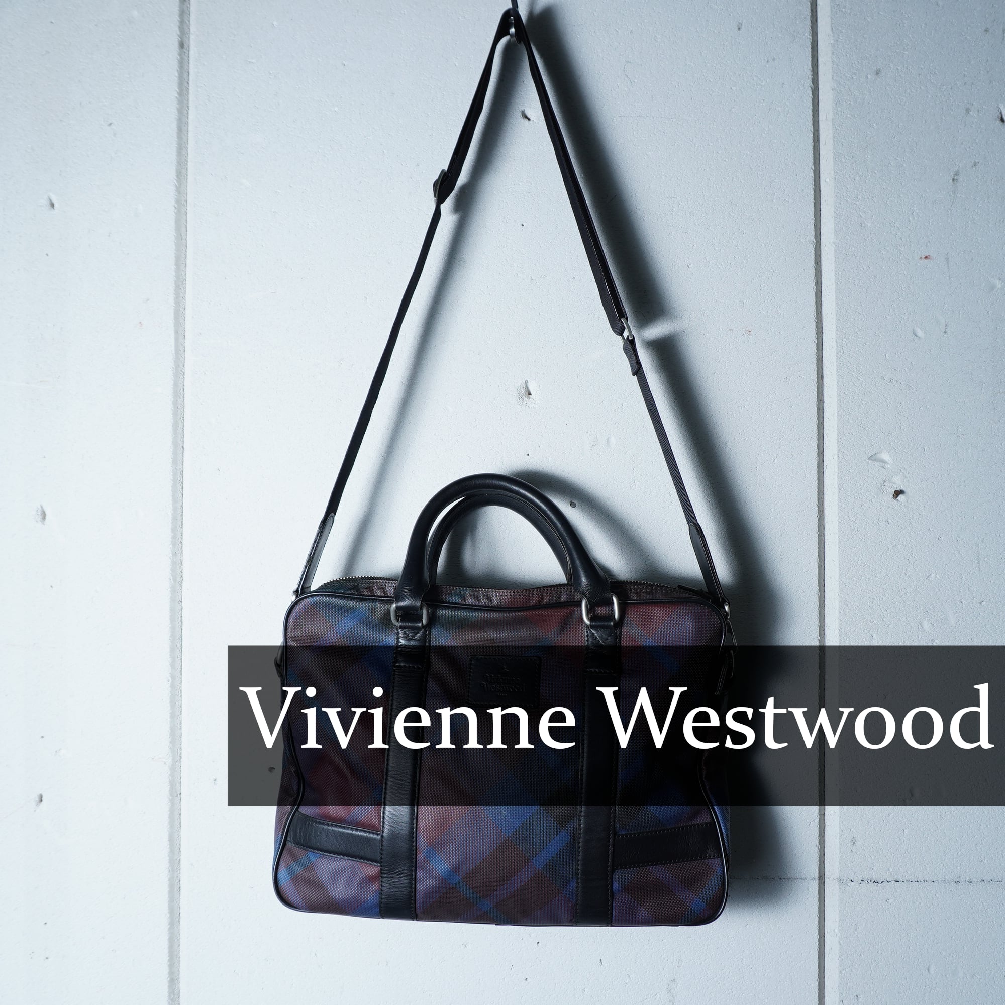 【Vivienne Westwood】ヴィヴィアンウエストウッド "オーブロゴ” レザー・PVC2WAYショルダーハンドバッグ black&red&blue