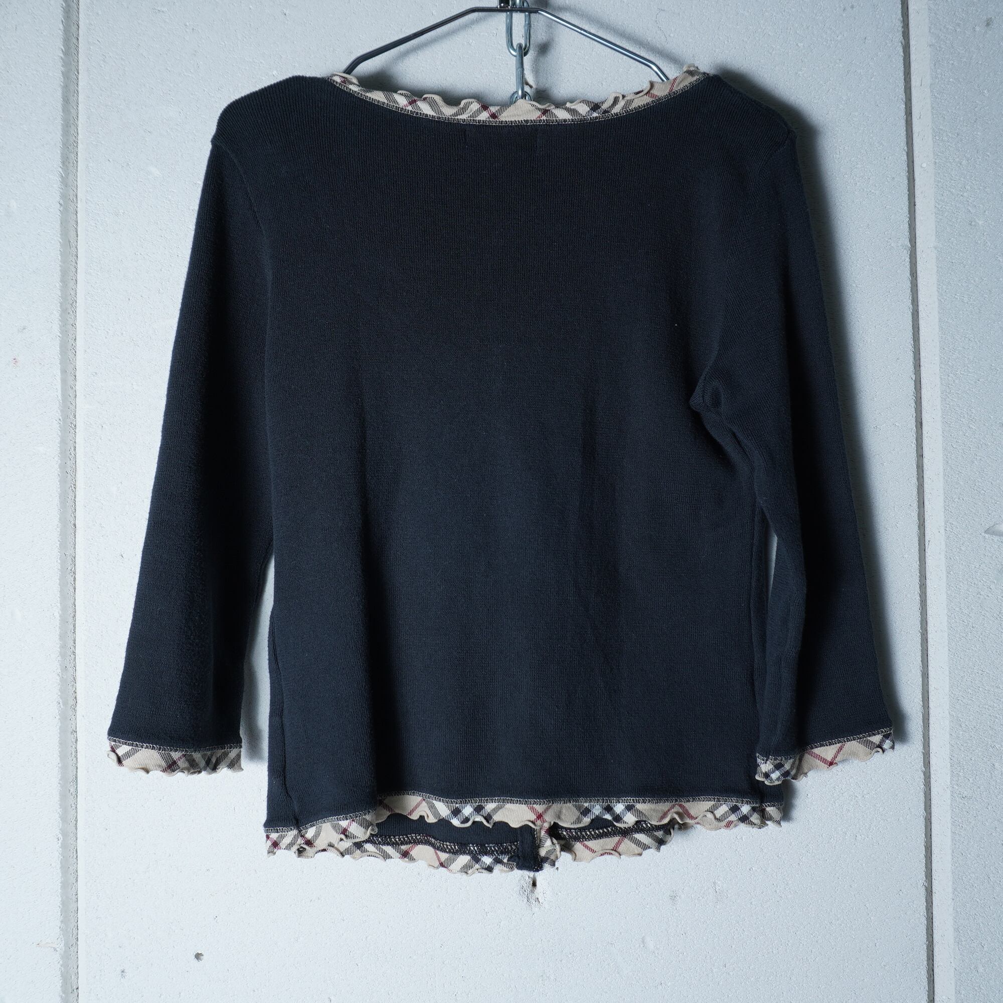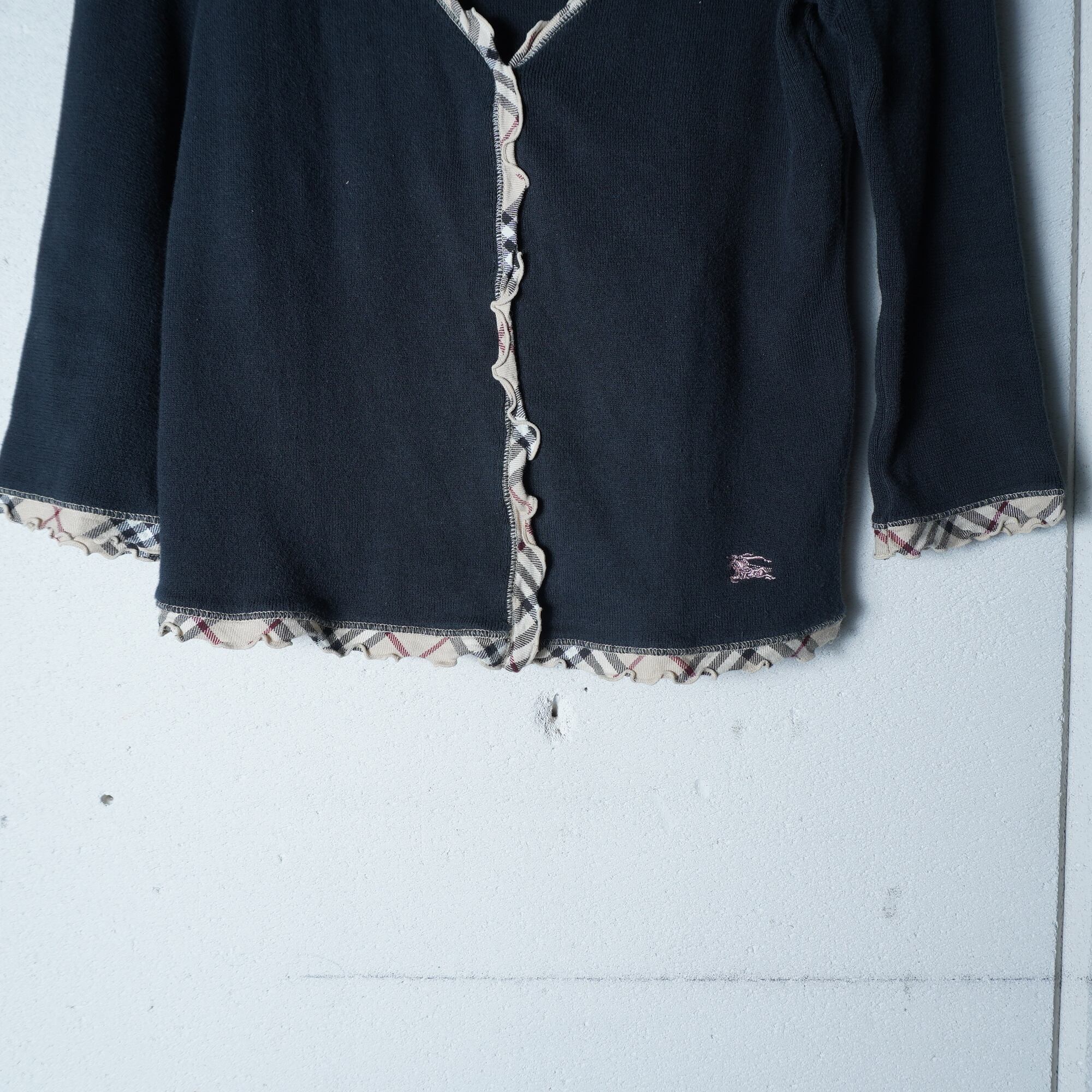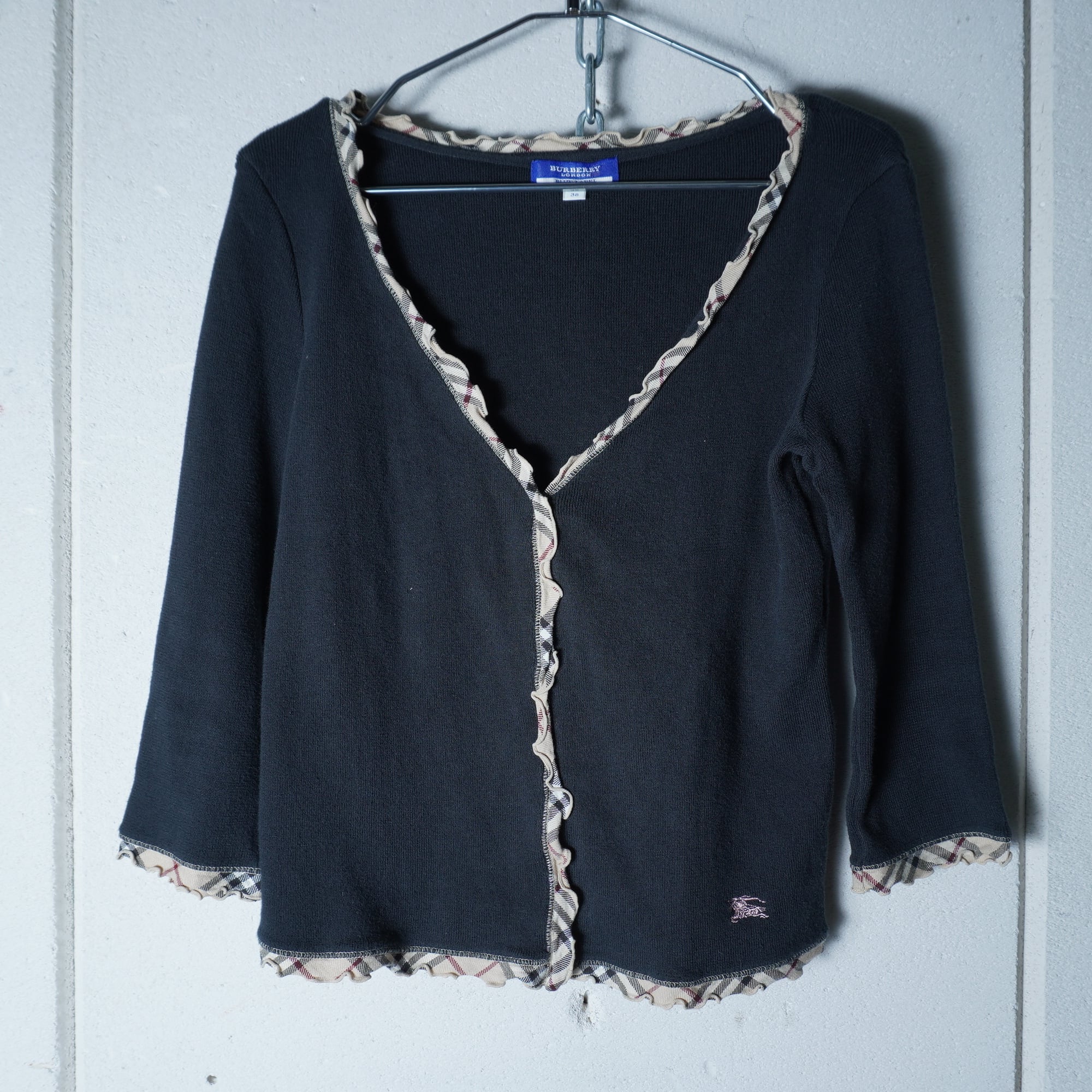 【BURBERRY】バーバリー ”ホースロゴ刺繍” ノヴァチェックフリルラインカーディガン black