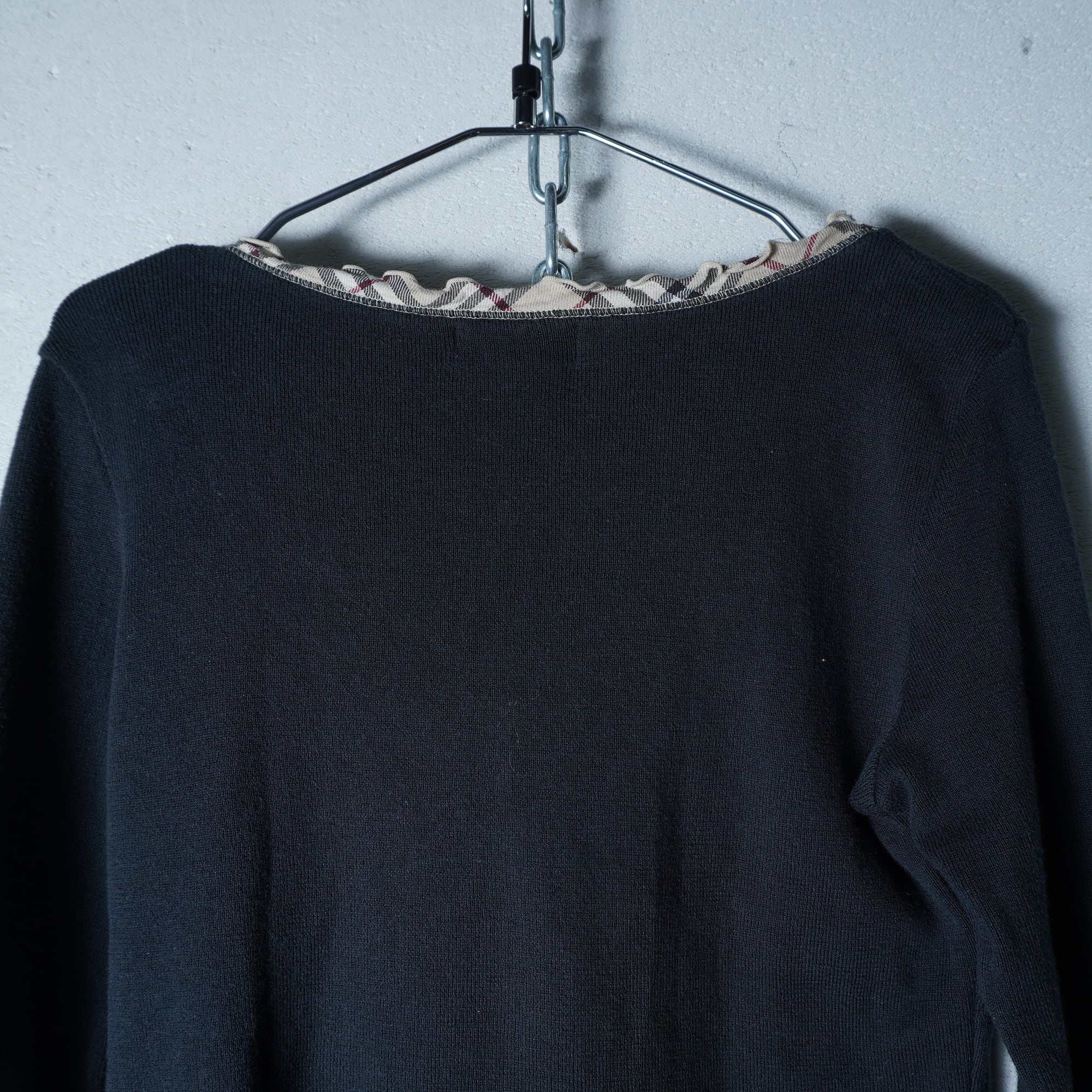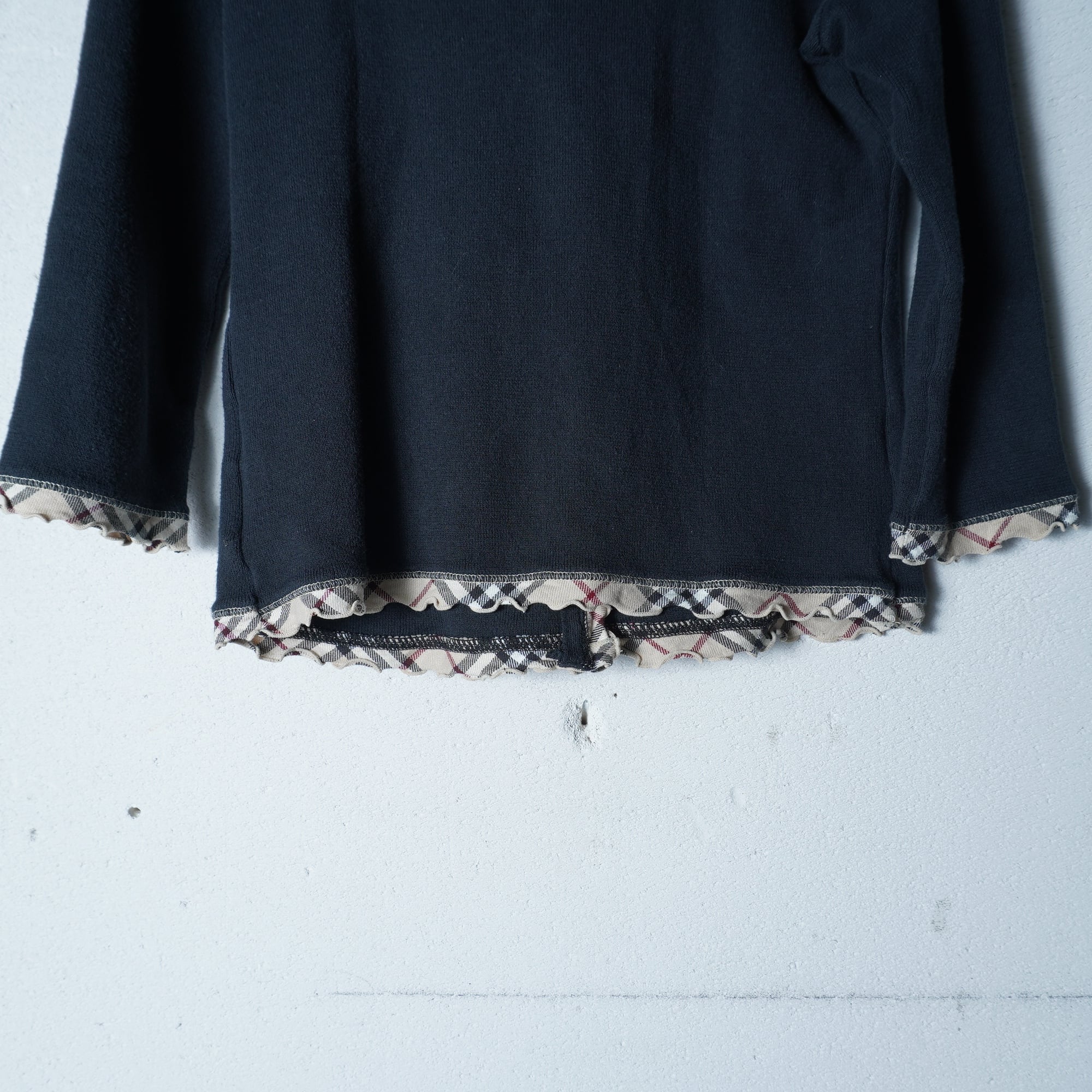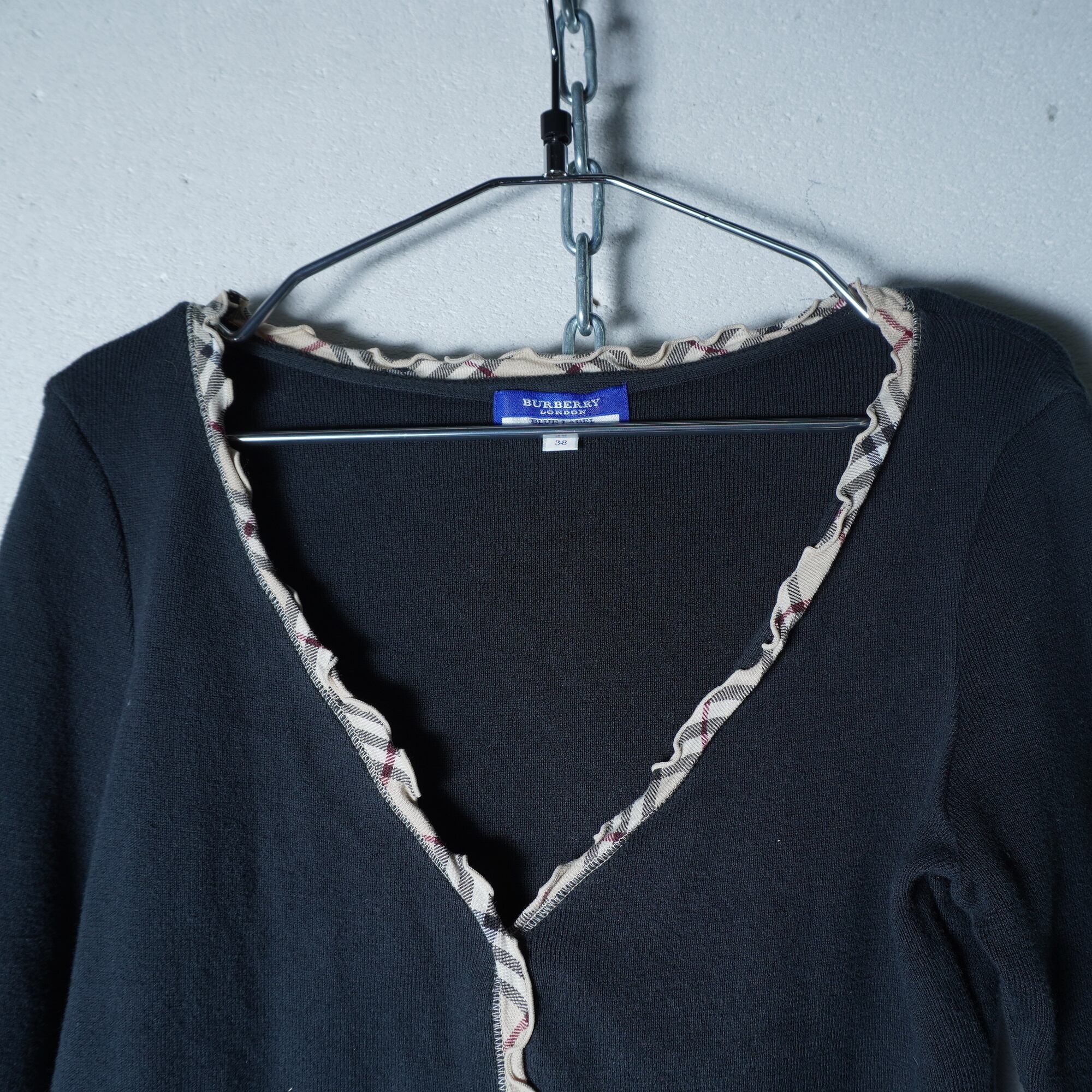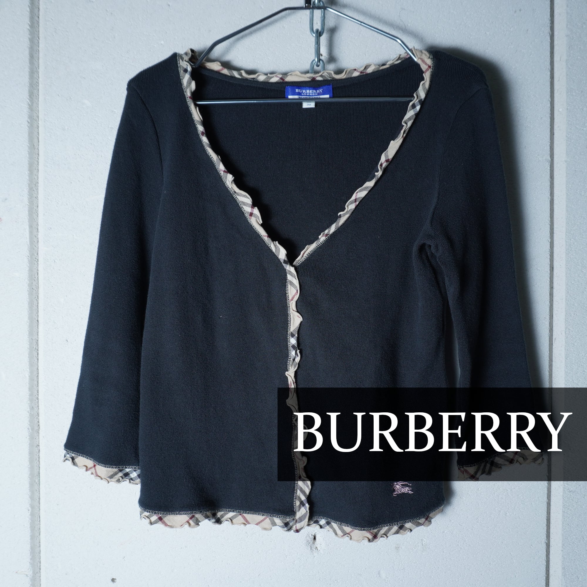 【BURBERRY】バーバリー ”ホースロゴ刺繍” ノヴァチェックフリルラインカーディガン black