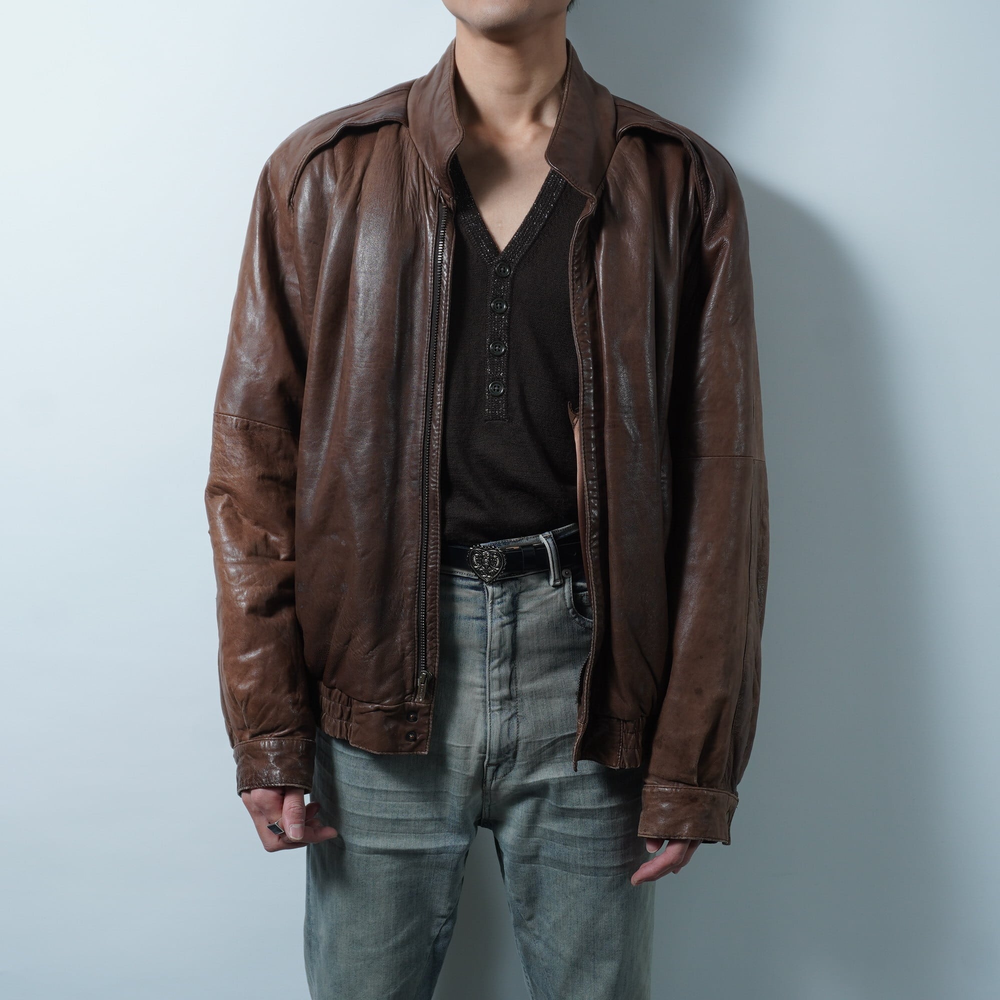 【Christian Dior】クリスチャンディオール vintage ARCHIVES ジップレザーボンバージャケット brown