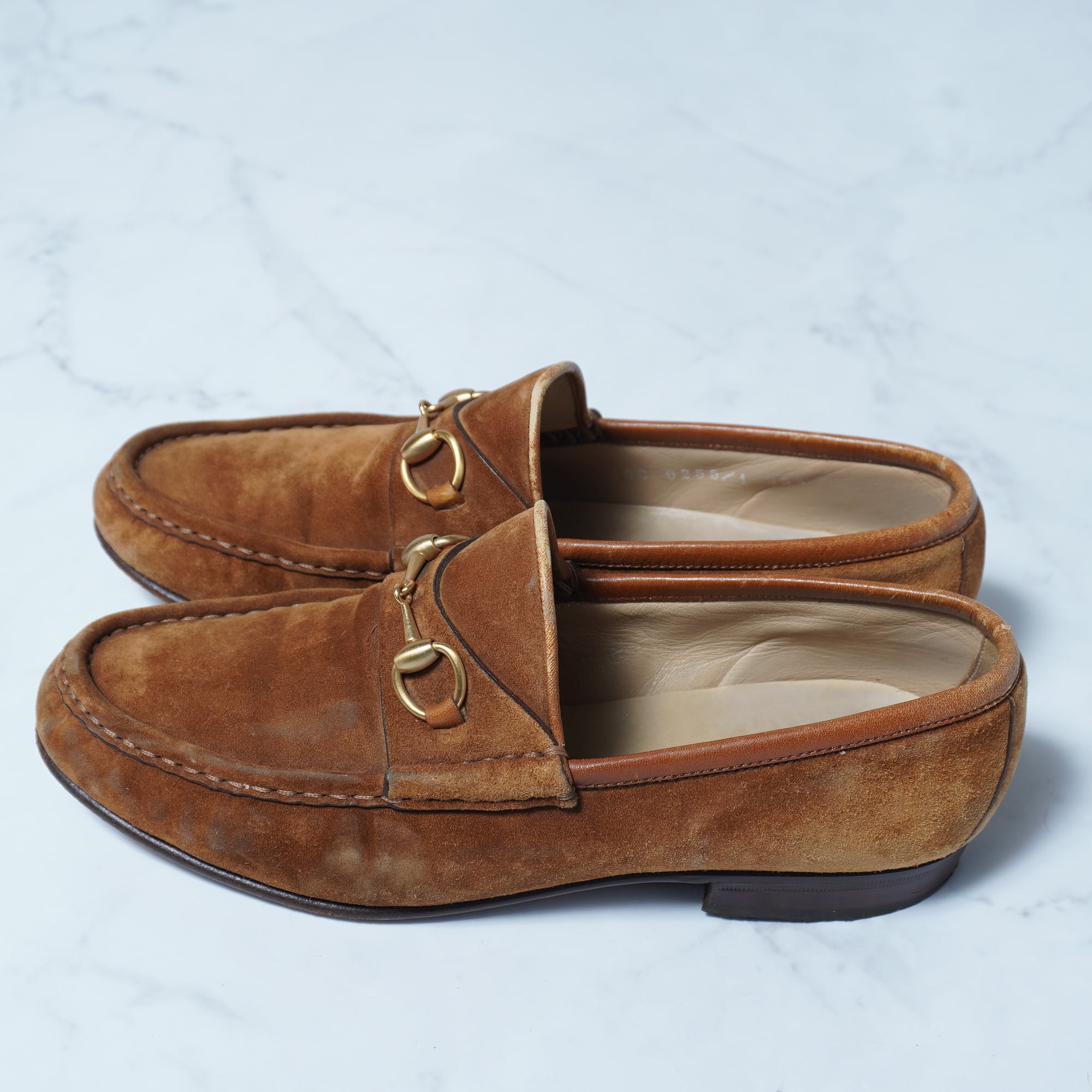 【GUCCI】グッチ ホースビットスエードレザーローファー brown