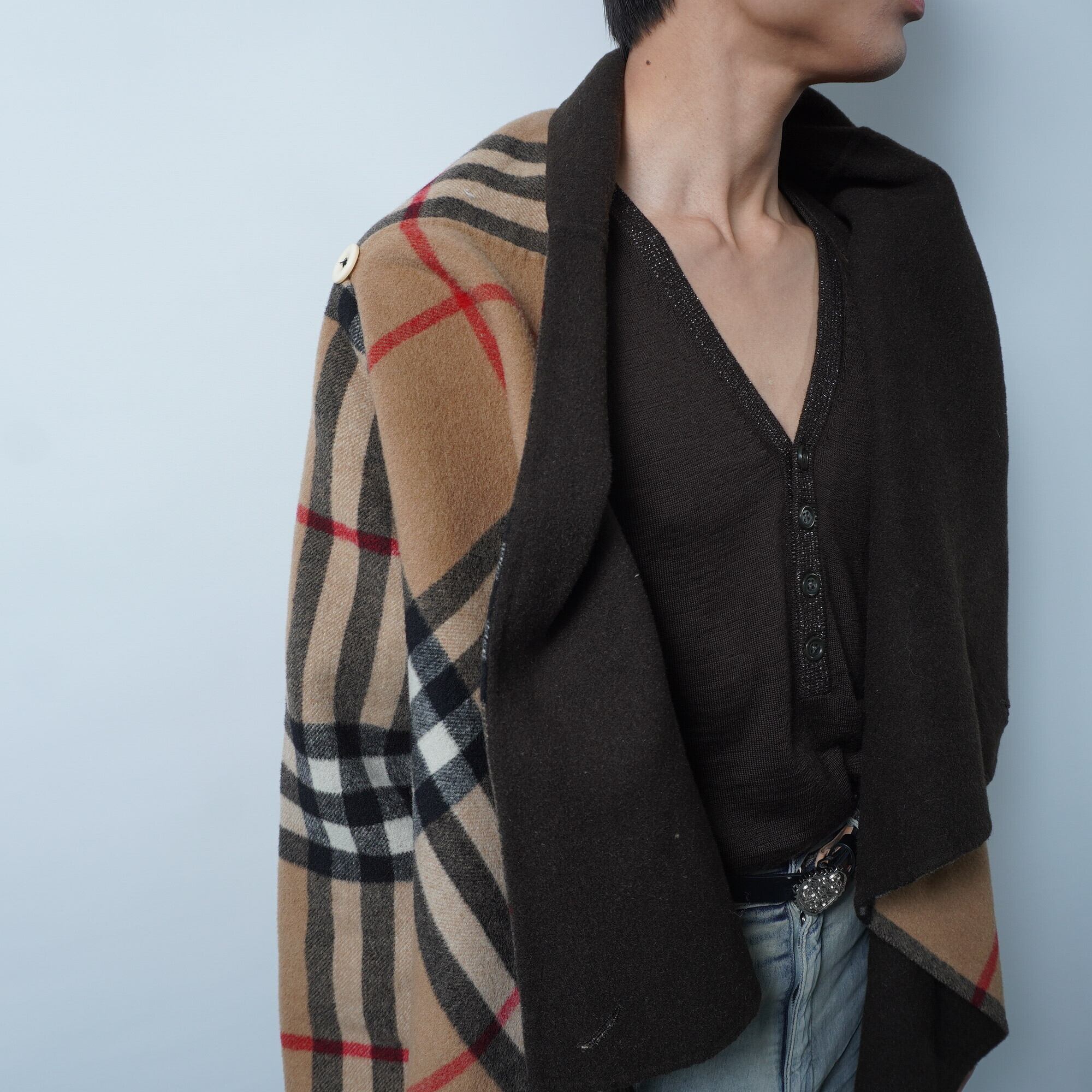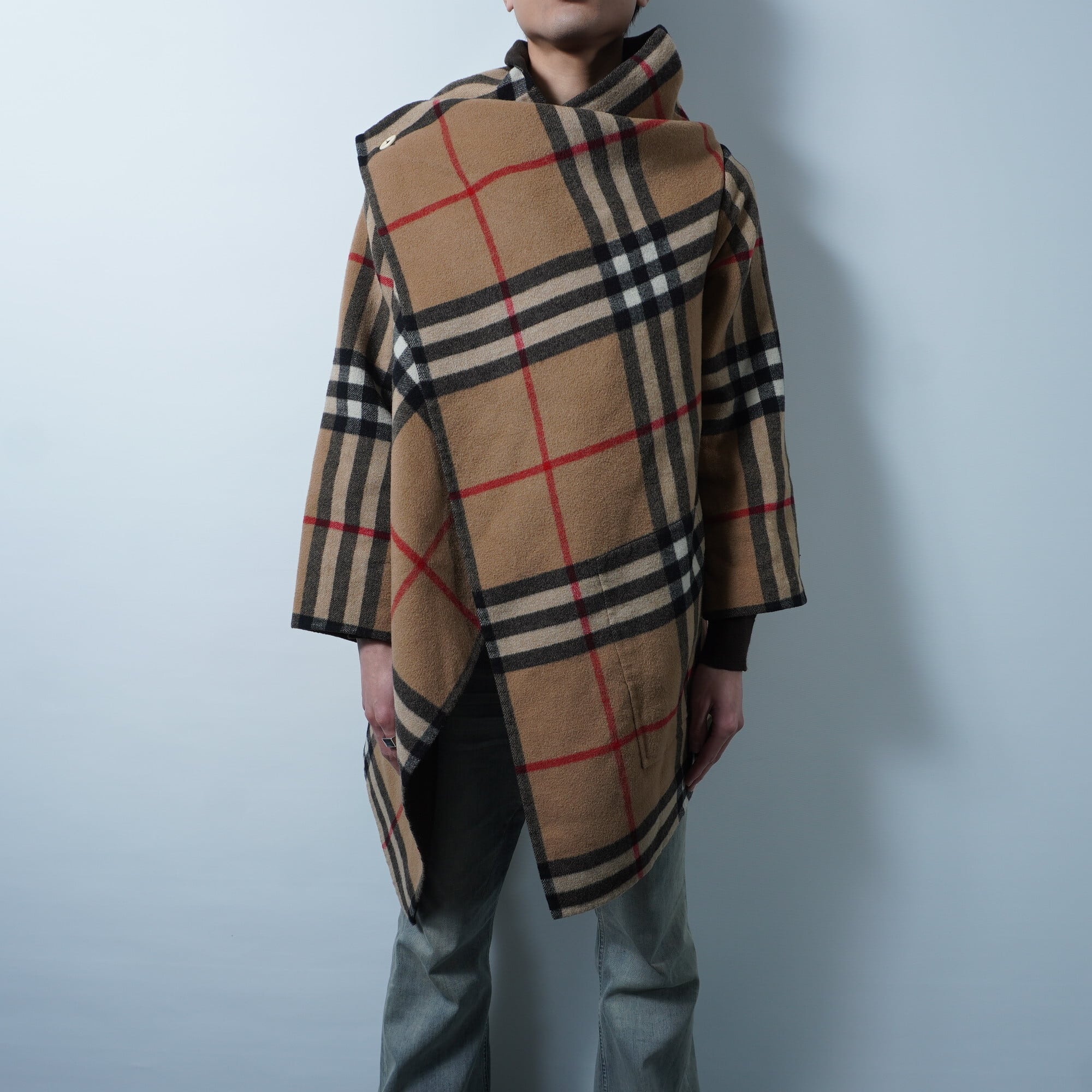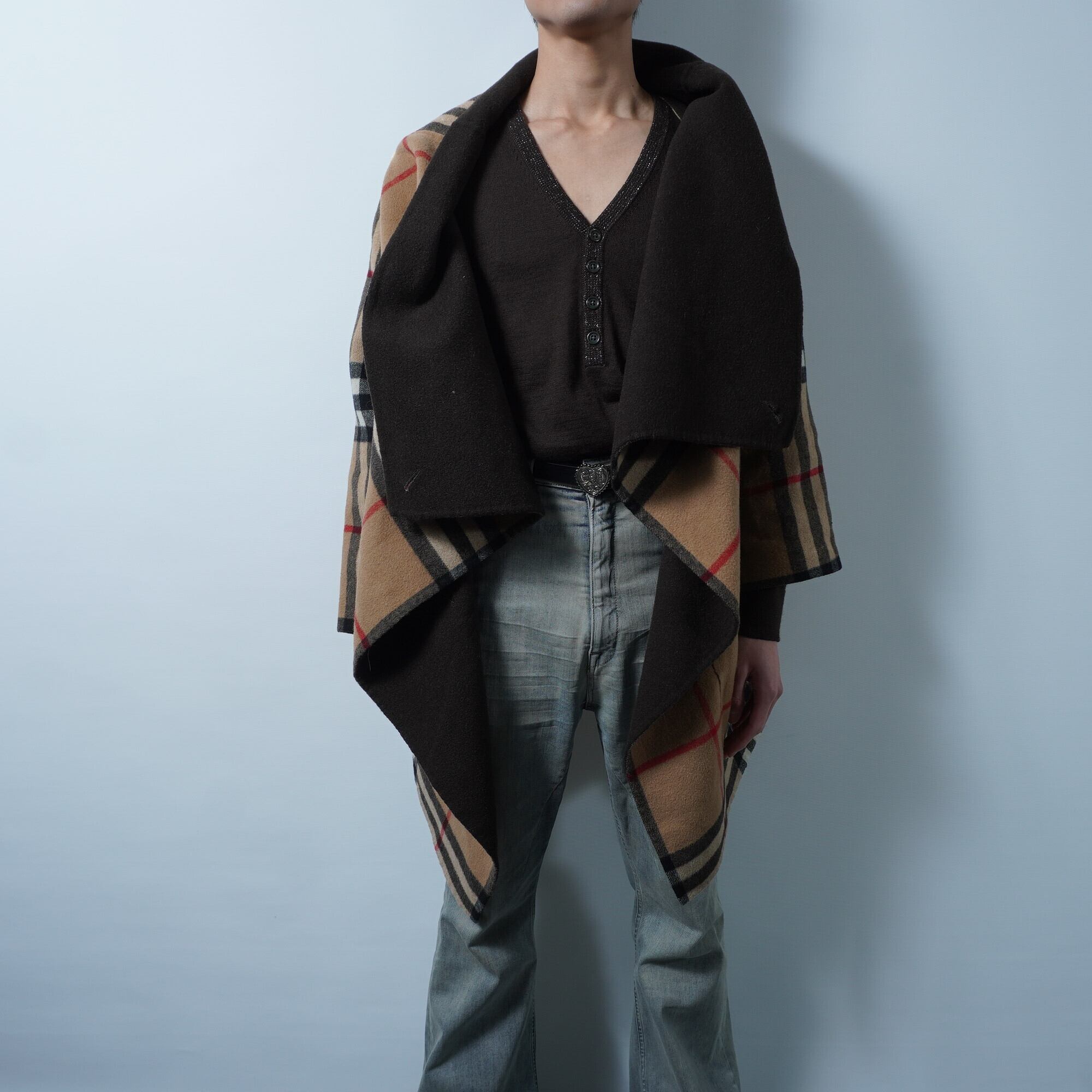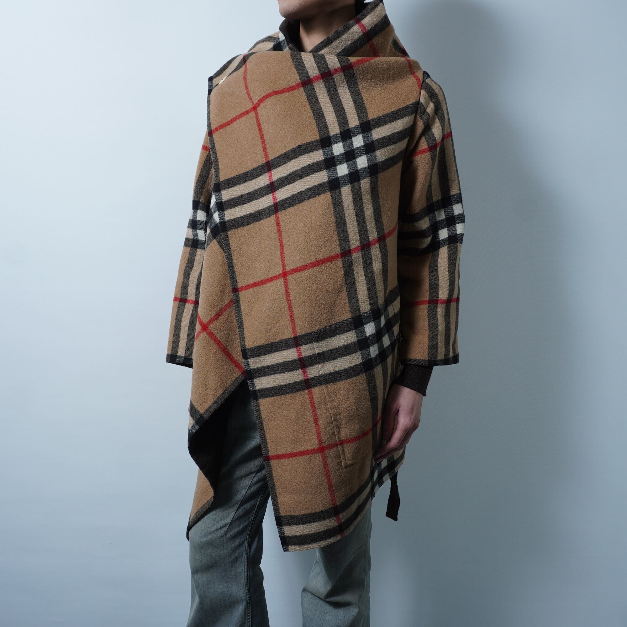 【BURBERRY LONDON】バーバリー カシミヤ100% ノバチェック切替ロングベスト