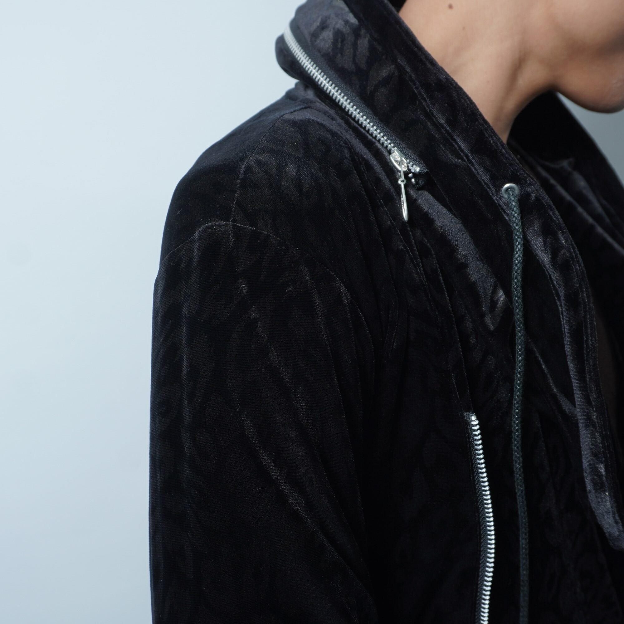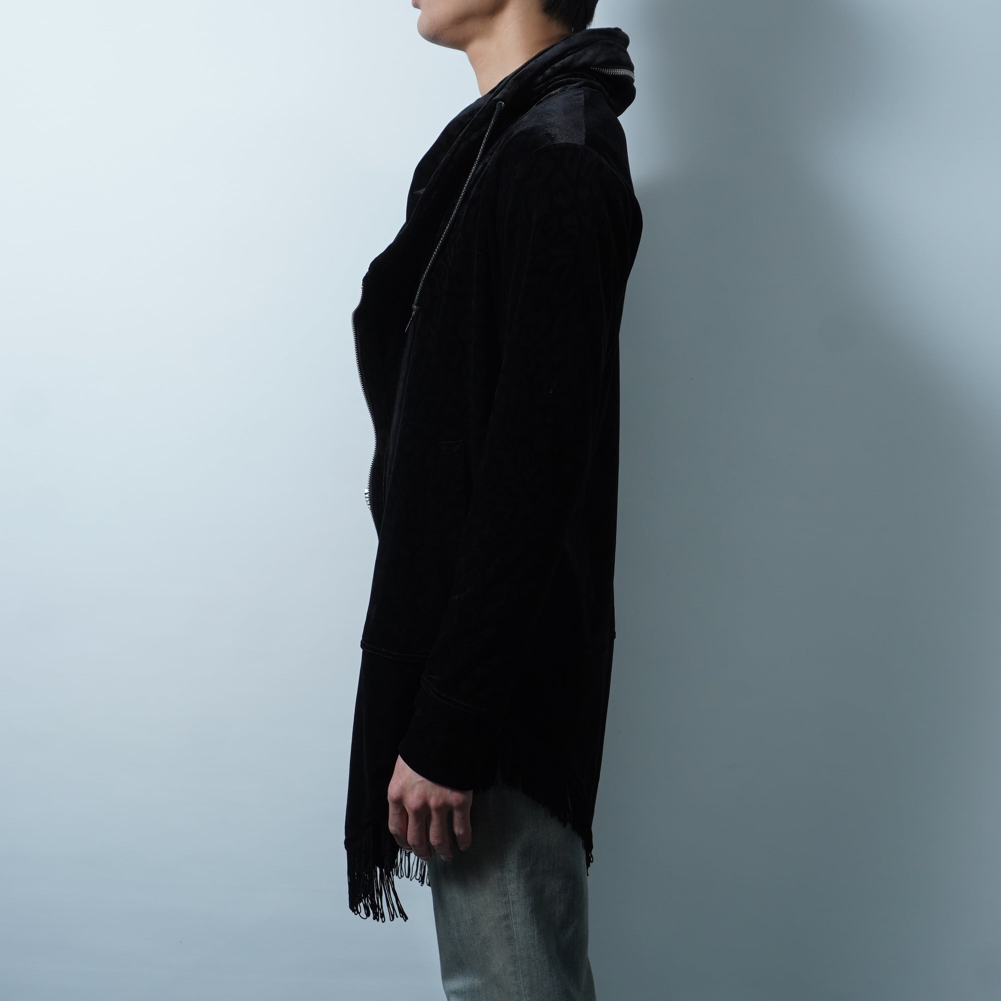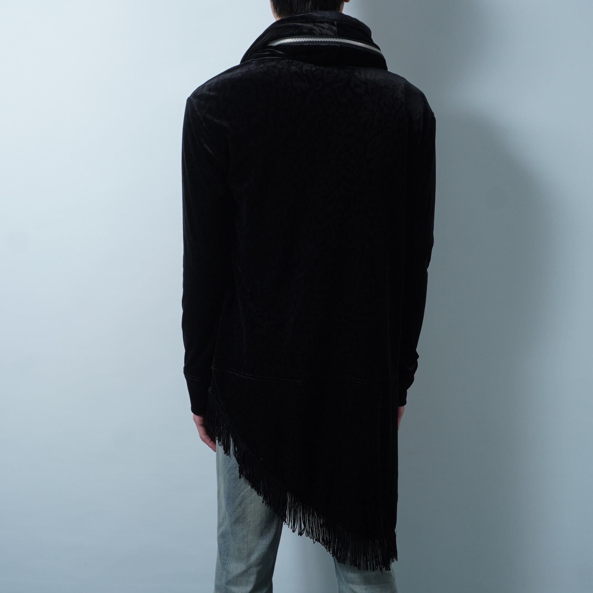 【TORNADO MART】トルネードマート 13AW Y2K archive python pattern black velour zip up hoodie a symmetry hem