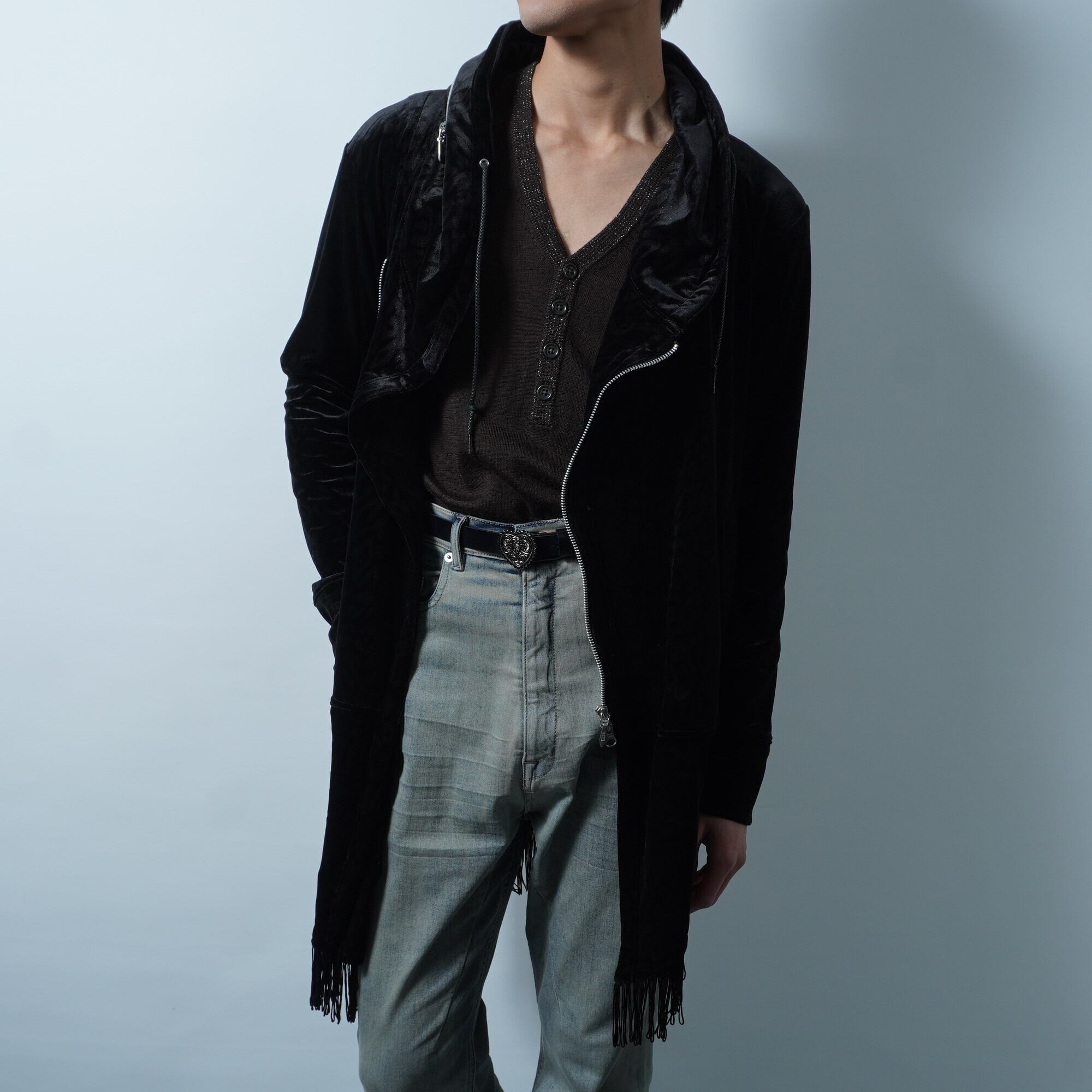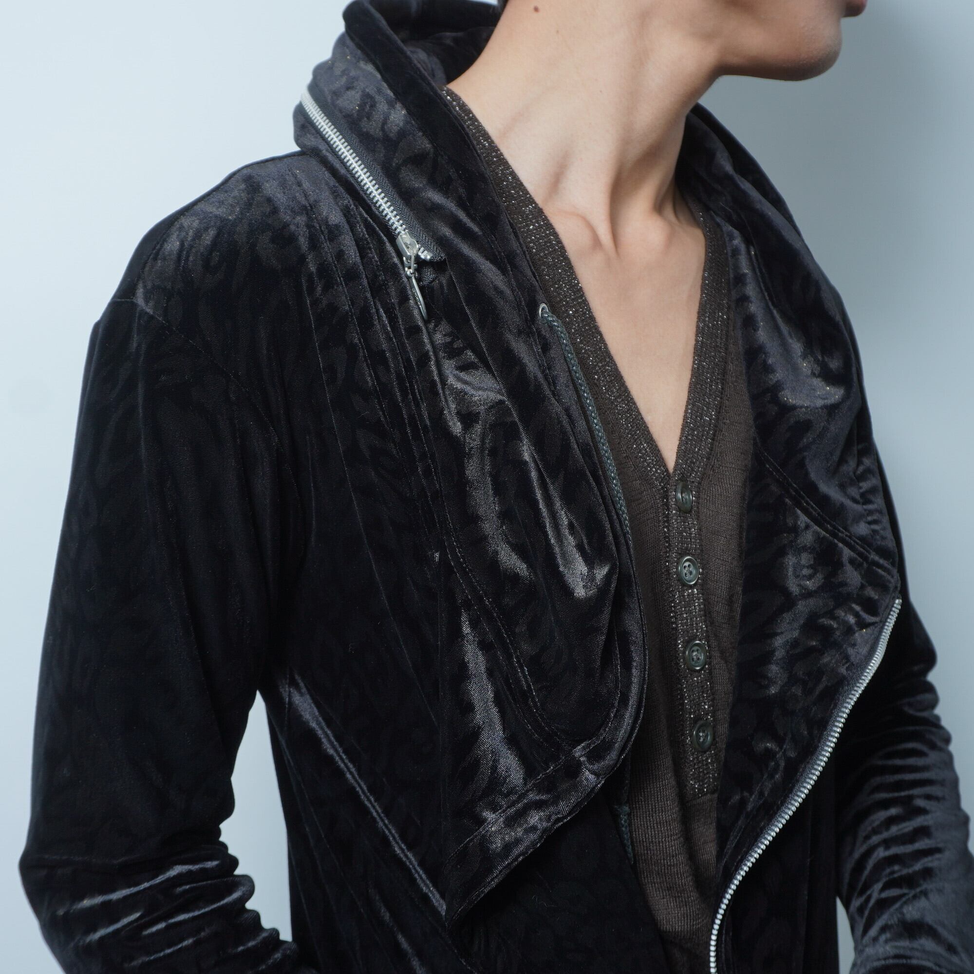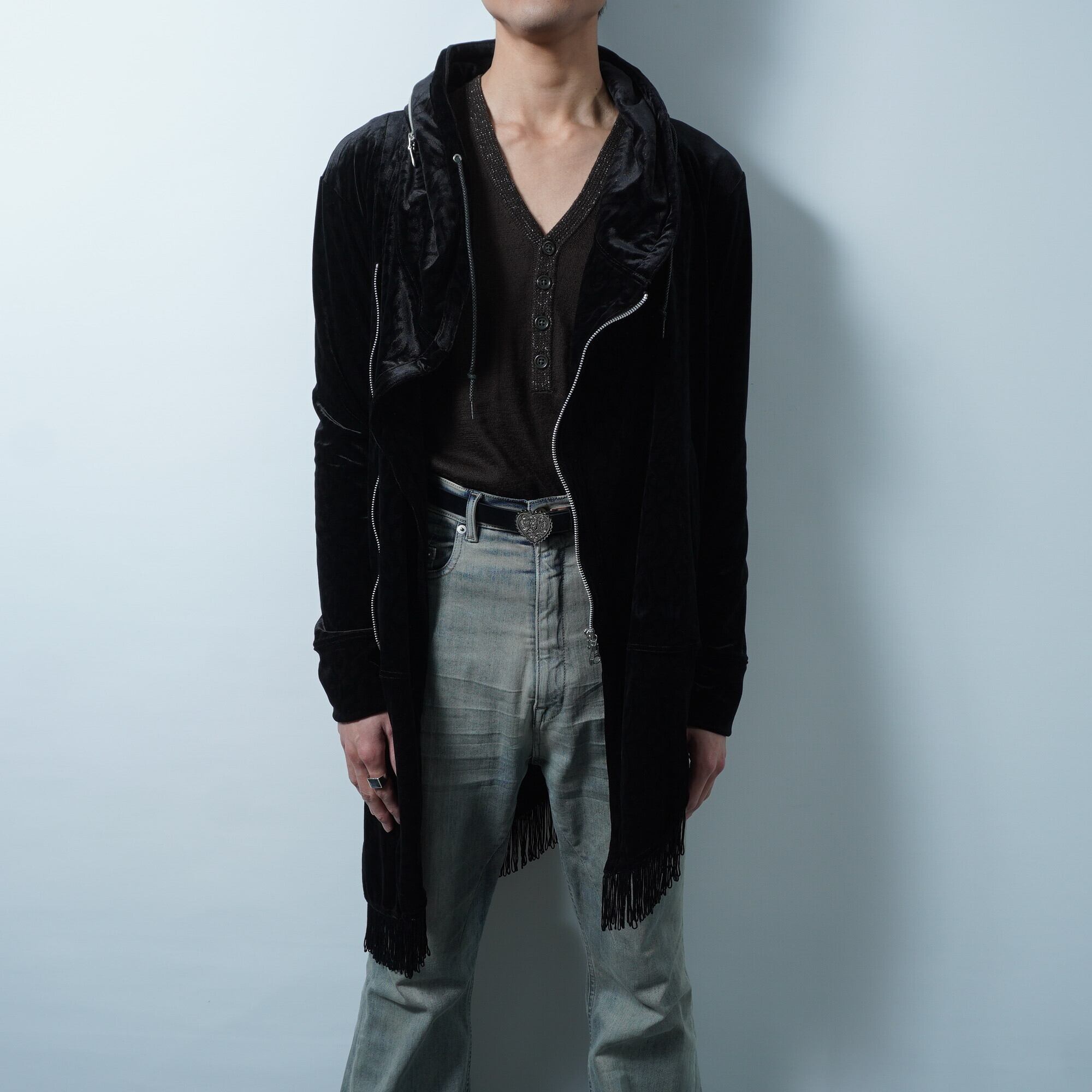 【TORNADO MART】トルネードマート 13AW Y2K archive python pattern black velour zip up hoodie a symmetry hem