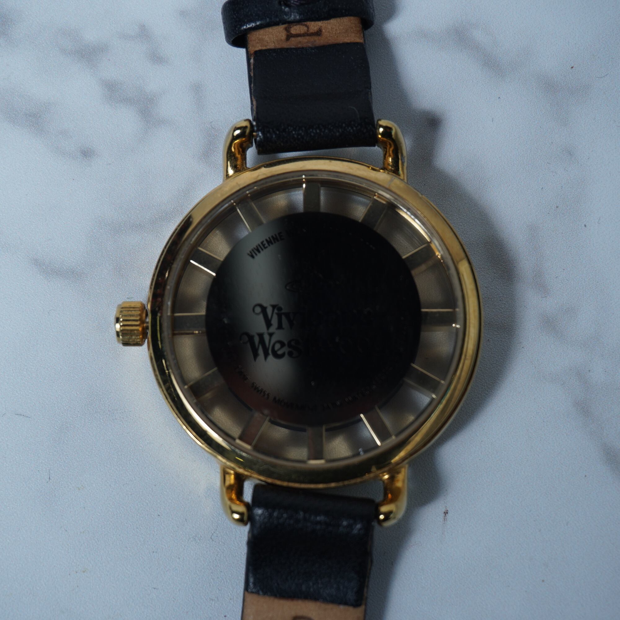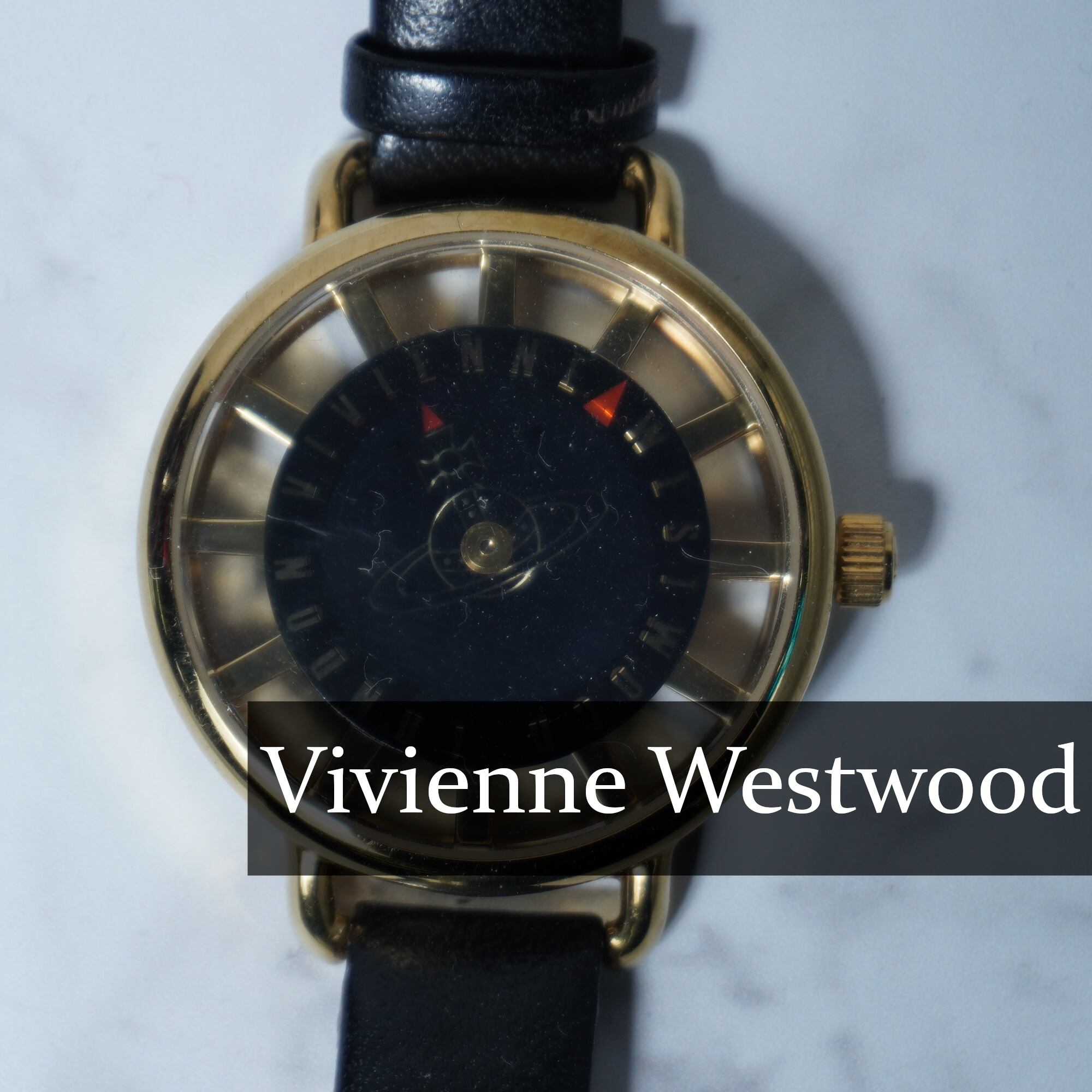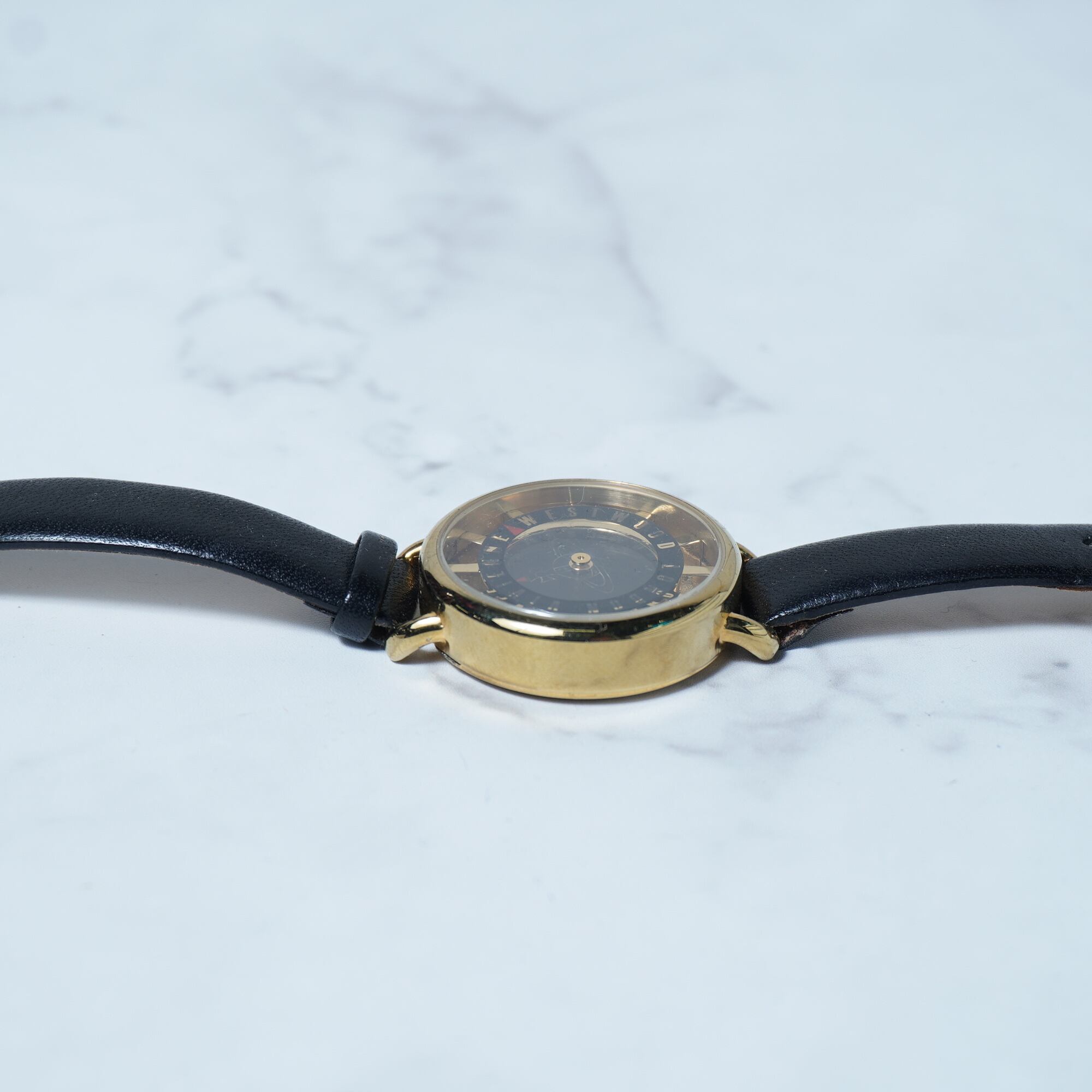 【Vivienne Westwood】ヴィヴィアンウエストウッド ”オーブロゴ時針” ブラックフェイスクォーツウォッチ gold
