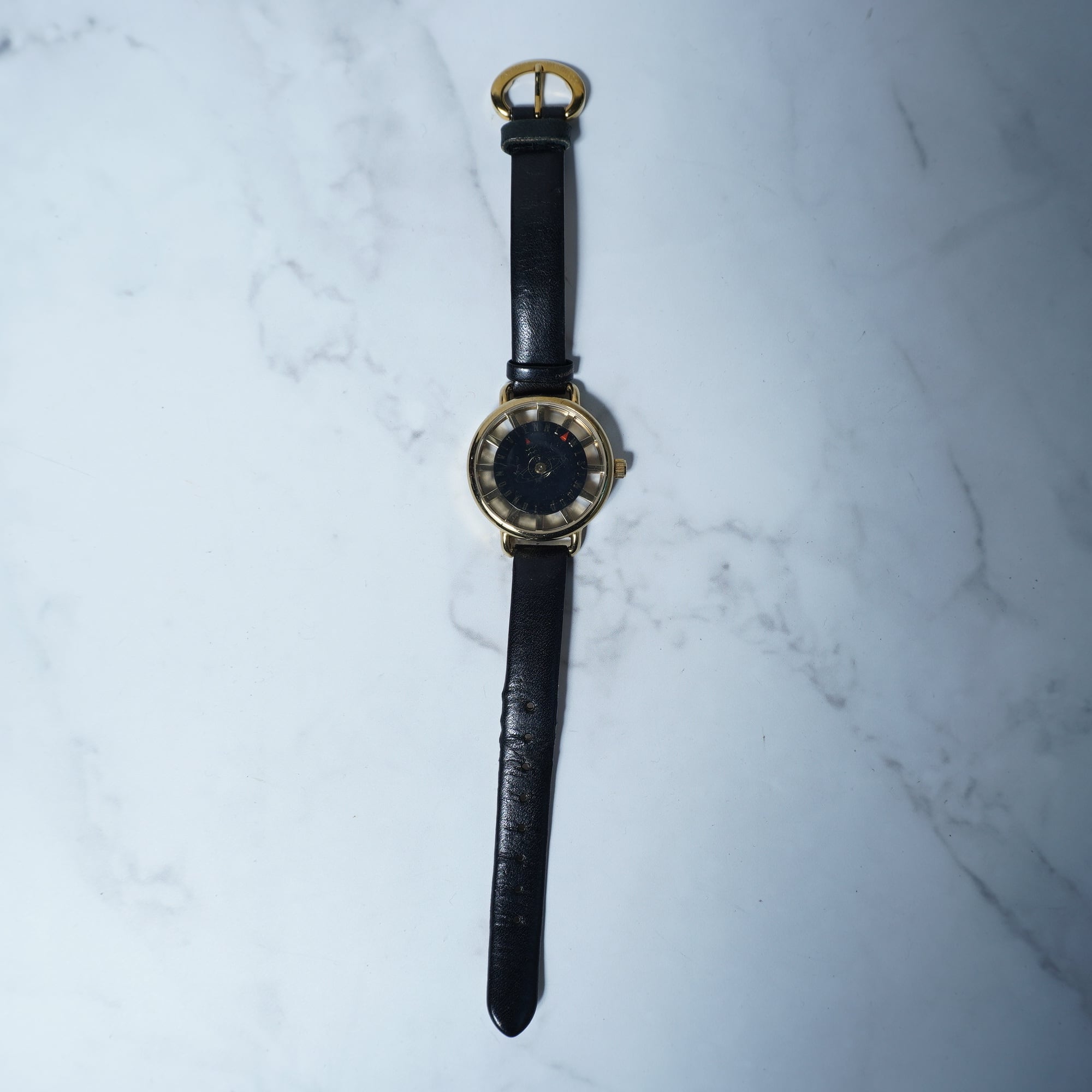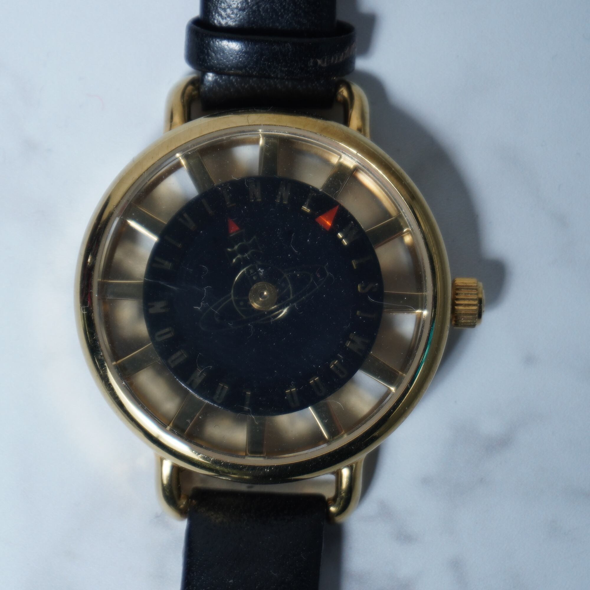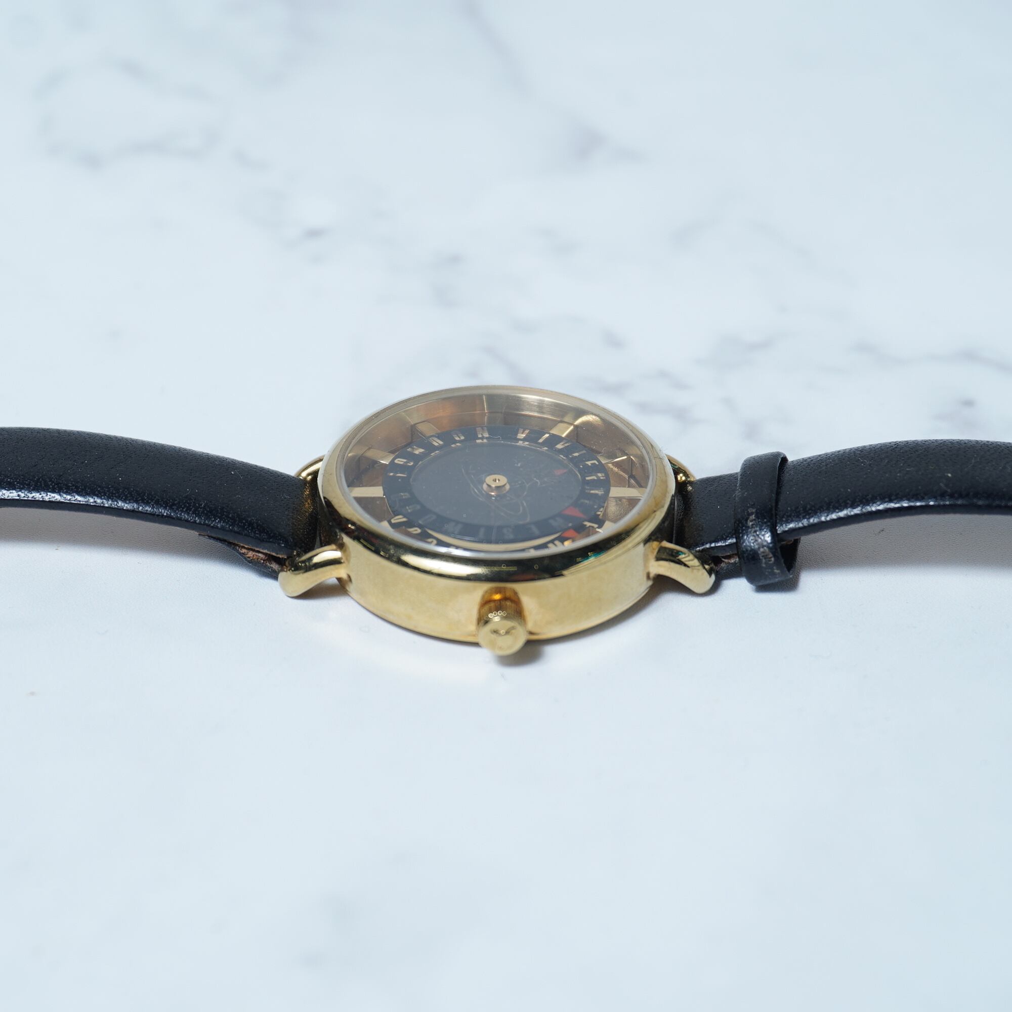 【Vivienne Westwood】ヴィヴィアンウエストウッド ”オーブロゴ時針” ブラックフェイスクォーツウォッチ gold