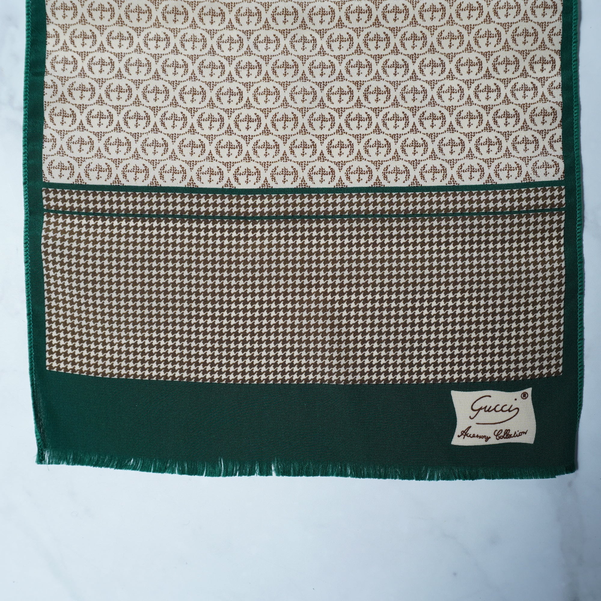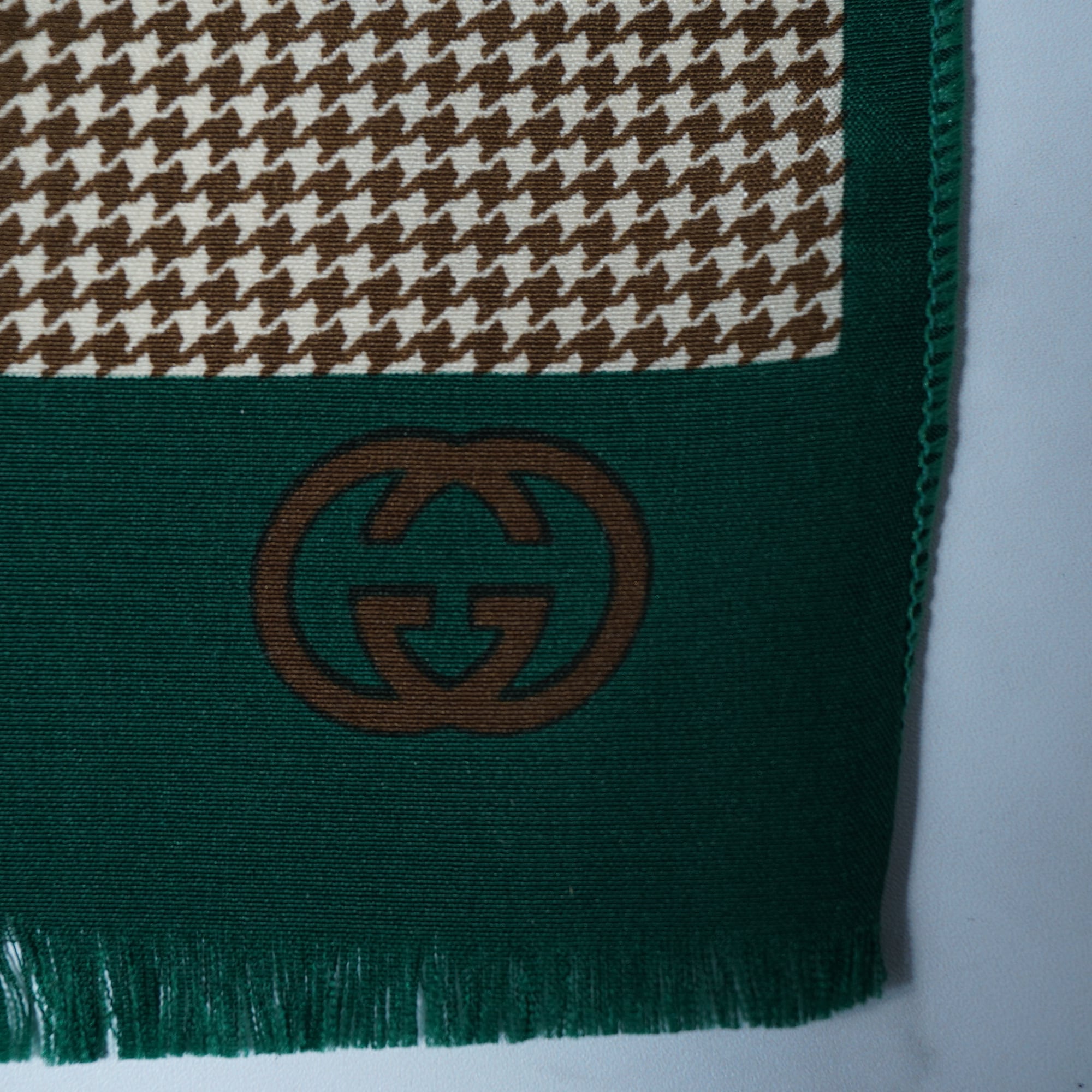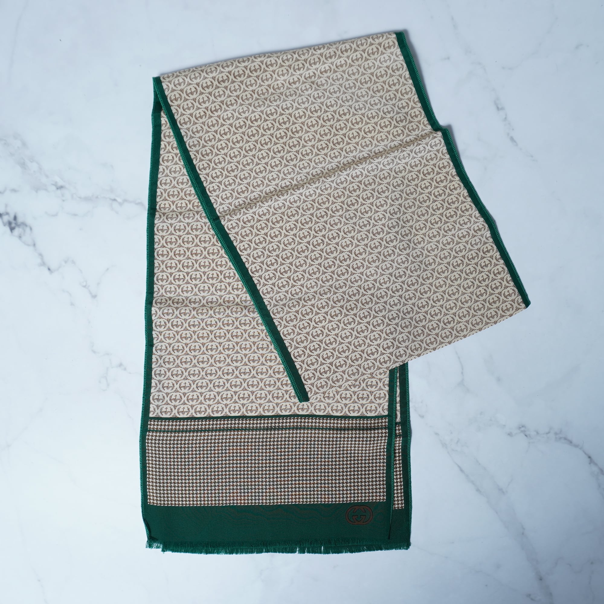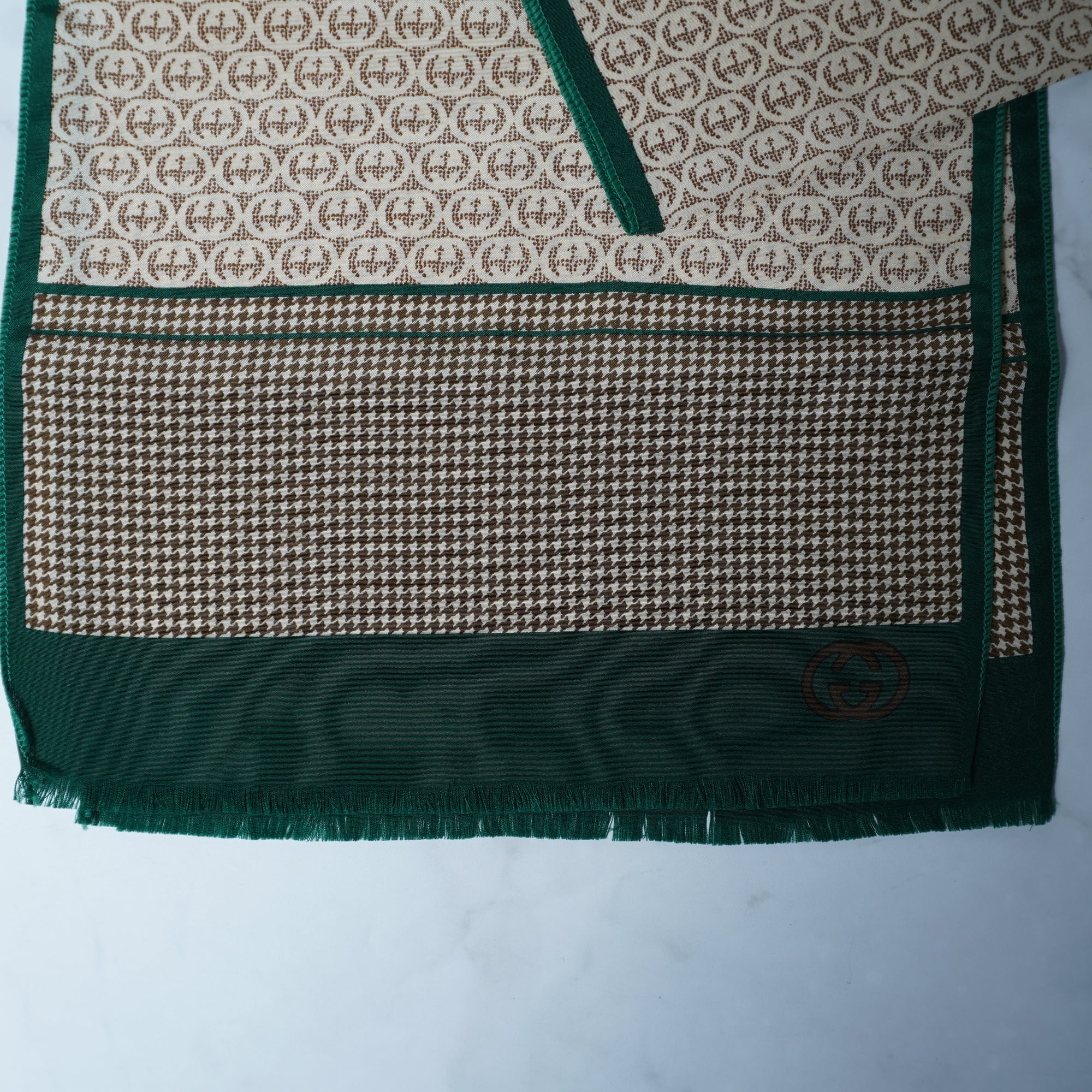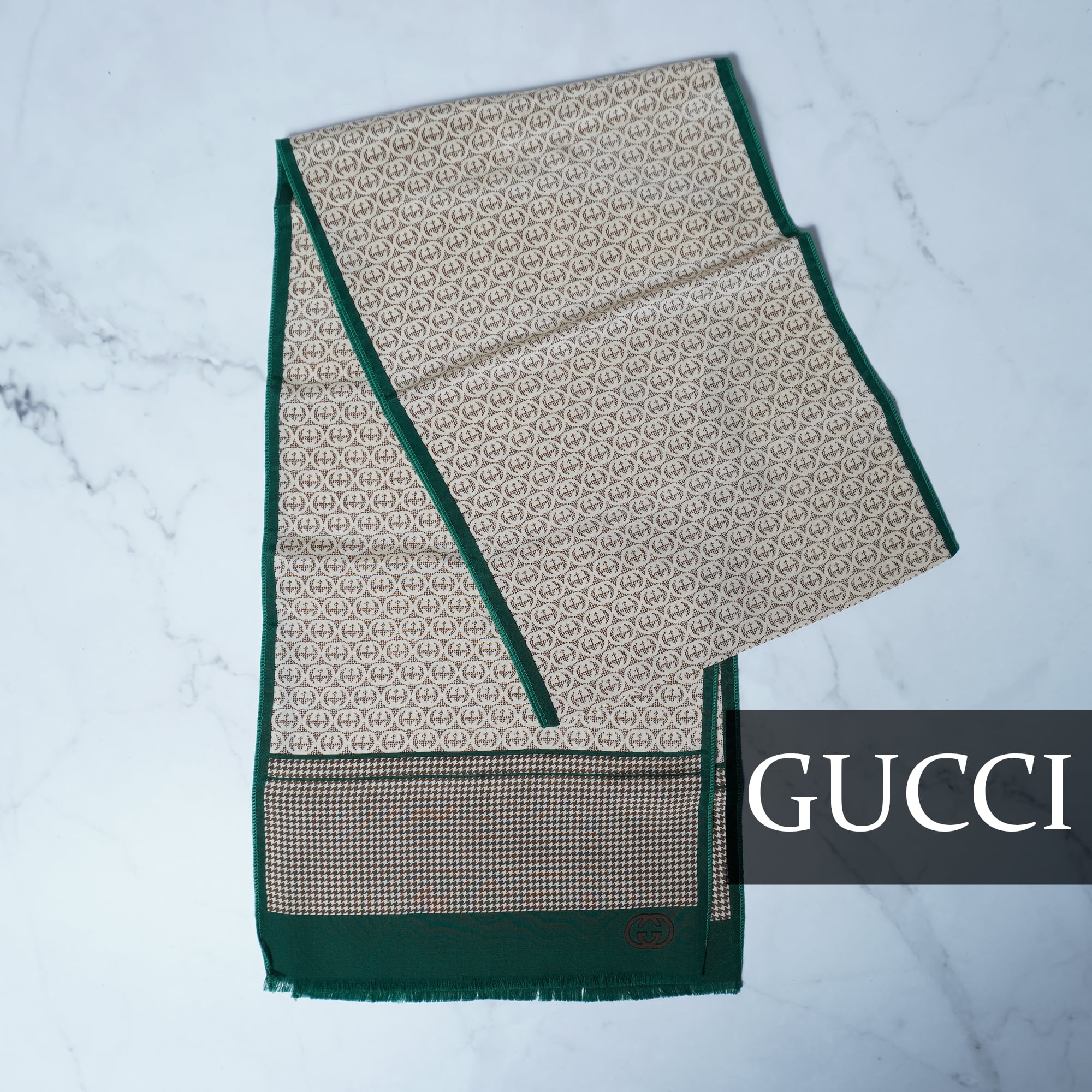 【GUCCI】グッチ インターロッキンG・千鳥格子柄スカーフ brown&beige&green