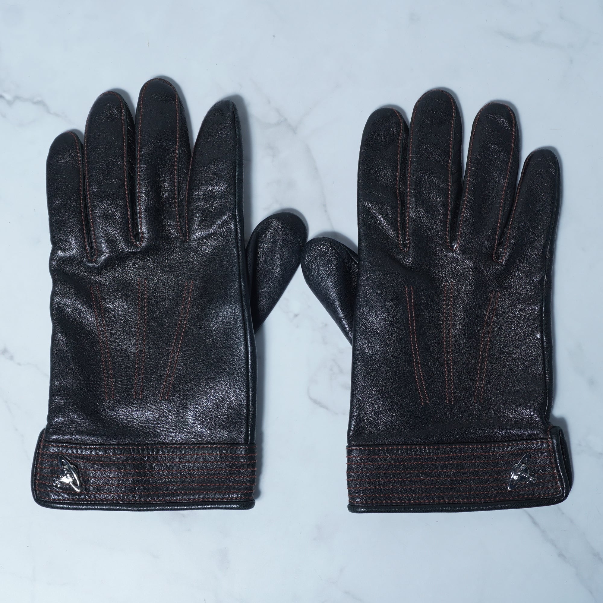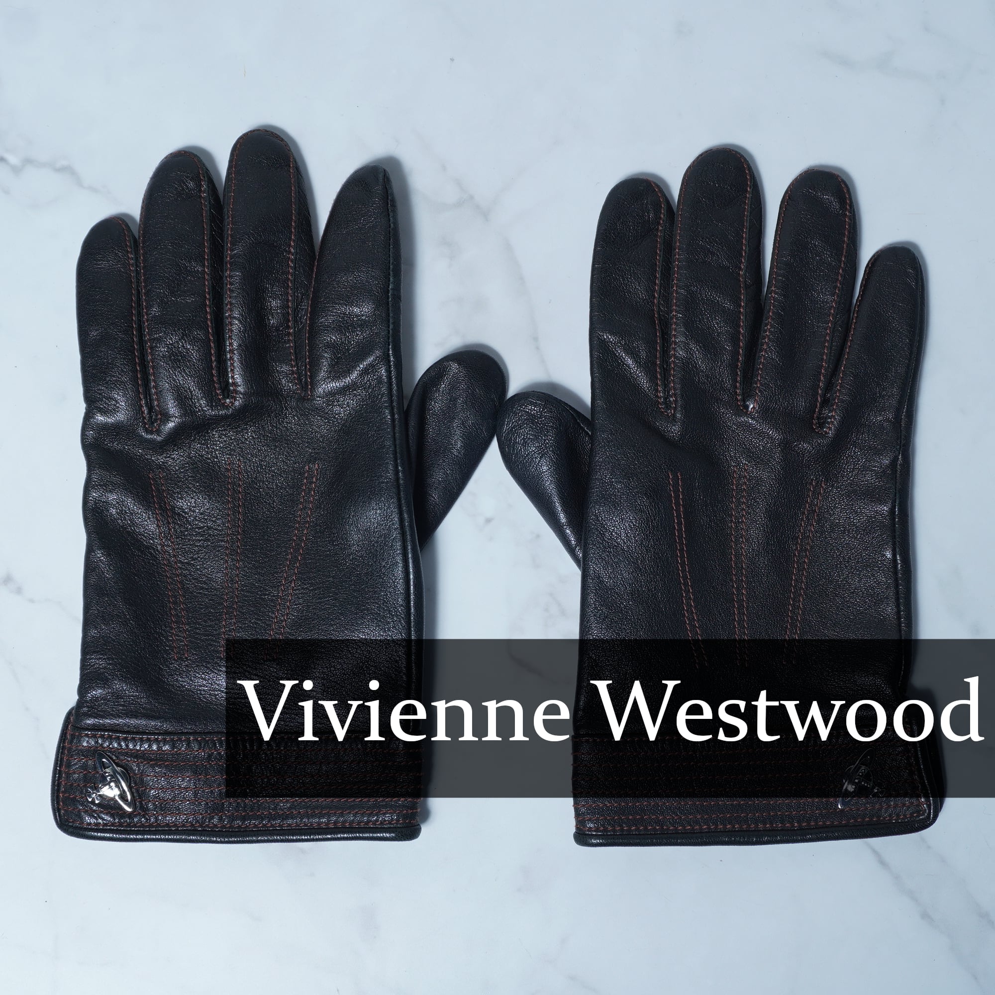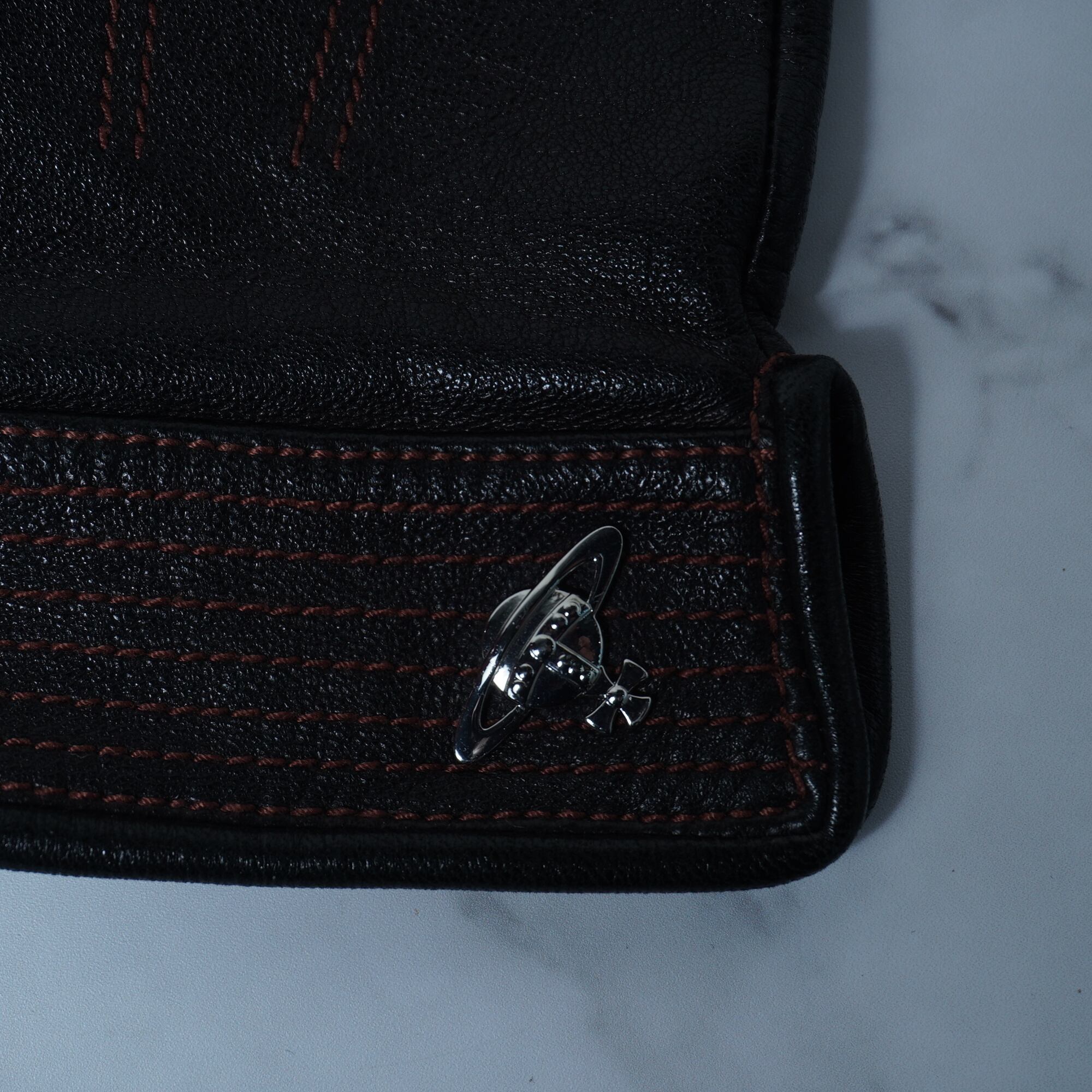 【Vivienne Westwood】ヴィヴィアンウエストウッド ”オーブロゴ” ブラウンステッチレザーグローブ black