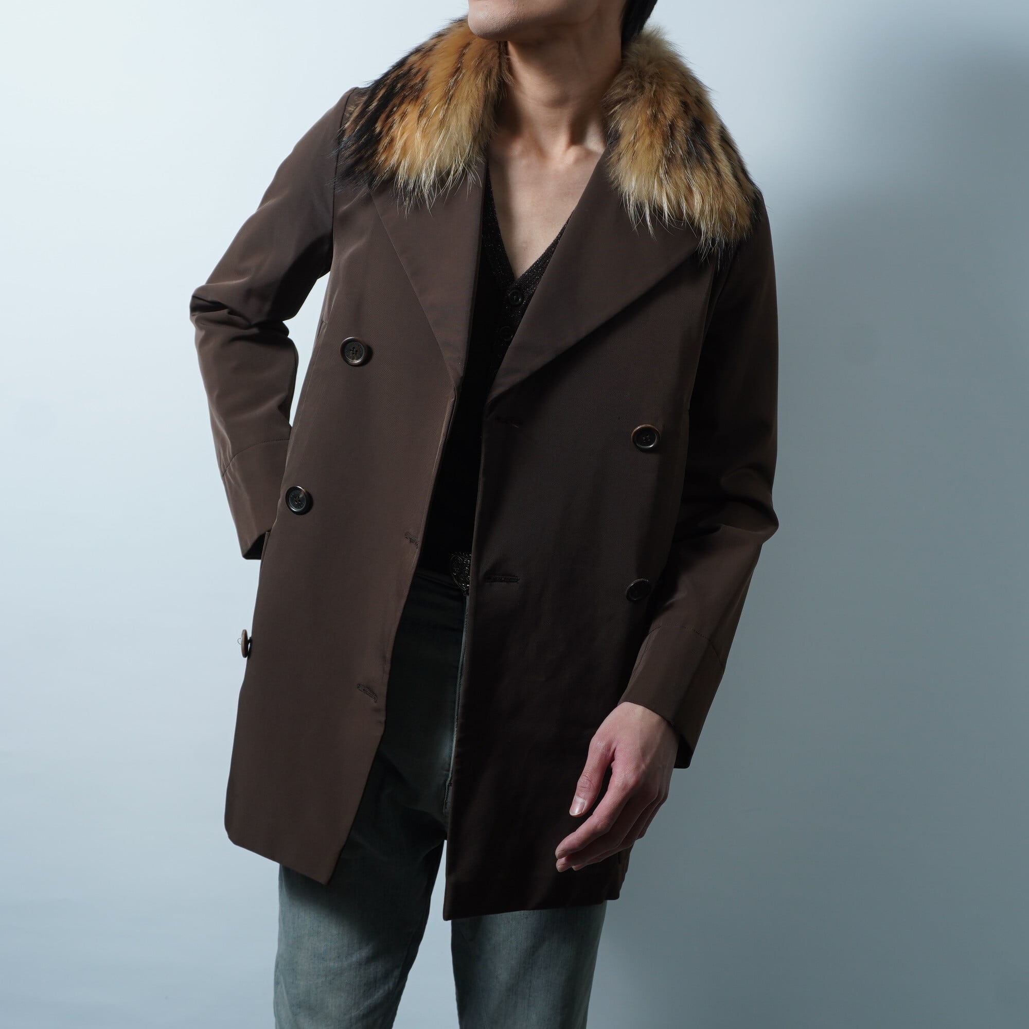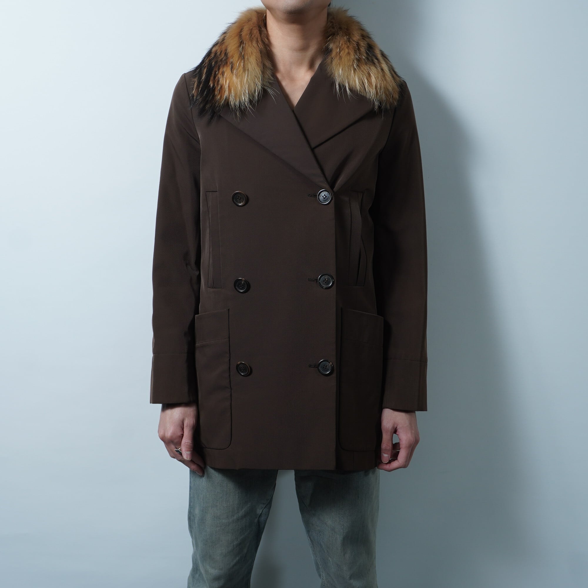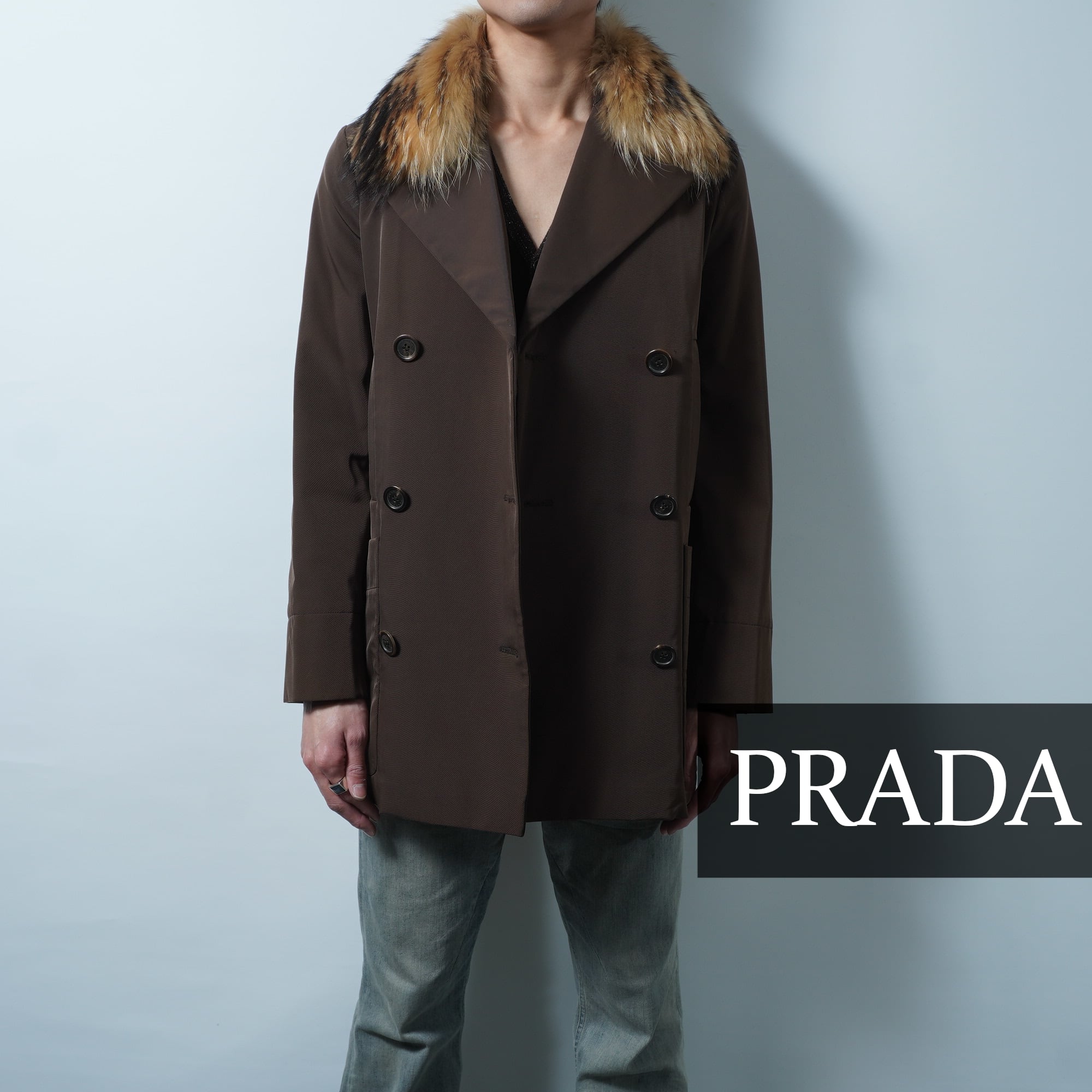 【PRADA】プラダ ラクーンファーナイロンジャケット brown