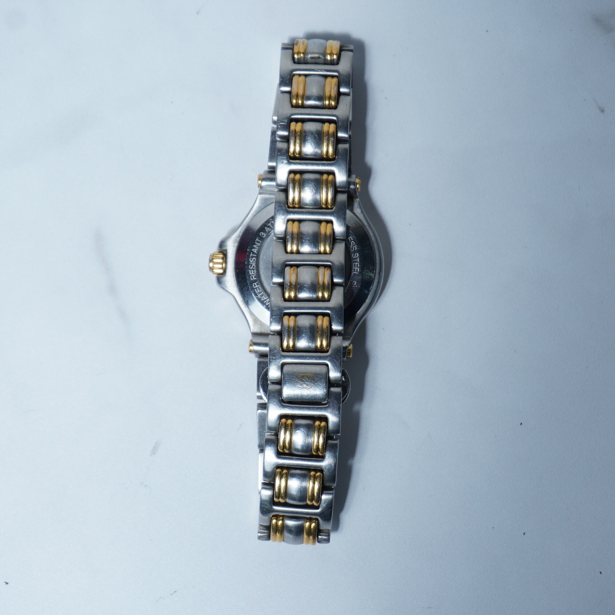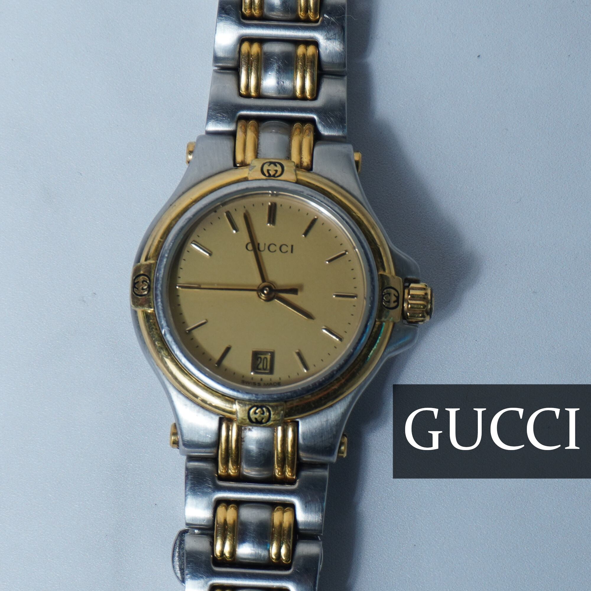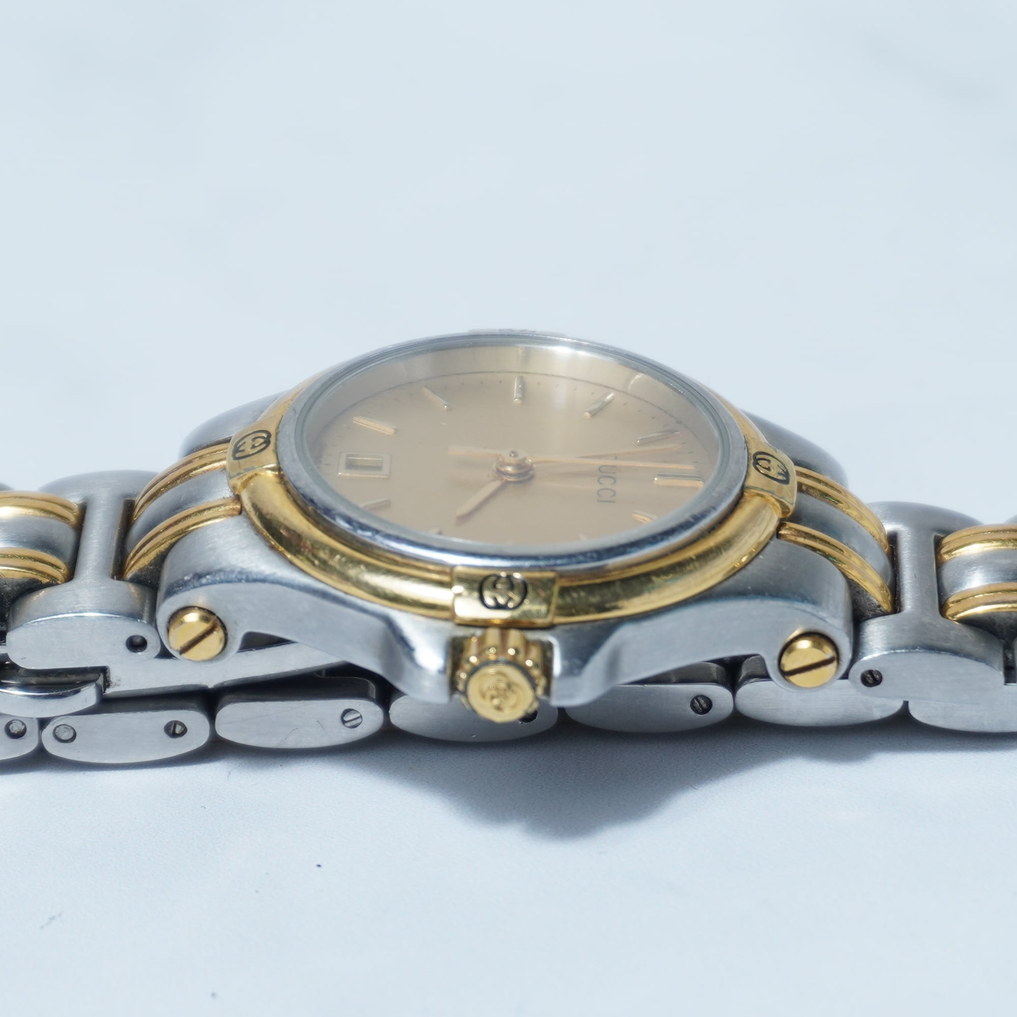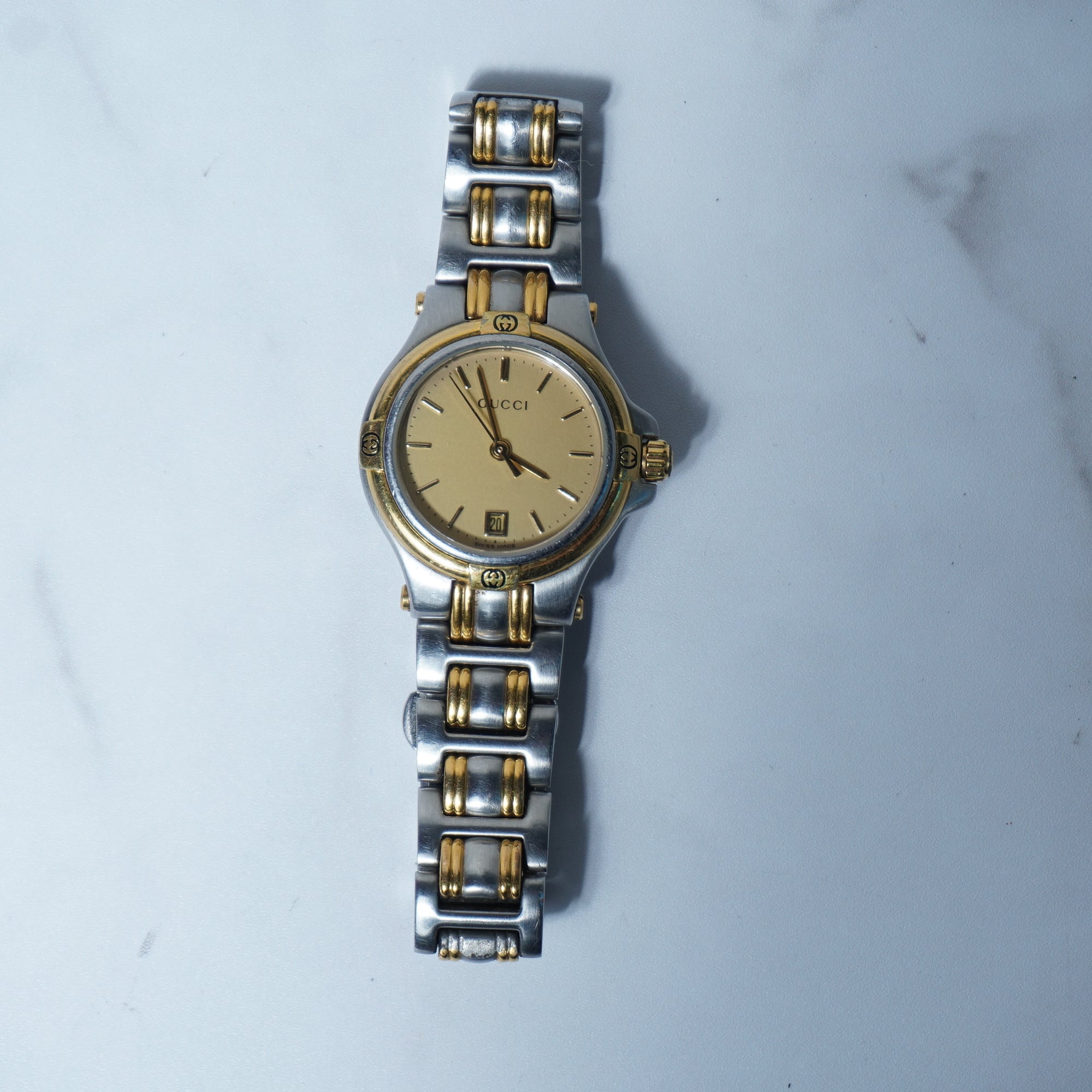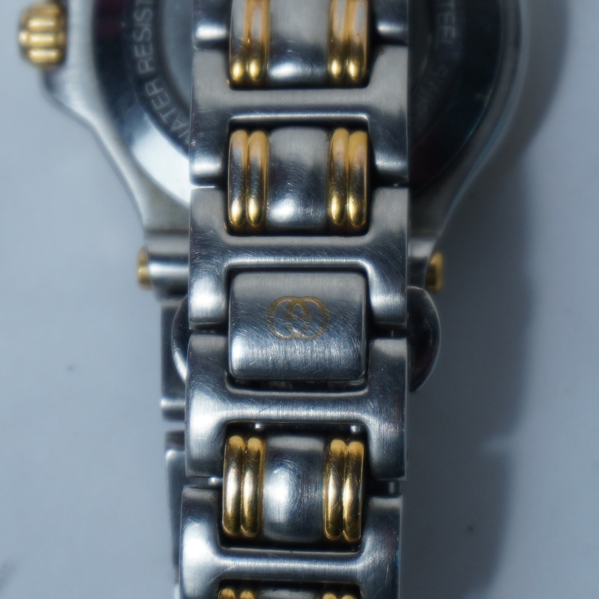 【GUCCI】グッチ インターロッキンGロゴ 稼働品ゴールドフェイスクォーツウォッチ silver&gold
