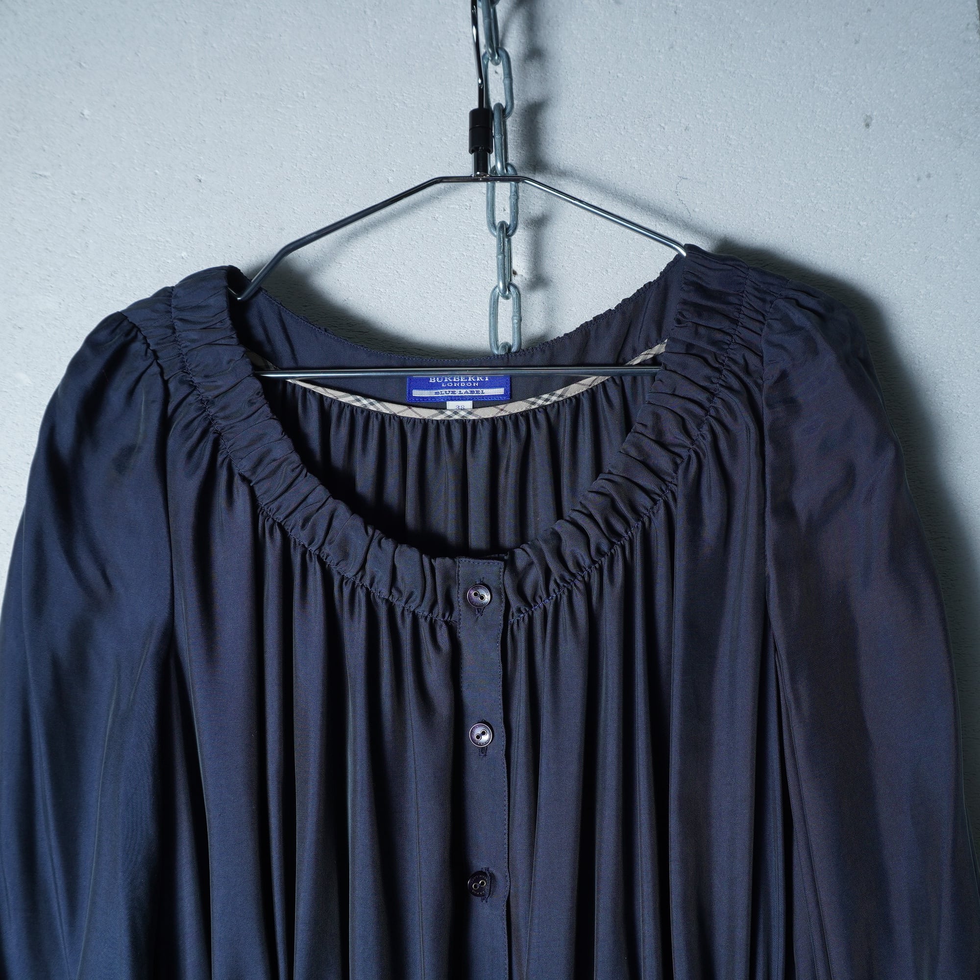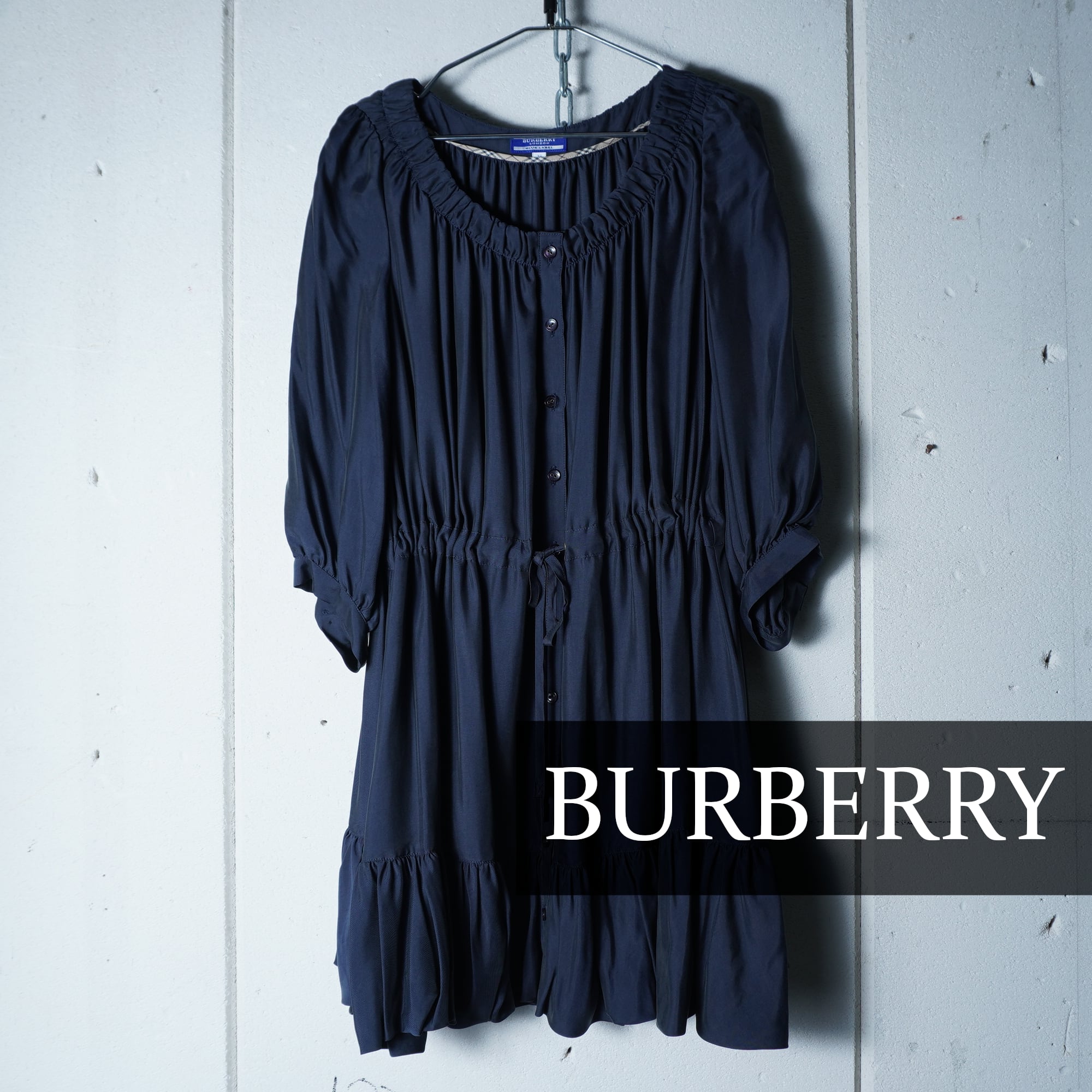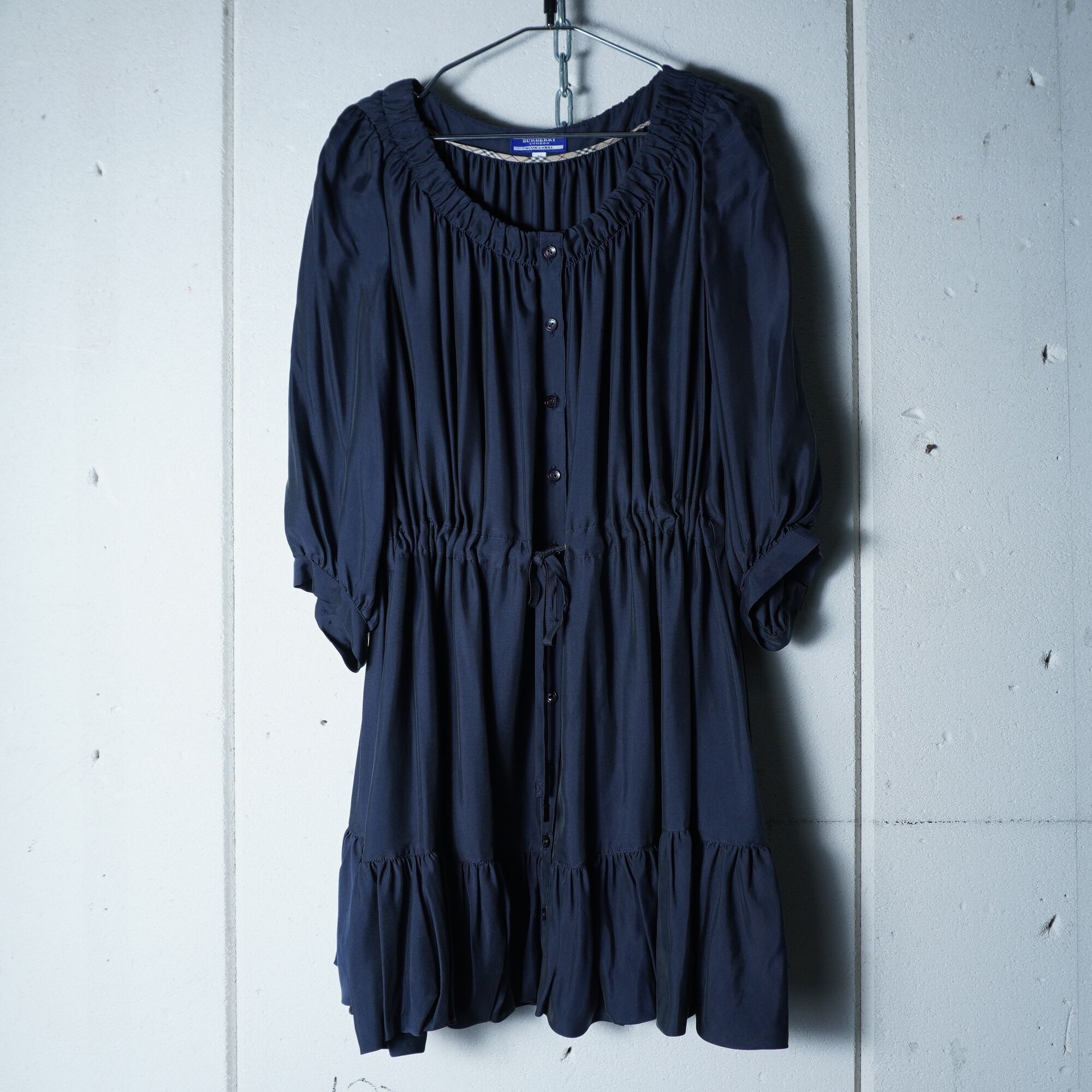 【BURBERRY】バーバリー "ホースロゴ刺繍” ギャザーワンピース navy