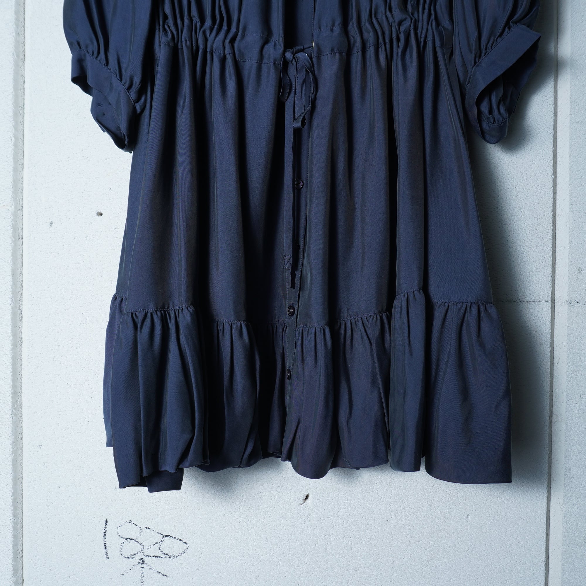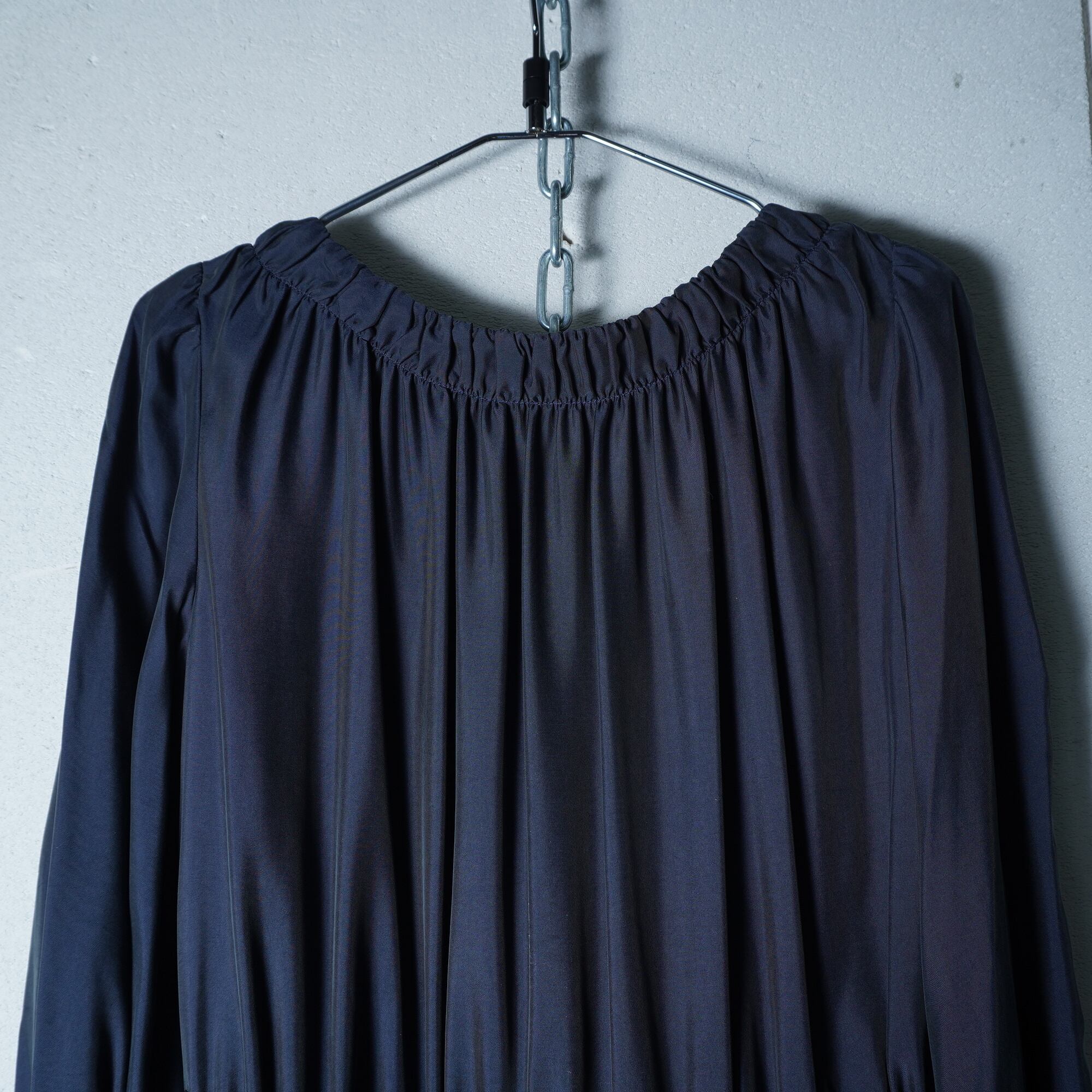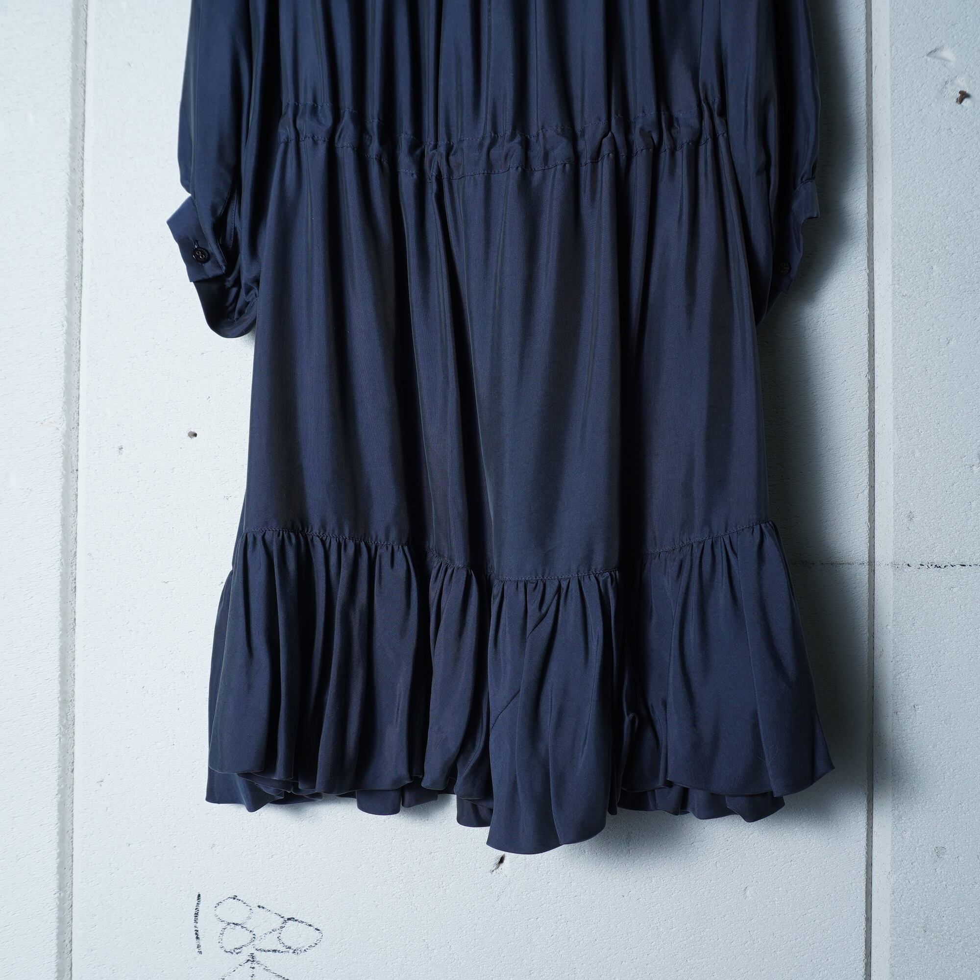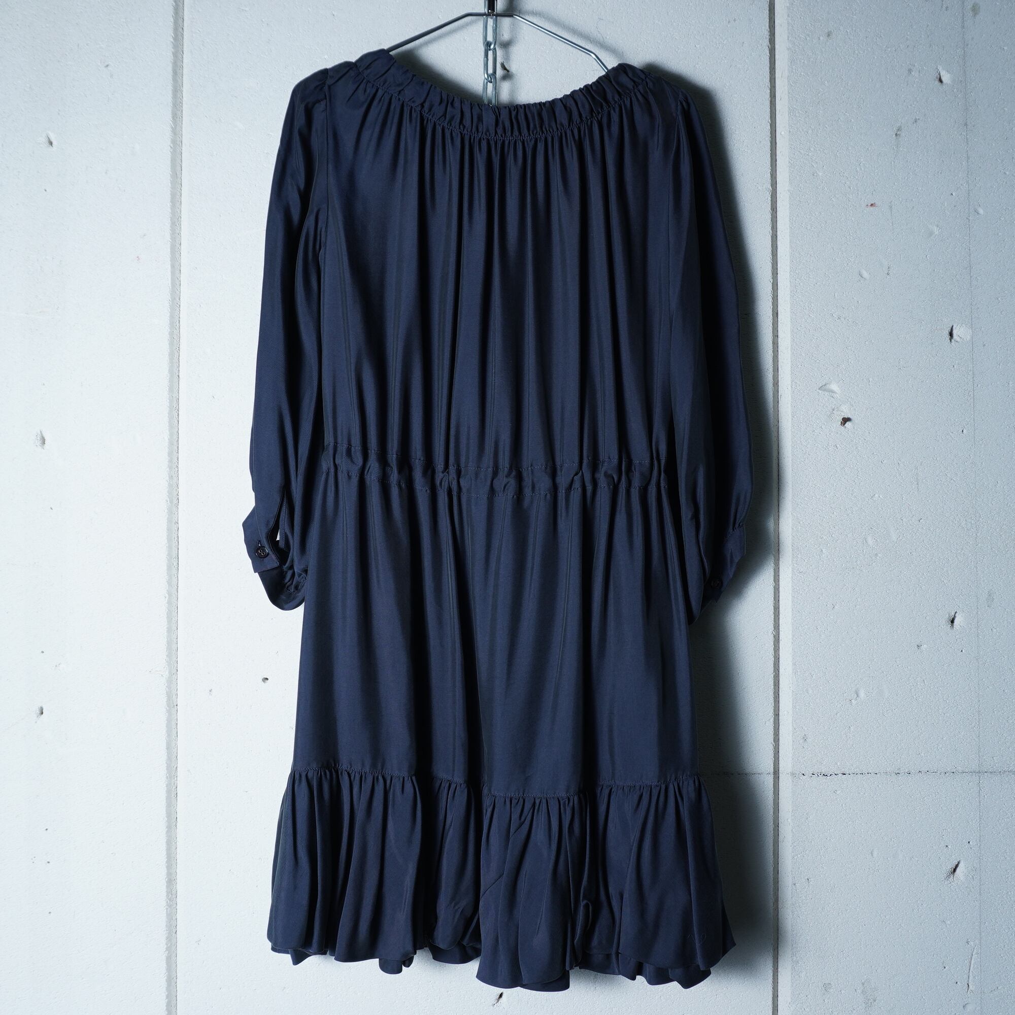 【BURBERRY】バーバリー "ホースロゴ刺繍” ギャザーワンピース navy